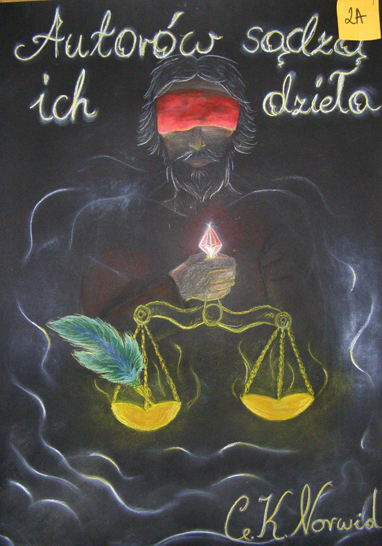 Jury złożone z nauczycieli języków obcych postanowiło przyznać nagrodę w konkursie na najlepszy plakat dla Kacpra Głowackiego z klasy 2D. Jury zwróciło w szczególności uwagę na dokładność rysunku, jego kompozycję i liternictwo cytatu Josepha Conrada Korzeniowskiego „Podążać za swem marzeniem, podążać wiecznie – zawsze, usque ad finem…”. Jury postanowiło również przyznać wyróżnienie dla Aleksandry Stolarczyk z klasy 2E za plakat nawiązujący do twórczości Cypriana Kamila Norwida. Jurorzy zwrócili w szczególności uwagę na kolorystykę pracy, jej technikę oraz na odniesienia do historii Polski ilustrujące norwidowski cytat „Przeszłość – to jest dziś, tylko cokolwiek dalej.” Jury postanowiło przyznać drugie wyróżnienie dla Aleksandry Lodzińskiej z klasy 2C. W przypadku tej pracy jury w szczególności zwróciło uwagę na pomysłowe nawiązanie kompozycji plakatu do cytatu patrona naszej szkoły: „Gorzki to chleb jest polskość…”