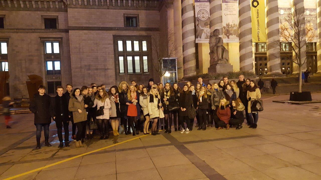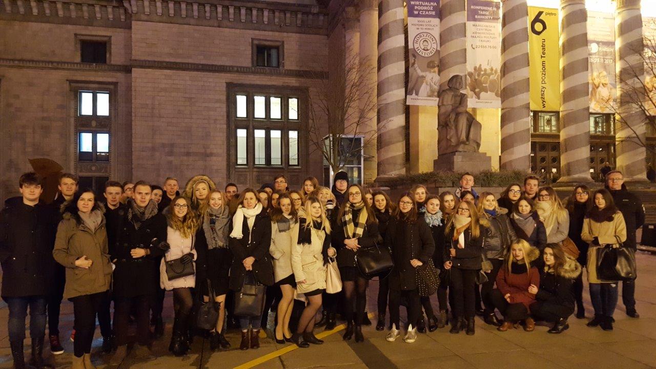 Wieczorny spacer po stolicy oraz wizyta w Teatrze 6. piętro to główne cele naszej wycieczki do Warszawy, która odbyła się 21 października 2017 roku. Dobry humor, który towarzyszył nam od momentu wejścia do autokaru, eskalował z każdą minutą, aby kulminację osiągnąć podczas wieczornego spektaklu. „Ożenek”, w reżyserii Andrzeja Bubienia, fantastycznie łączący klasykę ze współczesnością, całkowicie nas zachwycił. Wartka akcja, akcent kabaretowy, zaskakująca muzyka oraz ciekawa scenografia z krzesłami przytwierdzonymi do ściany sprawiły, że komedia Gogola stała się ucztą, zarówno intelektualna, jak i rozrywkową. Salwy śmiechu słychać było od samego początku, również z rzędów, które zajmowali uczniowie III LO. Nie było w tym nic dziwnego, biorąc pod uwagę fakt, że zadanie rozbawienia widzów spoczęło na barkach takich aktorów, jak Cezary Pazura, Anna Dereszowska, Cezary Żak, czy Michał Żebrowski. Chociaż komedia Gogola okazała się ostatecznie refleksyjną opowieścią o ludzkiej samotności i poszukiwaniu bliskości, opuszczaliśmy teatr w fantastycznych nastrojach. Szczególnie, że tuż przed wyjściem, udało nam się osobiście pogratulować cudownym aktorom - Paulinie Chruściel i Januszowi Chabiorowi. Organizatorki wyjazdu, pani Edyta Kolus i pani Małgorzata Życka, już teraz otwarcie deklarowały, że to pierwszy, ale nie ostatni taki wyjazd.