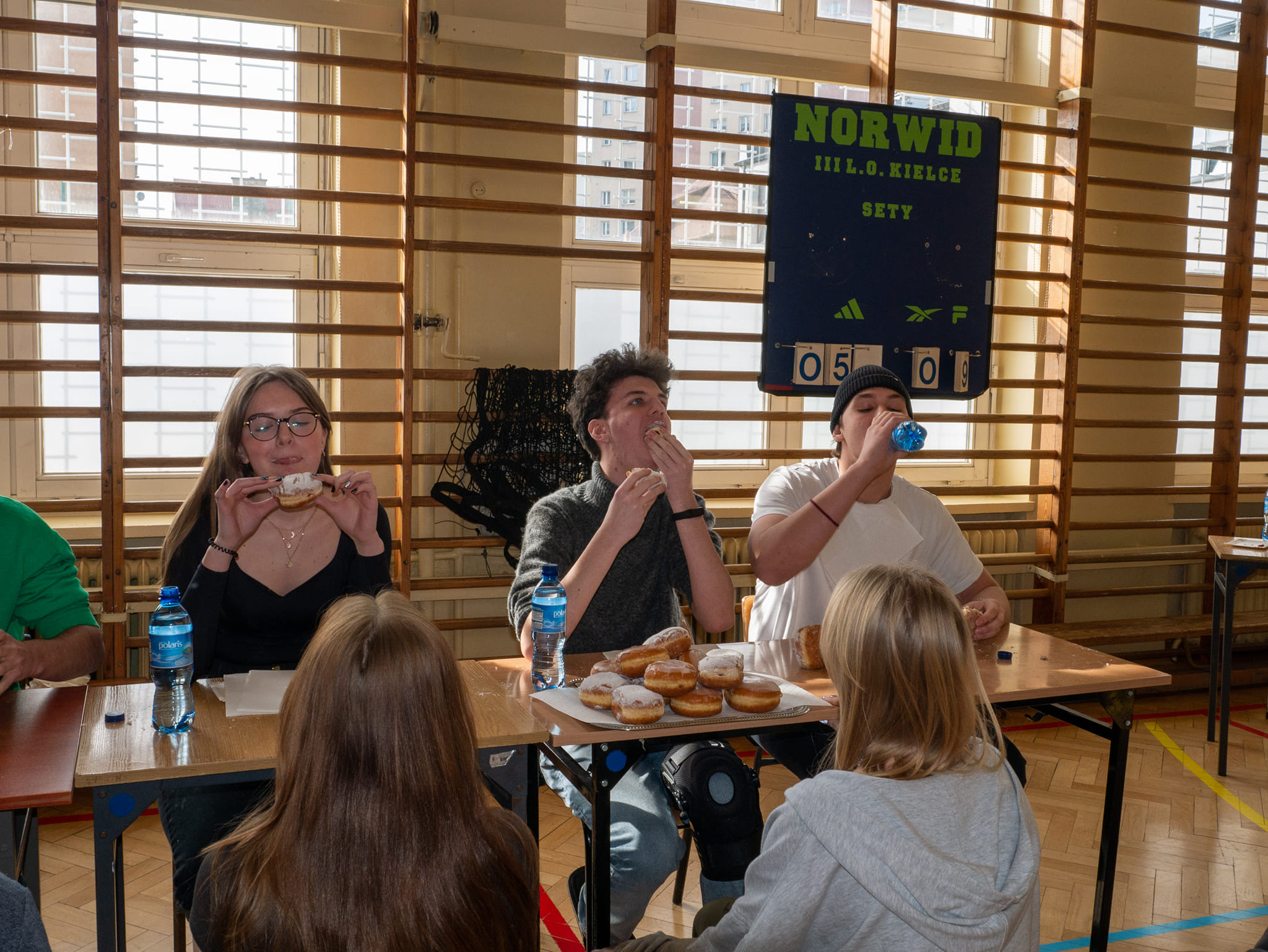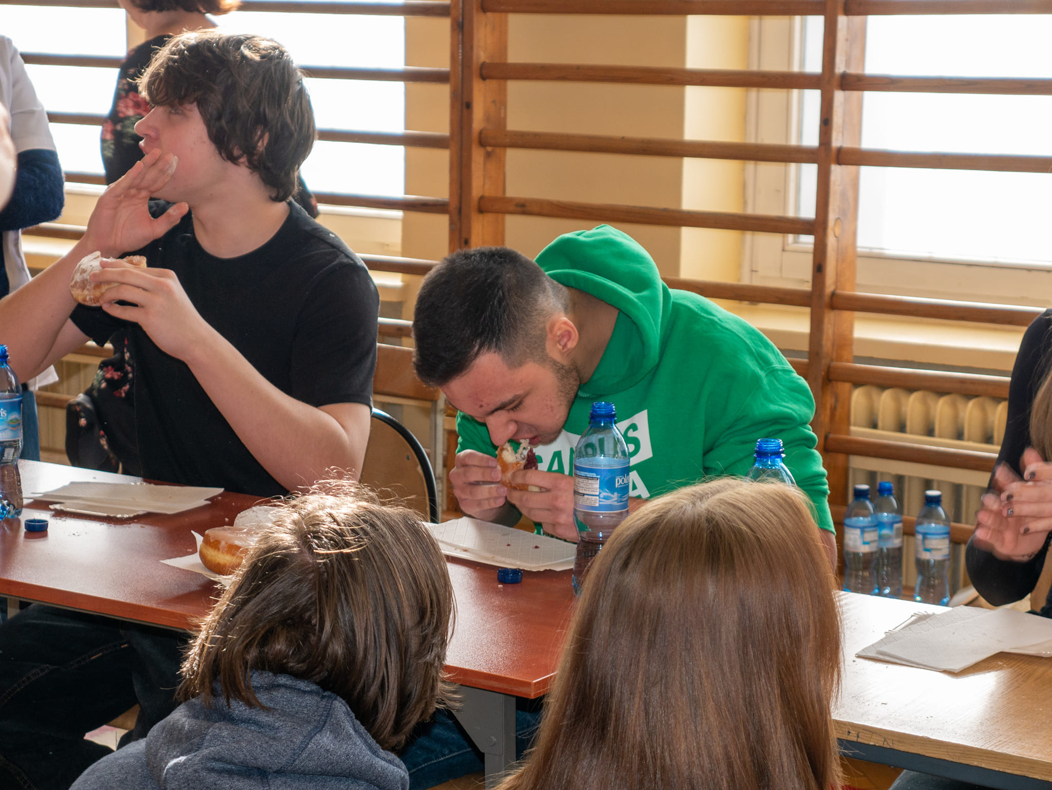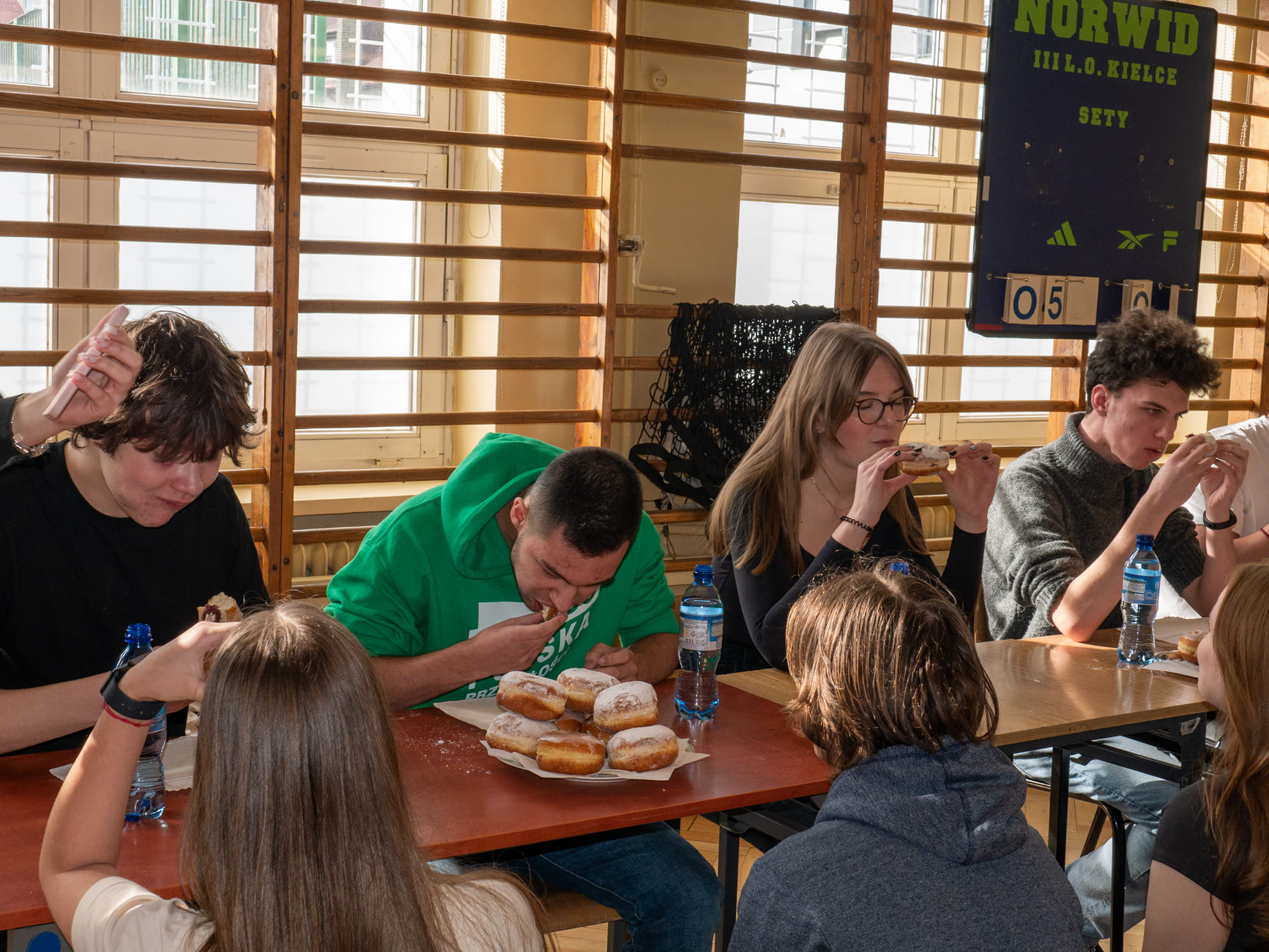 Tłusty czwartek w Norwidzie tradycyjnie pod znakiem pączkowej rywalizacji. W sympatycznej i słodkiej atmosferze, pod czujnym okiem naszej pani pielęgniarki odbywała się konsumpcja słodkości. Zwycięzcy otrzymali talony na zwolnienie z pytania. Gratulujemy apetytu 😁