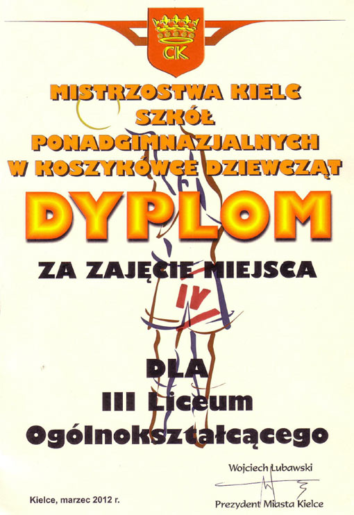 Reprezentacja III L.O. w koszykówce dziewcząt w obecnym roku szkolnym 2011/2012 zajęła