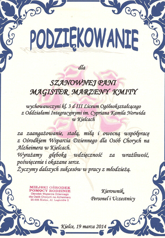 otrzymali podziękowania za współpracę z Ośrodkiem.