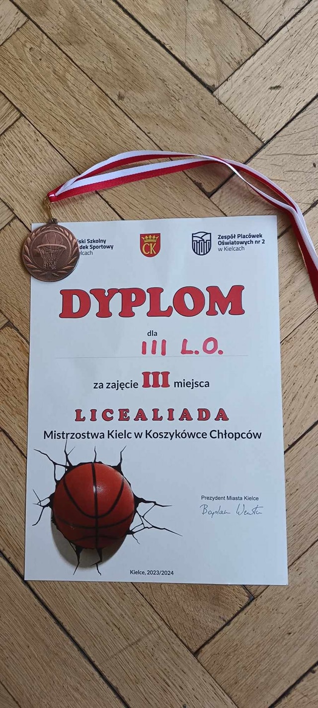 Zakończyły się rozgrywki koszykówki chłopców, drużyna III LO zajęła w nich trzecie miejsce zdobywając brązowy medal. To kolejne duże osiągnięcie chłopaków, którzy oddali dużo zdrowia i zaangażowania walcząc o każdą piłkę dla NORWIDA. Skład zespołu: Kacper Kołodziejczyk, Piotr Grzybek, Tymofi Reutov, Oleg Zembrzowski, Igor Kozieł, Wojtek Domoradzki, Jakub Terpiński, Karol Pęczkowicz, Szczepan Długosz, Dominik Wesołek, Jakub Krogulec, Maciej Haigemaier, Kacper Gąsior i Michał Trójniak.
