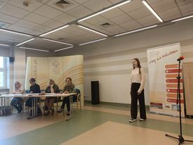 Konkurs polegał na recytacji wybranych utworów klasyków literatury angielskiej i amerykańskiej. Ocenie podlegała interpretacja wierszy, ich długość, wymowa i ogólna prezentacja sceniczna. Gratulujemy dziewczynom znajomości j. angielskiego, doskonałej pamięci i pięknej wymowy!