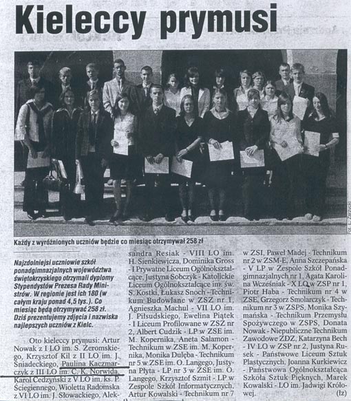 Prezesa Rady Ministrów. Laureatami nagrody byli uczniowie kieleckich szkół średnich
