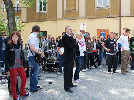 W dniach, od 3 do 5 grudnia 2008 roku, w naszej szkole obył się międzynarodowy zjazd młodzieży i nauczycieli ze szkół biorących udział w projekcie „Socrates Comenius”. Byli to opiekunowie z Niemiec, Francji, Rumunii, Portugalii oraz gospodarze Polacy. Tegorocznym hasłem zebrania było „Time line”, czyli najważniejsze wydarzenia mające miejsce w roku, który wiele znaczy w historii danego kraju. Dla Polski , jaki i Niemiec, był to rok 1989, Rumunii - 1978, Francji -1968 oraz Portugalii.Wszyscy uczestnicy przyjechali do naszego miasta w przeddzień projektu. W ciągu tego dnia, uczniowie, zaaklimatyzowali i zapoznawali się z nowymi osobami, u których miały spędzić pobyt w Polsce. Środa, pierwszy dzień projektu, rozpoczęliśmy w szkole o godzinie 9, uroczystym spotkaniem ze wszystkimi osobami zaangażowanymi w to przedsięwzięcie. Przemowy na powitanie zagranicznych gości wygłosili: dyrektor naszej szkoły, zastępca prezydenta miasta Kielce oraz przewodniczący komitetu „Socrates Comenius” w woj. Świętokrzyskim. Po uroczystym powitaniu udaliśmy się na salę gimnastyczną, aby obejrzeć przedstawienie, przygotowanie przez uczniów naszej szkoły, na którym śpiewane były polskie kolędy. Następnie odbyło się bardzo efektowne oprowadzenie po salach lekcyjnych oraz innych pomieszczeniach znajdujących się na terenie naszej szkoły. Po krótkim zwiedzaniu nastąpił czas na rozpoczęcie praca nad projektem. Naszym zadaniem było zgromadzenie informacji na temat najważniejszych wydarzeń w historii, kulturze oraz polityce w Polce, Niemczech, Francji oraz Rumunii. Uczniowie z poszczególnych państw gromadzili wiadomości dotyczące krajów, z których przyjechali. Towarzyszyły temu bardzo burzliwe oraz emocjonalne dyskusje. Po kilku godzinach mieliśmy mała przerwę na lunch, który wykorzystaliśmy nie tylko na posiłek lecz także na rozmowy, które pomogły nam w nawiązaniu lepszego kontaktu z innymi. Następnie ponownie wróciliśmy do naszej sali, aby tam pilnie pracować nad projektem. Zajęcia zakończyliśmy około godziny 15. Teraz mieliśmy czas na pokazanie miasta naszym kolegom i koleżankom. Po spacerowaniu ulicami Kielc, poszliśmy na salę gimnastyczną naszej szkoły i wspólnie spędziliśmy czas na grze w siatkówkę, koszykówkę oraz piłkę nożna. Po kilku godzinach każdy z nas udał się do swojego domu, razem ze swoim gościem. W czwartek, drugi dzień projektu, kontynuowaliśmy naszą pracą z poprzedniego dania. Dopracowywaliśmy zgromadzane już materiały oraz gromadziliśmy nowe. Czas w trakcie pracy urozmaicaliśmy sobie grą w ping ponga oraz siatkówkę. W trakcie naszej owocnej pracy odwiedzili nas reporterzy z „Gazety Wyborczej”. Porosili kilku zagranicznych oraz tutejszych uczniów o udzielnie wywiadu. Opowiedzieliśmy im na temat tegorocznego projektu oraz poprzednich. Bardzo zainteresował ich projekt dotyczący stereotypów, jakie szerzą się w innych krajach na temat polskiej społeczności. Uczniowie z Niemiec i Rumunii przedstawili pokrótce to co myślą o nas mieszkańcu ich miast. My także zapoznaliśmy ich z tym co sądzimy na temat ludności niemieckiej oraz rumuńskiej. Rozmowie tej towarzyszyło wiele śmiechu. Po krótkiej konwersacji wróciliśmy do pracy nad projektem. Po lunchu nauczyciele porosili nas o przedstawienie im owoców naszej dwudniowej pracy. Każdy z nas zaprezentował informacje dotyczące narodowego państwa. Zadowoleni z nas nauczyciele pozwolili nam zakończenie pracy. Po szkole, tak jak poprzedniego dnia, wszyscy razem spotkaliśmy się i wolny czas spędziliśmy na rozmowach oraz grze w siatkówkę oraz piłkę nożną.Piątek był ostatnim dniem projektu. Rano musieliśmy pożegnać się z dziewczynami i nauczycielkami z Francji, ponieważ nie miały one późniejszego połączenia z Paryżem. Jak każdemu rozstaniu towarzyszyły łzy i ciepłe uściski oraz nadzieja, że jeszcze kiedyś się spotkamy. Kiedy pociąg odjechał wróciliśmy do szkoły, aby wznowić pracę nad projektem. Nasze zadanie na tez dzień brzmiało: „Co wynieśliśmy z udziału w projekcie Comenius?”. Pytanie z pozoru proste, lecz każdy miał z nim problem, ponieważ nie da się na kartkę papieru przelać tylu wspaniałych chwil, śmiechu, który towarzyszył każdej sytuacji, a także emocji jakie były w nas w ciągu całego przedsięwzięcia. Staraliśmy się słowami wyrazić jak najwięcej mogliśmy. Każdy z nas było zgodny co do tego, że w ciągu trwania projektu nauczyliśmy się harmonijnie współpracować dopełniając się wzajemnie. W tym wspólnie spędzonym czasie nauczyliśmy się także nowych języków oraz robić odrzutowce z papieru, lecz przede wszystkim dostrzegliśmy jak ważna dla każdego z nas jest przyjaźń, która narodziła się między nami w ciągu tego projektu. Po wyrażeniu tego słowami przyszedł czas na nasze zajęcia, które były prowadzone przez niemiecką nauczycielkę, dotyczące pozbycia się oraz radzenia sobie ze stresem występując na scenie w teatrze. Początkowo nie wiedzieliśmy czego możemy się spodziewać. Zajęcia zaczęły się krótką rozmową, wprowadzającą nas w cel w spotkania. Następnie uczyliśmy się zachować powagę w trudnych sytuacjach oraz wyrażania, za pomocą gestów i mimiki, swoich emocji. Było to bardzo ciekawe a zarazem pouczające zajęcia. Było one ukoronowanie tego co wynieśliśmy z projektu. Po tych ćwiczeniach mieliśmy już czas wolny. Spędziliśmy tak jak poprzednie, lecz już z innym nastawieniem. Wiedzieliśmy, że to już koniec naszej przygody z Comeniusem i jutro będziemy musieli się pożegnać. Sobota, dzień rozstania. Rano zebraliśmy się na dworcu, żeby pożegnać naszych nowych przyjaciół. Znowu z jednej strony ich smutek i radość, że wracają do sowich rodzin, za którymi się stęsknili. Moment kiedy musza już odjeść i wsiąść do pociągu. Łzy same cisną się do oczu, 
