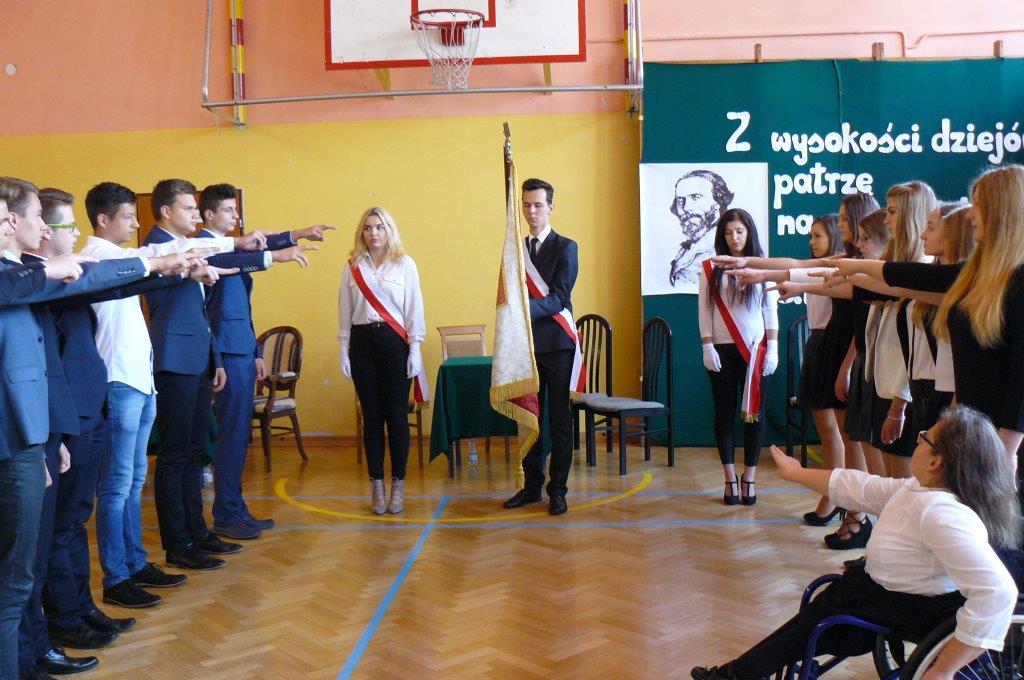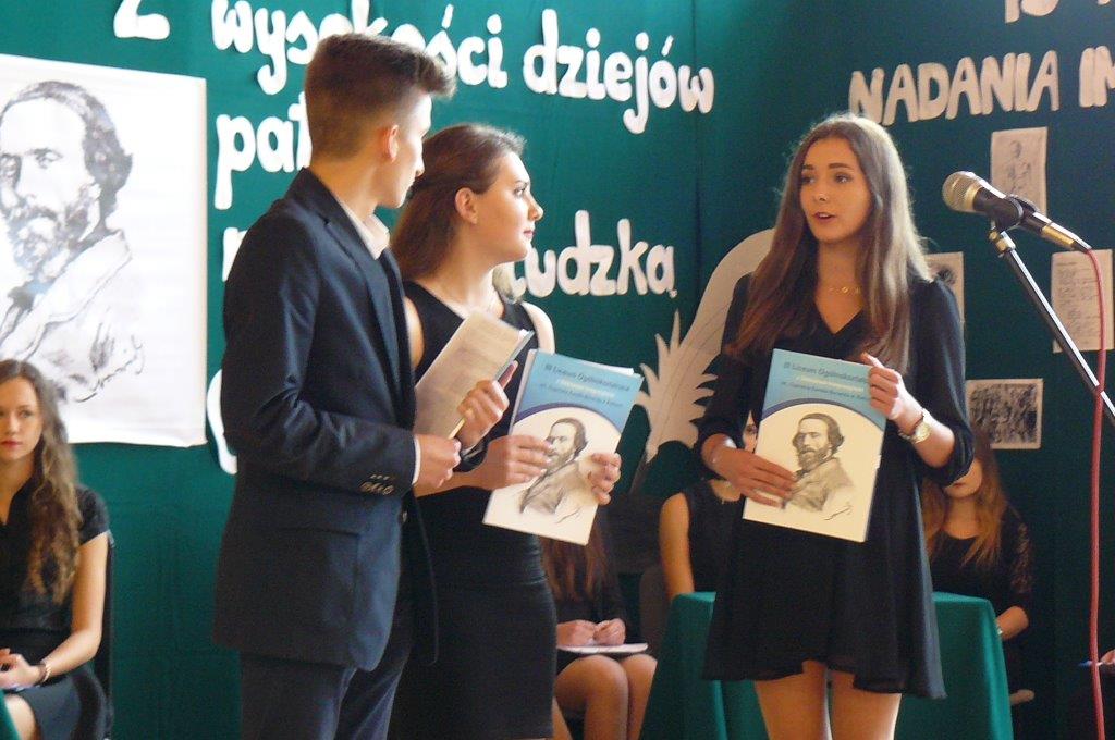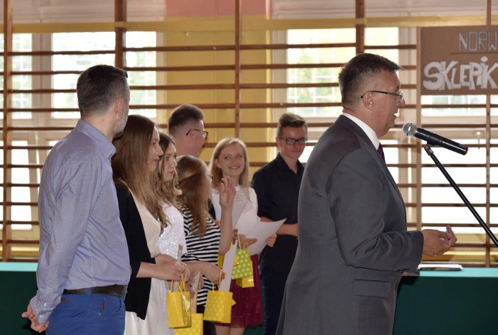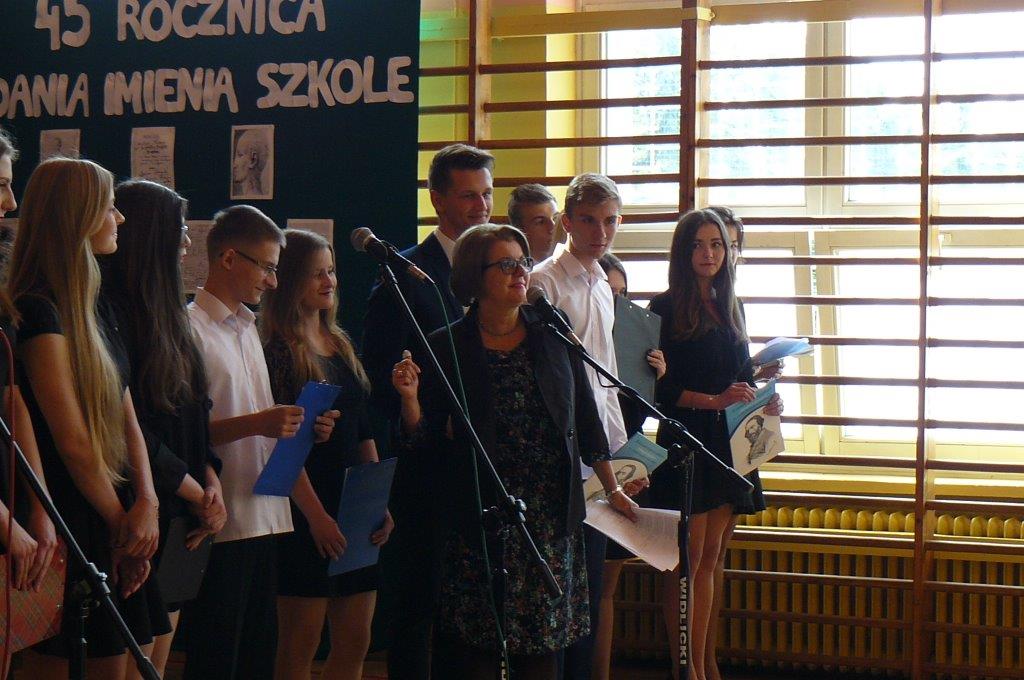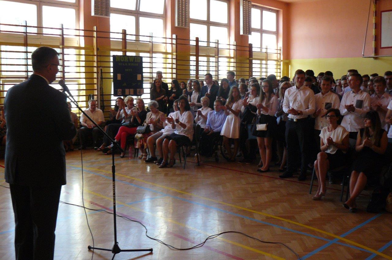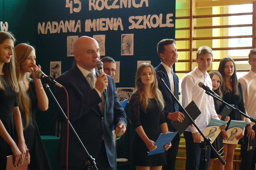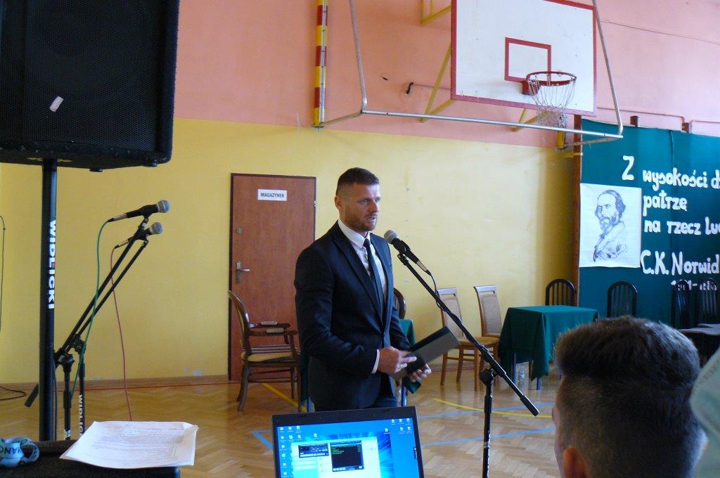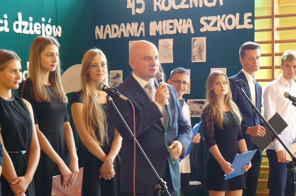 Pan dyrektor, Andrzej Zdeb, w swoim wystąpieniu przypomniał, że w tym roku minęła 195 rocznica urodzin naszego patrona oraz zaakcentował wartość tradycji szkoły, która imię Cypriana Kamila Norwida otrzymała w 1971 roku – 45 lat temu.