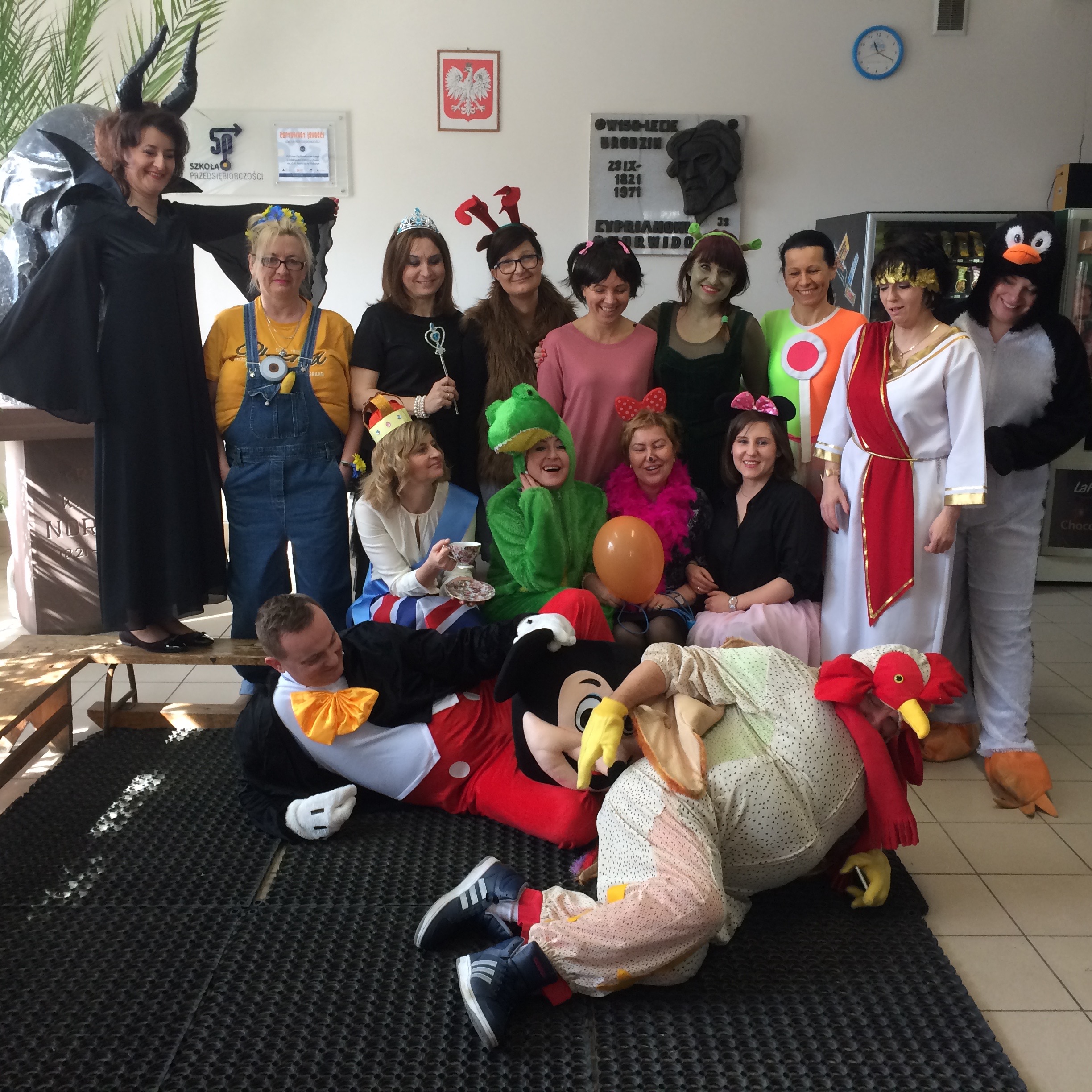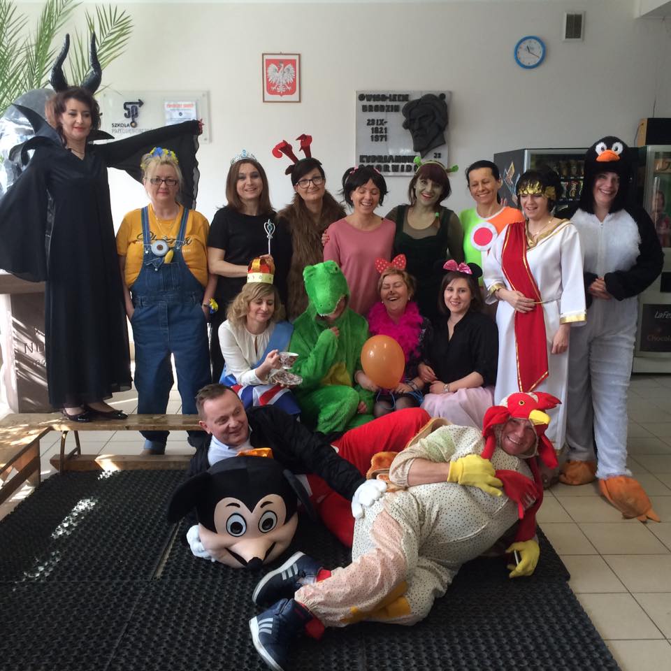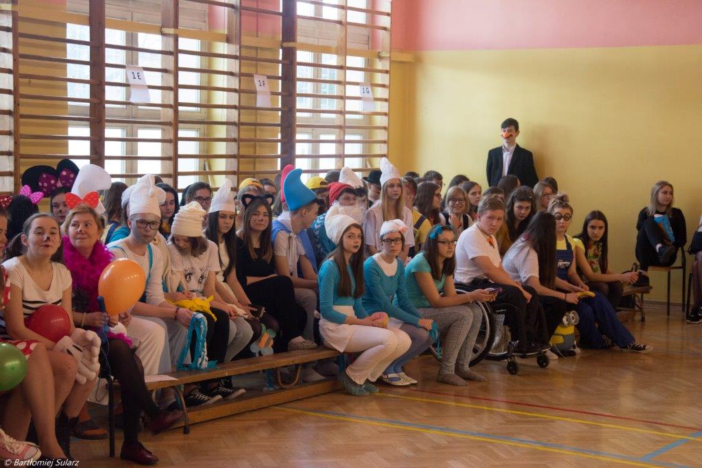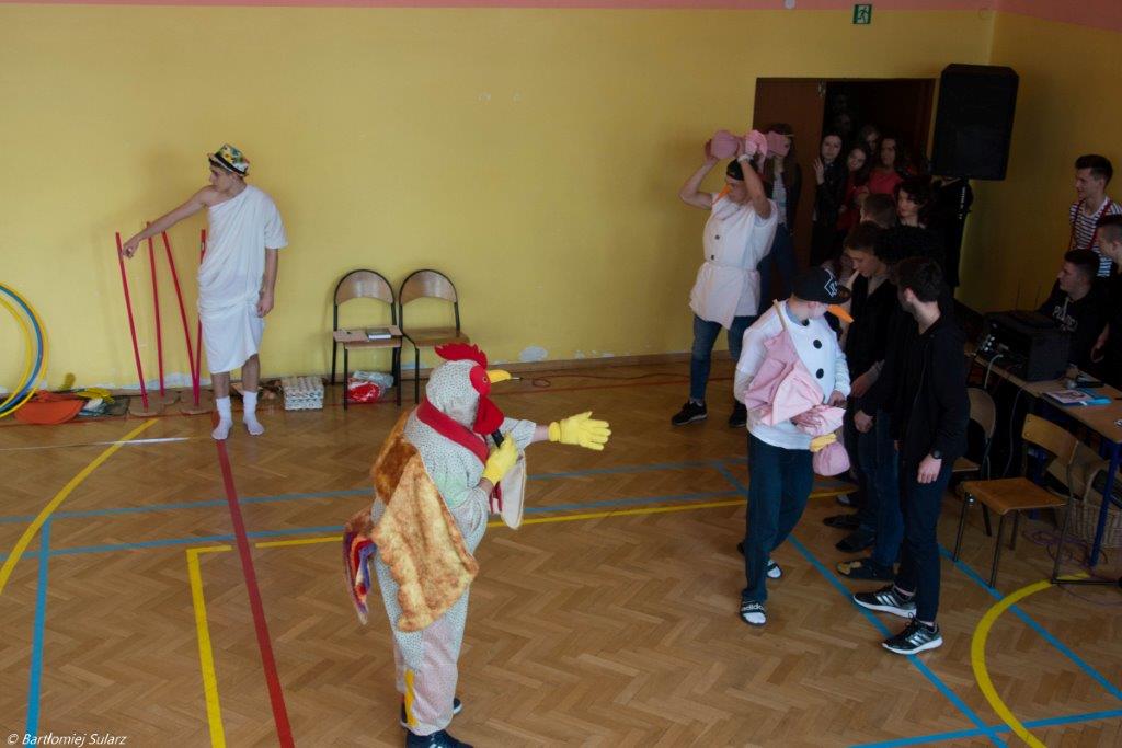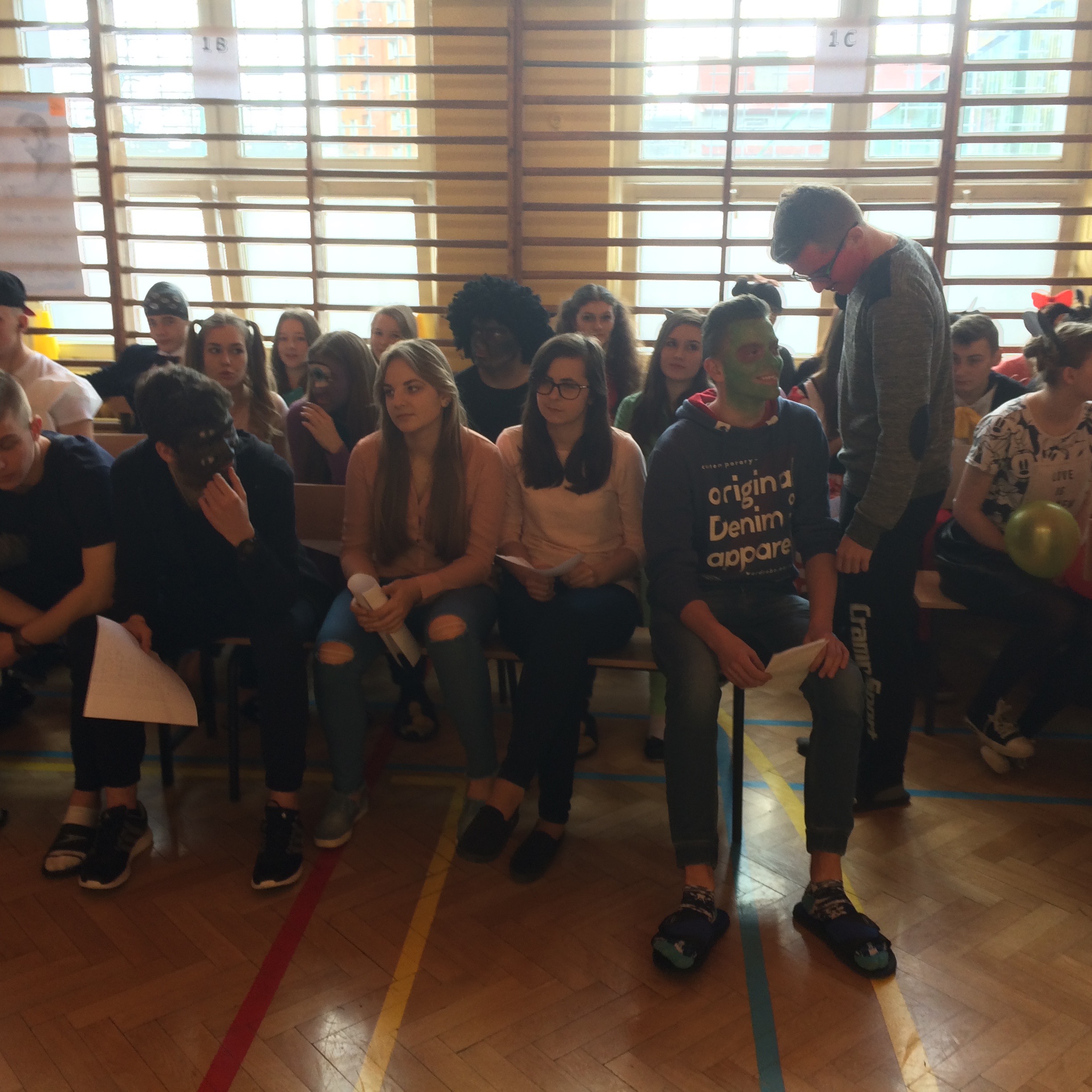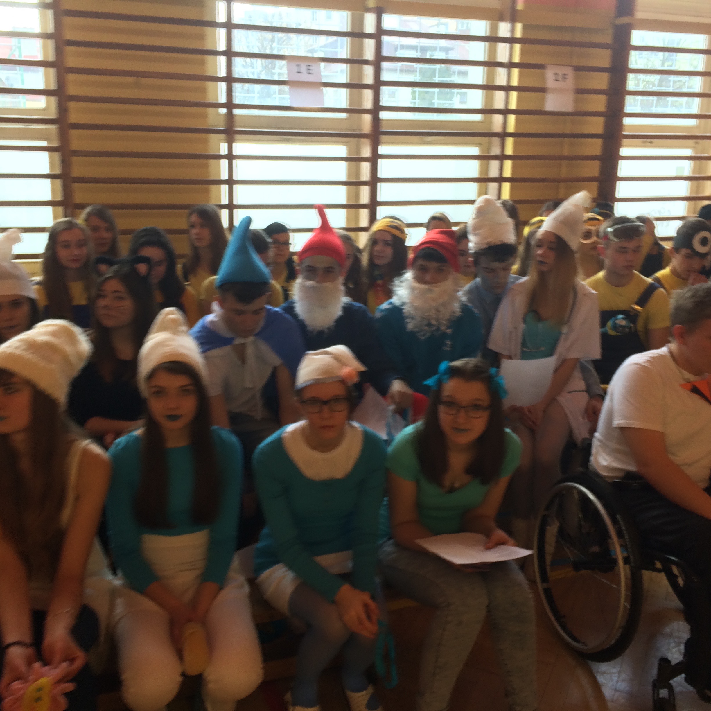 21 marca 2017 klasy drugie miały swój Dzień Języków Obcych, natomiast klasy pierwsze brały udział w rozgrywkach „sportowych”. Każda z klas zaprezentowała się również w scence, piosence lub tańcu. Zaangażowanie uczniów i ich wychowawców przekroczyło najśmielsze oczekiwania organizatorów zmagań p. Justyny Kopycińskiej (w roli Maleficient) i p. Andrzeja Krawczyńskiego (w przebraniu koguta) oraz dzielnie wspierającej ich działania p. Marzeny Pietrasik (w stroju lizaka). Konkurencje w wiosennej konwencji obejmowały zabawy z przymrużeniem oka. Między innymi należało miotać „Marzanną”, która symbolizowała odchodzącą zimę. Rzuty jajem do celu mógłby posłużyć do usmażenia sycącej wiele osób jajecznicy . Każda z klas wystąpiła również z przygotowaną wcześniej prezentacją. Klasa I „a” przebrana w postaci z „Krainy Lodu” uraczyła zebranych wielowątkową inscenizacją. Był taniec, śpiew, rzuty śnieżkami, tworzenie graffiti na żywo, a nawet galop renifera (wychowawczyni – p. Jagody Semaniak). Klasa I „b” – „Potwory i Spółka”, tak się wczuła w rolę, że bała się sama siebie, a piosenka o potworach wykonana pod przywództwem wychowawczyni p. Anny Kurp (w roli Boo) porwała (… i to dosłownie) zgromadzoną publiczność. Klasa I „c”, prezentująca postacie z filmów Disney’a zachwyciła wszystkich brawurowym tańcem i śpiewem w wykonaniu stada myszy oraz zestawem figur akrobatycznych w wykonaniu myszek Mickey, z których jedną był wychowawca p. Andrzej Wysocki. Klasa I „d” , czyli grupa Smerfów, wesoło podrygiwała razem ze swoją wychowawczynią p. Anną Banaś. Można też było usłyszeć gromki chór charakterystycznych krasnoludkowych głosów. Klasa I „e” to grupa uzbrojonych w banany Minionków. Śpiew i taniec stworków zachęcił do zabawy całą publiczność, a przykład wychowawczyni p. Marty Kurkiewicz nie pozostawił wątpliwości kto tam dowodzi ;) … Shrekowa klasa „f” z brawurowo wykonanym układem tanecznym do muzyki opatrzonej własnym tekstem, zachwyciła obserwatorów. Każdy uczeń oraz wychowawczyni p. Aleksandra Wojda (Fiona) z oddaniem prezentował swoją postać. Prezentacja klasy I „g” – Pingwinów z Madagaskaru – zmusiła wszystkich do „śmiałego wyginania ciała”, a pingwinia rodzinka, pod przywództwem wychowawczyni p. Agnieszki Woźnickiej, popłynęła wężem po sali gimnastycznej. Wszyscy świetnie się bawili, nawet reporter Bartek Sularz z 2 „b”, który „zawisł” na drabinkach!