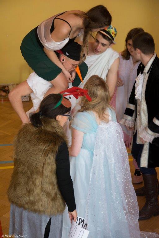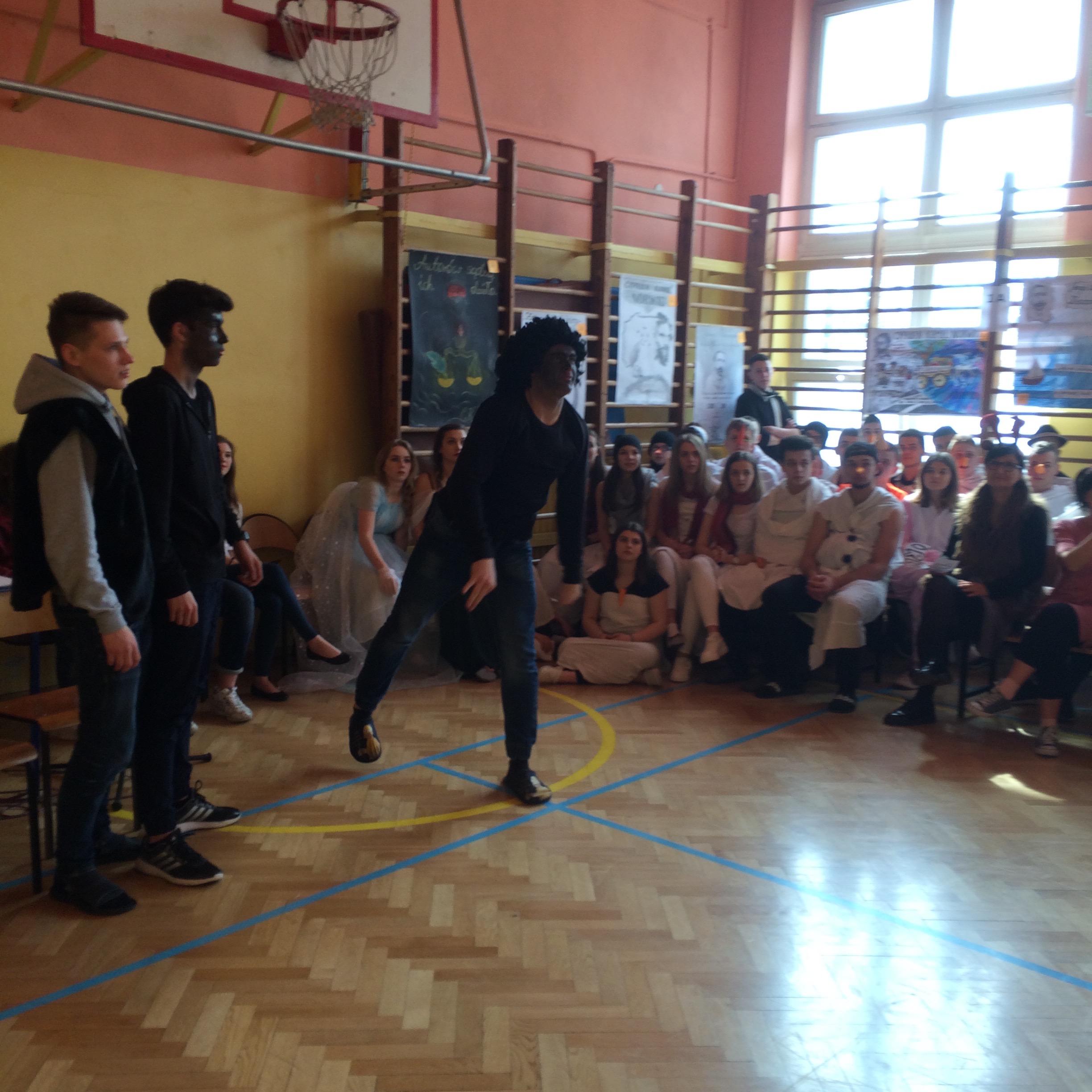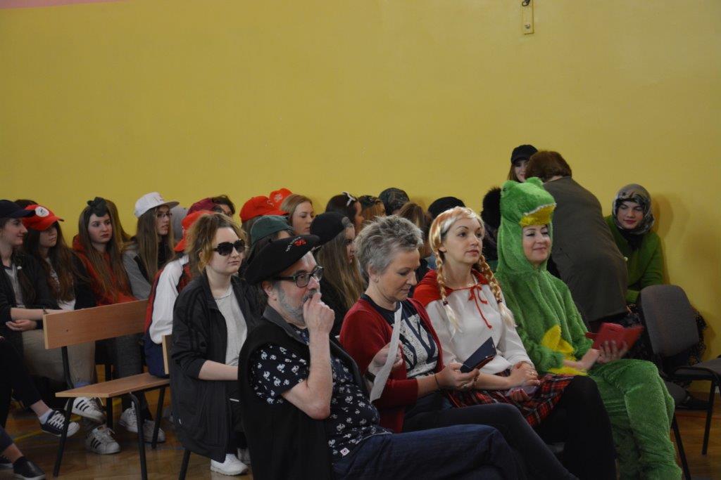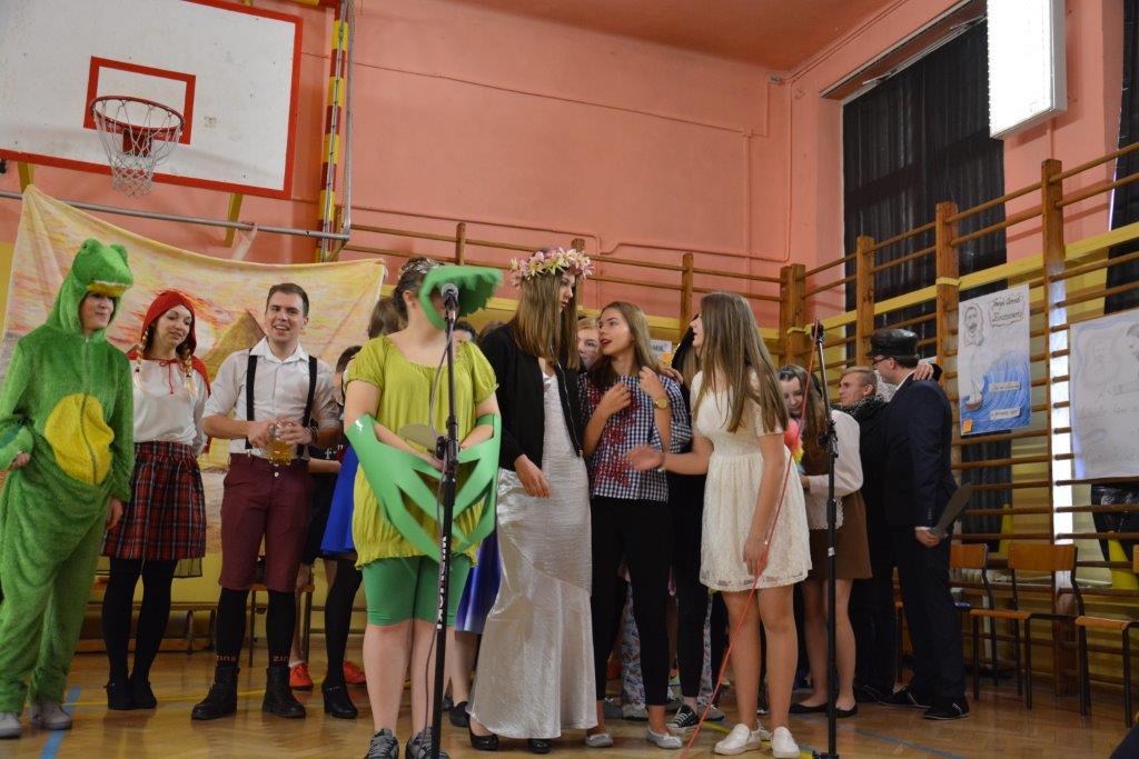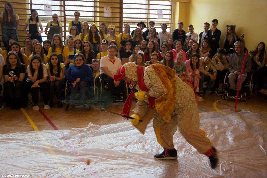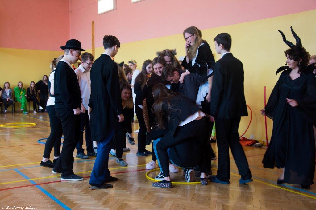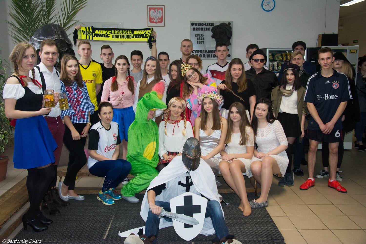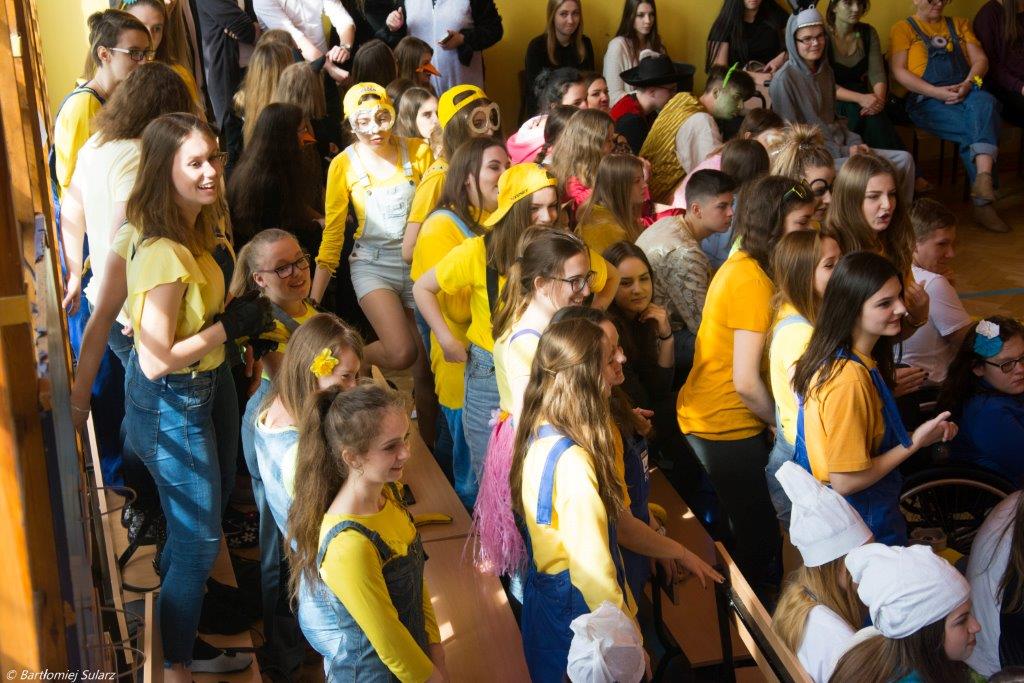 21 marca 2017 klasy drugie miały swój Dzień Języków Obcych, natomiast klasy pierwsze brały udział w rozgrywkach „sportowych”. Każda z klas zaprezentowała się również w scence, piosence lub tańcu. Zaangażowanie uczniów i ich wychowawców przekroczyło najśmielsze oczekiwania organizatorów zmagań p. Justyny Kopycińskiej (w roli Maleficient) i p. Andrzeja Krawczyńskiego (w przebraniu koguta) oraz dzielnie wspierającej ich działania p. Marzeny Pietrasik (w stroju lizaka). Konkurencje w wiosennej konwencji obejmowały zabawy z przymrużeniem oka. Między innymi należało miotać „Marzanną”, która symbolizowała odchodzącą zimę. Rzuty jajem do celu mógłby posłużyć do usmażenia sycącej wiele osób jajecznicy . Każda z klas wystąpiła również z przygotowaną wcześniej prezentacją. Klasa I „a” przebrana w postaci z „Krainy Lodu” uraczyła zebranych wielowątkową inscenizacją. Był taniec, śpiew, rzuty śnieżkami, tworzenie graffiti na żywo, a nawet galop renifera (wychowawczyni – p. Jagody Semaniak). Klasa I „b” – „Potwory i Spółka”, tak się wczuła w rolę, że bała się sama siebie, a piosenka o potworach wykonana pod przywództwem wychowawczyni p. Anny Kurp (w roli Boo) porwała (… i to dosłownie) zgromadzoną publiczność. Klasa I „c”, prezentująca postacie z filmów Disney’a zachwyciła wszystkich brawurowym tańcem i śpiewem w wykonaniu stada myszy oraz zestawem figur akrobatycznych w wykonaniu myszek Mickey, z których jedną był wychowawca p. Andrzej Wysocki. Klasa I „d” , czyli grupa Smerfów, wesoło podrygiwała razem ze swoją wychowawczynią p. Anną Banaś. Można też było usłyszeć gromki chór charakterystycznych krasnoludkowych głosów. Klasa I „e” to grupa uzbrojonych w banany Minionków. Śpiew i taniec stworków zachęcił do zabawy całą publiczność, a przykład wychowawczyni p. Marty Kurkiewicz nie pozostawił wątpliwości kto tam dowodzi ;) … Shrekowa klasa „f” z brawurowo wykonanym układem tanecznym do muzyki opatrzonej własnym tekstem, zachwyciła obserwatorów. Każdy uczeń oraz wychowawczyni p. Aleksandra Wojda (Fiona) z oddaniem prezentował swoją postać. Prezentacja klasy I „g” – Pingwinów z Madagaskaru – zmusiła wszystkich do „śmiałego wyginania ciała”, a pingwinia rodzinka, pod przywództwem wychowawczyni p. Agnieszki Woźnickiej, popłynęła wężem po sali gimnastycznej. Wszyscy świetnie się bawili, nawet reporter Bartek Sularz z 2 „b”, który „zawisł” na drabinkach!