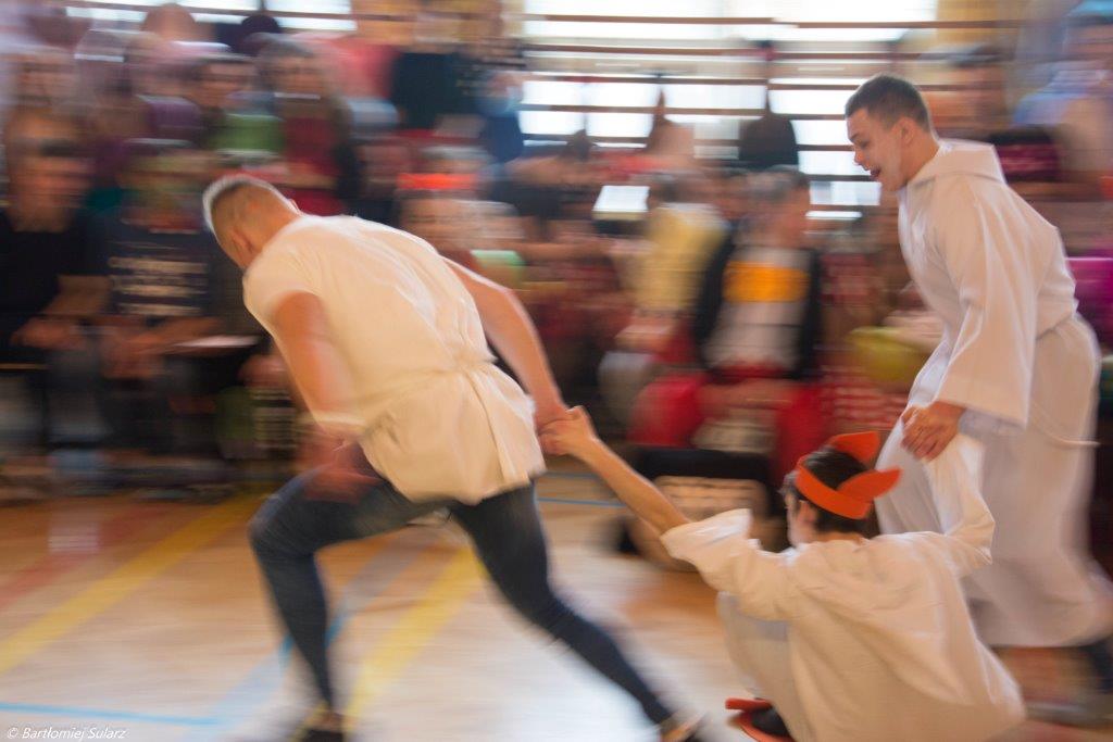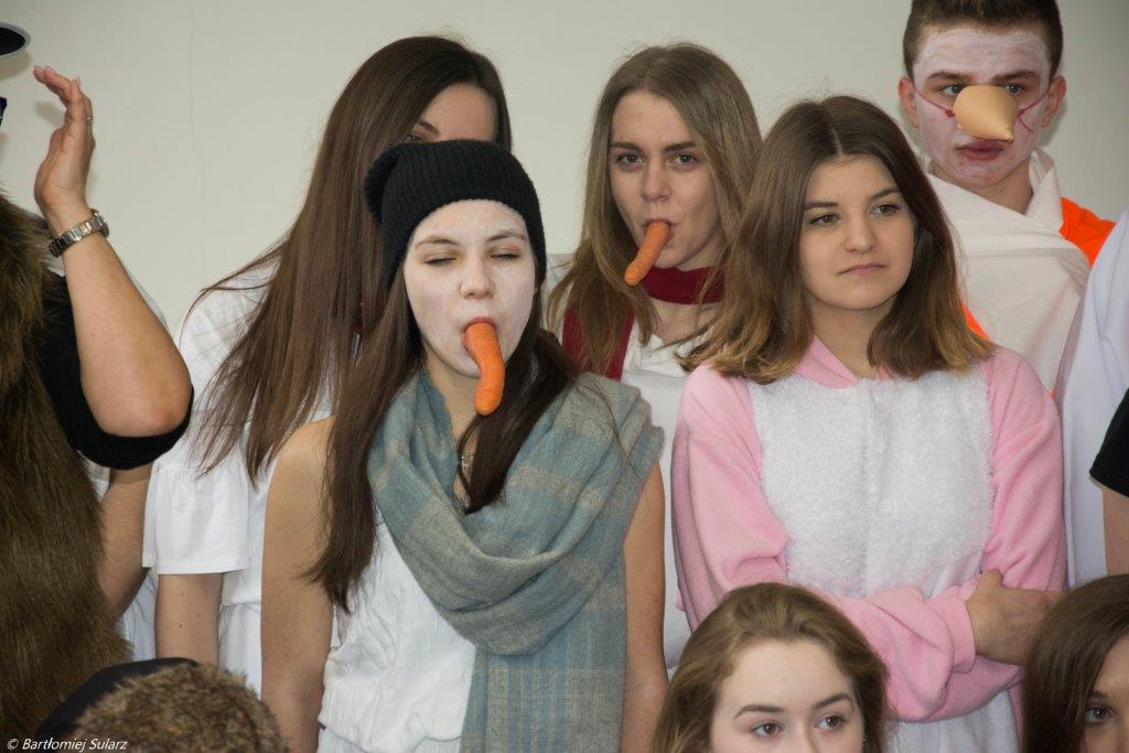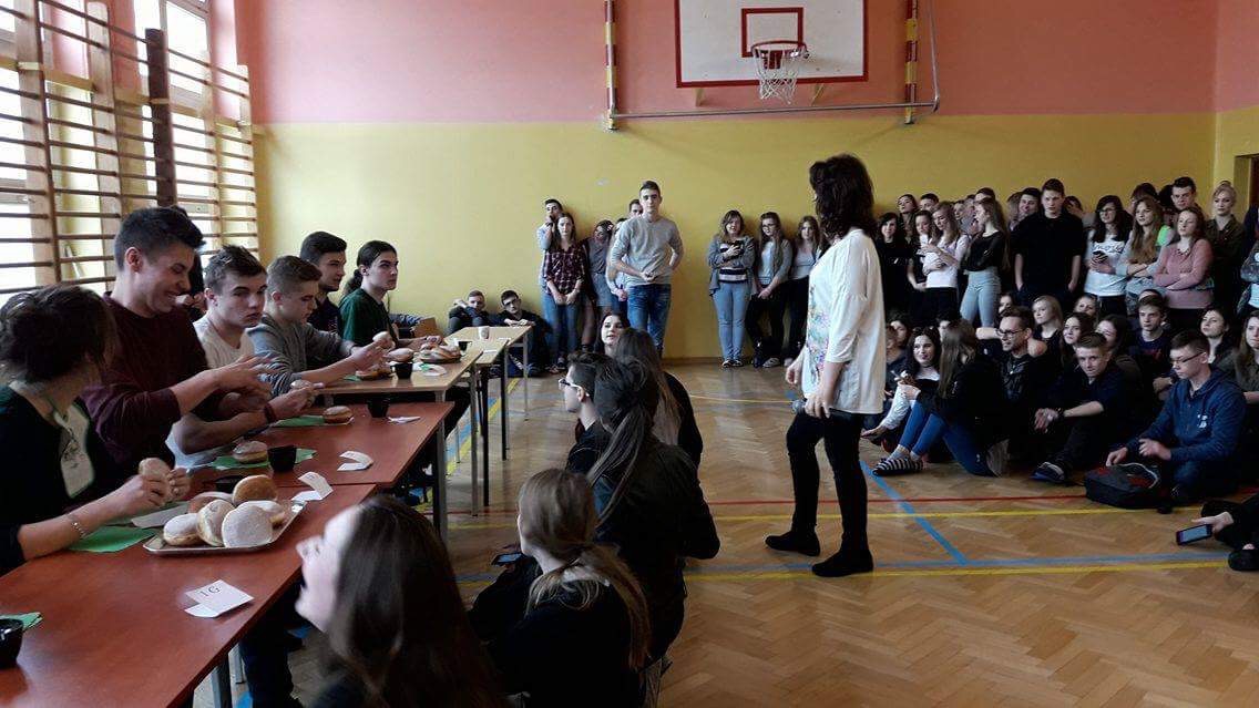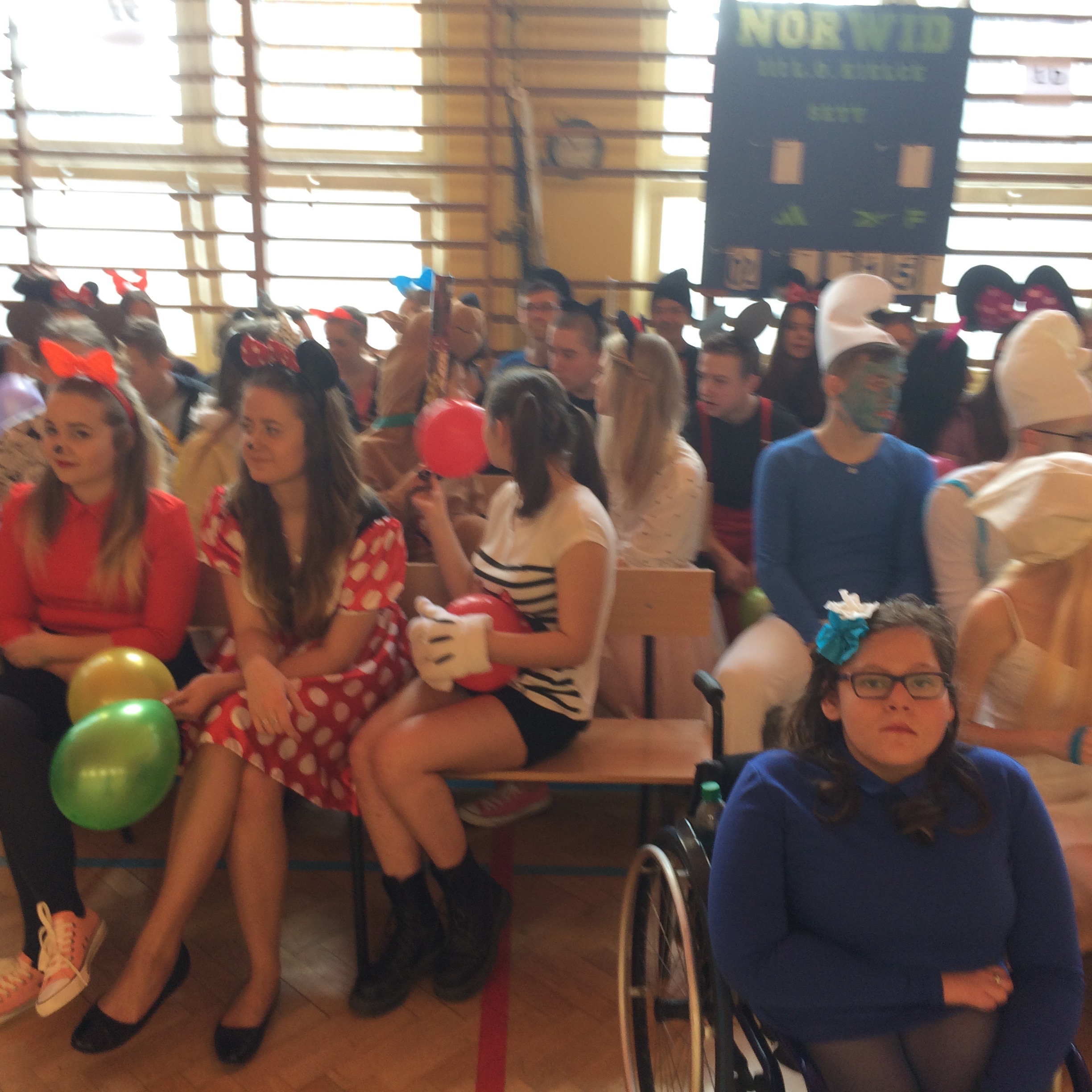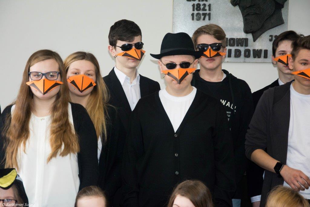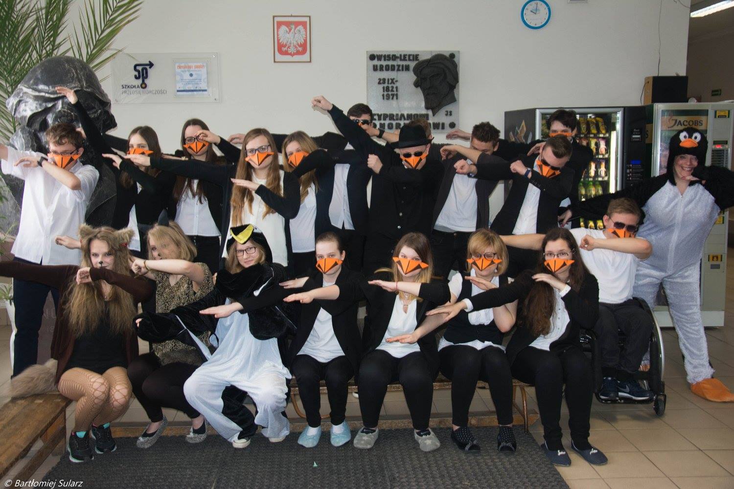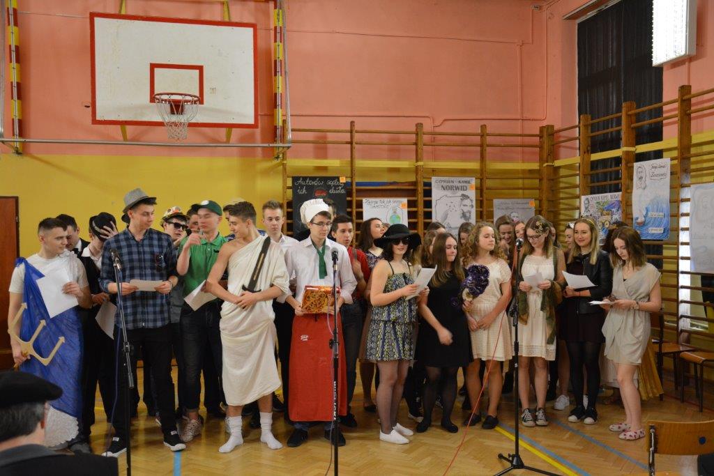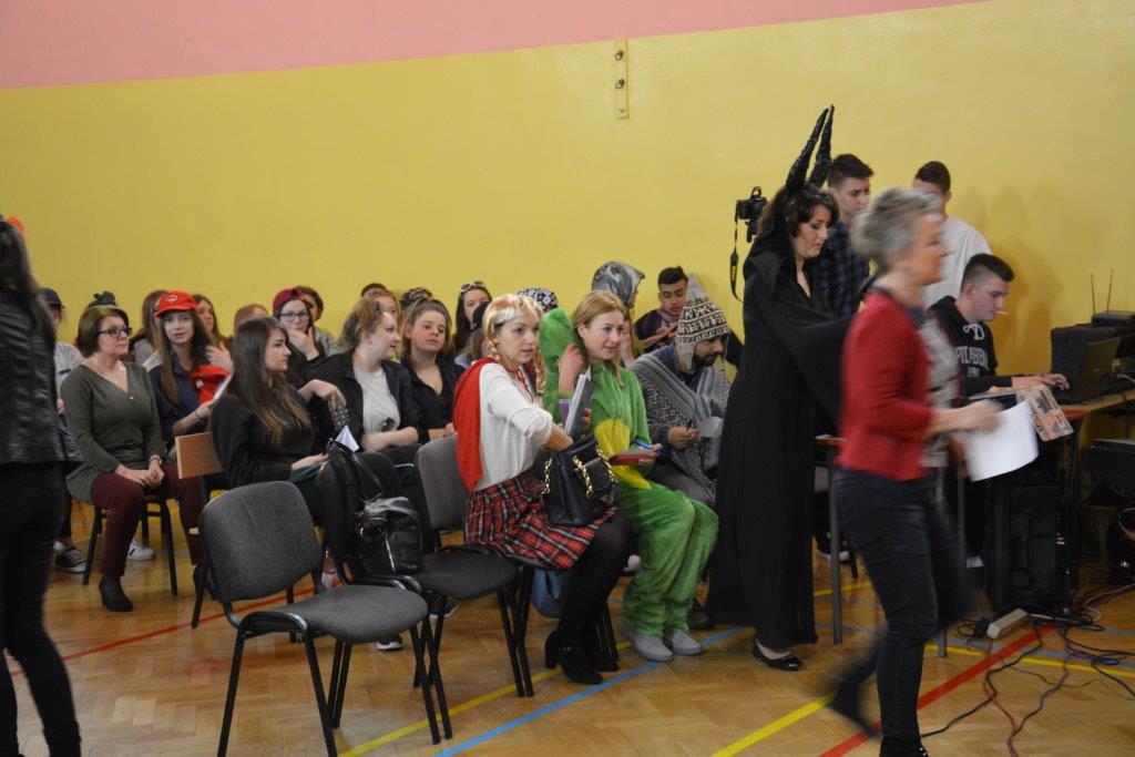 21 marca 2017 klasy drugie miały swój Dzień Języków Obcych, natomiast klasy pierwsze brały udział w rozgrywkach „sportowych”. Każda z klas zaprezentowała się również w scence, piosence lub tańcu. Zaangażowanie uczniów i ich wychowawców przekroczyło najśmielsze oczekiwania organizatorów zmagań p. Justyny Kopycińskiej (w roli Maleficient) i p. Andrzeja Krawczyńskiego (w przebraniu koguta) oraz dzielnie wspierającej ich działania p. Marzeny Pietrasik (w stroju lizaka). Konkurencje w wiosennej konwencji obejmowały zabawy z przymrużeniem oka. Między innymi należało miotać „Marzanną”, która symbolizowała odchodzącą zimę. Rzuty jajem do celu mógłby posłużyć do usmażenia sycącej wiele osób jajecznicy . Każda z klas wystąpiła również z przygotowaną wcześniej prezentacją. Klasa I „a” przebrana w postaci z „Krainy Lodu” uraczyła zebranych wielowątkową inscenizacją. Był taniec, śpiew, rzuty śnieżkami, tworzenie graffiti na żywo, a nawet galop renifera (wychowawczyni – p. Jagody Semaniak). Klasa I „b” – „Potwory i Spółka”, tak się wczuła w rolę, że bała się sama siebie, a piosenka o potworach wykonana pod przywództwem wychowawczyni p. Anny Kurp (w roli Boo) porwała (… i to dosłownie) zgromadzoną publiczność. Klasa I „c”, prezentująca postacie z filmów Disney’a zachwyciła wszystkich brawurowym tańcem i śpiewem w wykonaniu stada myszy oraz zestawem figur akrobatycznych w wykonaniu myszek Mickey, z których jedną był wychowawca p. Andrzej Wysocki. Klasa I „d” , czyli grupa Smerfów, wesoło podrygiwała razem ze swoją wychowawczynią p. Anną Banaś. Można też było usłyszeć gromki chór charakterystycznych krasnoludkowych głosów. Klasa I „e” to grupa uzbrojonych w banany Minionków. Śpiew i taniec stworków zachęcił do zabawy całą publiczność, a przykład wychowawczyni p. Marty Kurkiewicz nie pozostawił wątpliwości kto tam dowodzi ;) … Shrekowa klasa „f” z brawurowo wykonanym układem tanecznym do muzyki opatrzonej własnym tekstem, zachwyciła obserwatorów. Każdy uczeń oraz wychowawczyni p. Aleksandra Wojda (Fiona) z oddaniem prezentował swoją postać. Prezentacja klasy I „g” – Pingwinów z Madagaskaru – zmusiła wszystkich do „śmiałego wyginania ciała”, a pingwinia rodzinka, pod przywództwem wychowawczyni p. Agnieszki Woźnickiej, popłynęła wężem po sali gimnastycznej. Wszyscy świetnie się bawili, nawet reporter Bartek Sularz z 2 „b”, który „zawisł” na drabinkach!