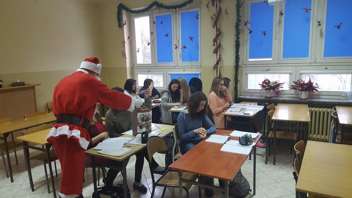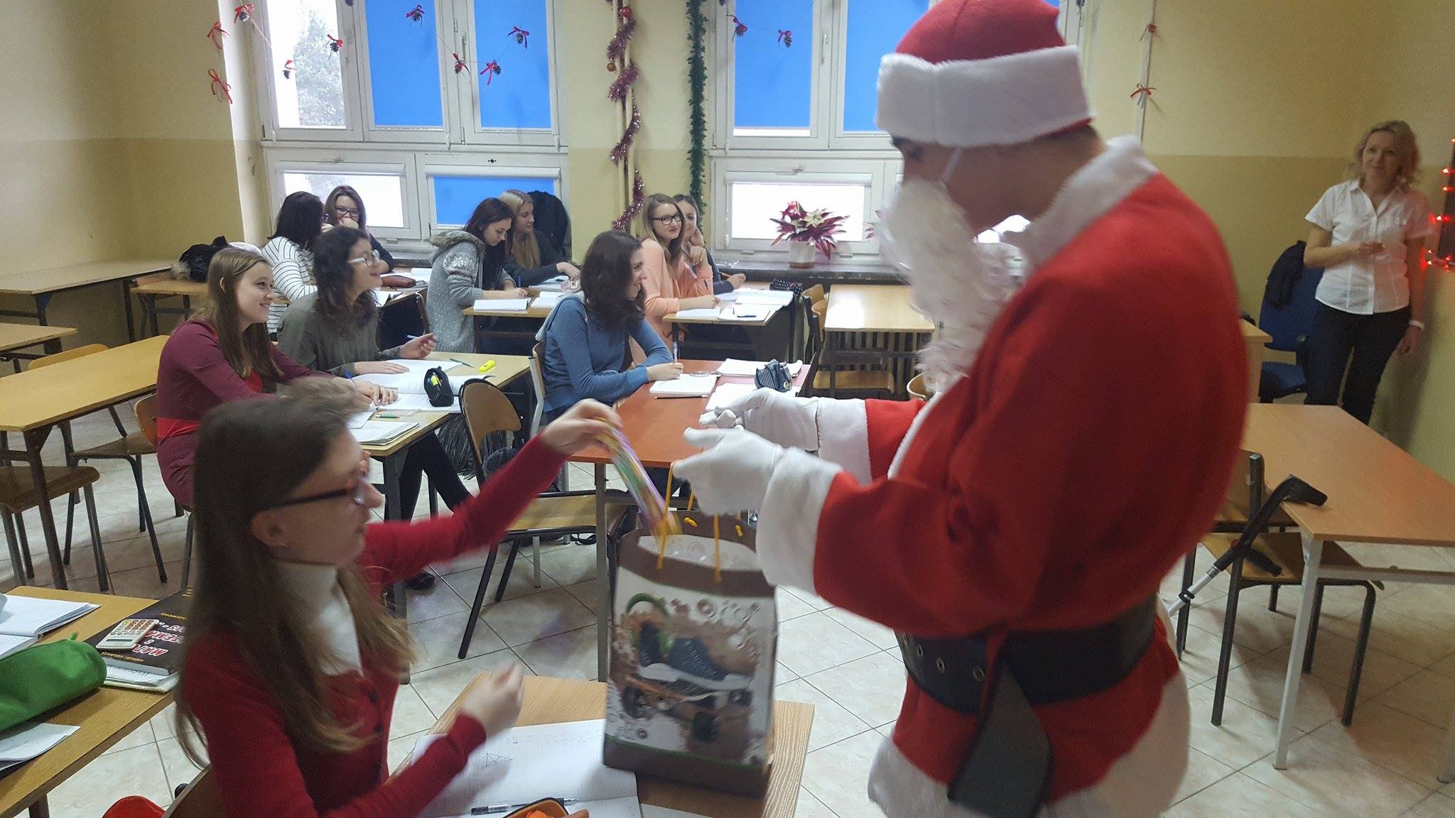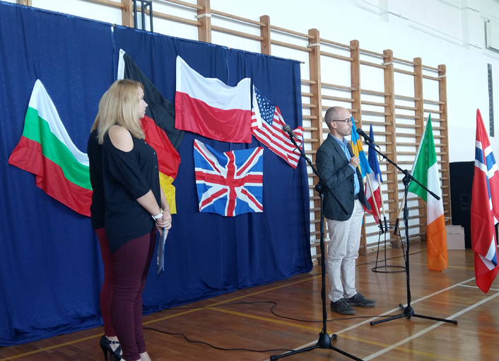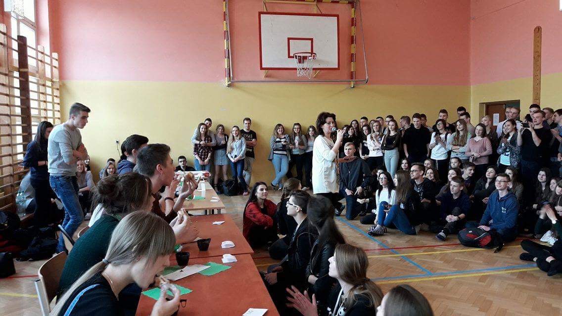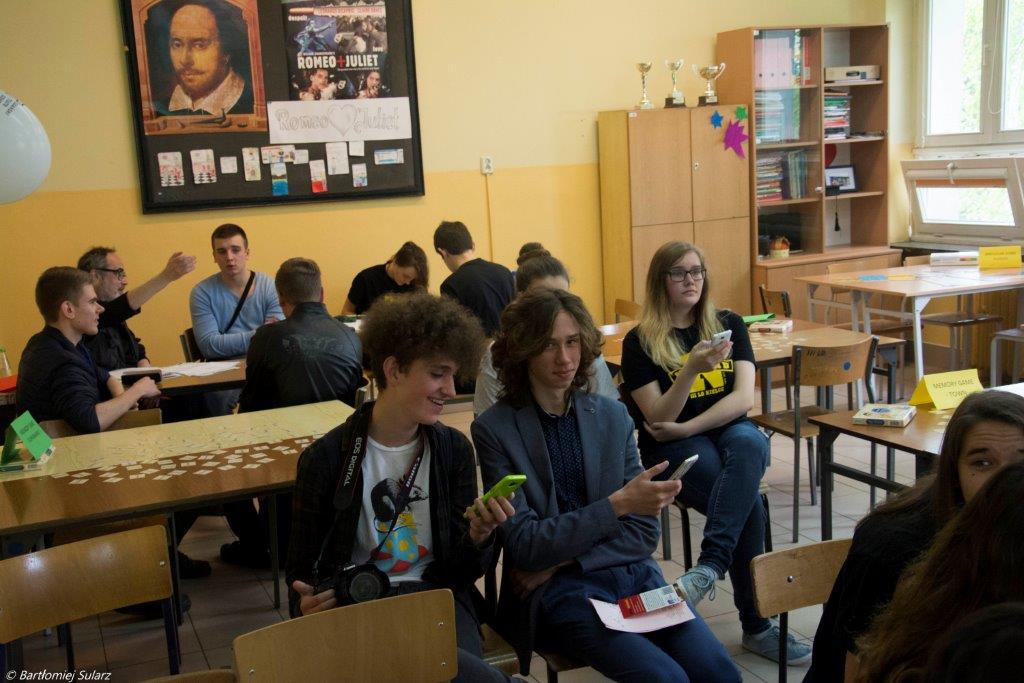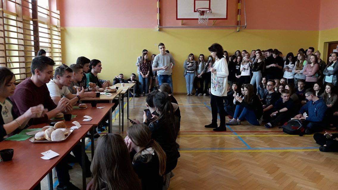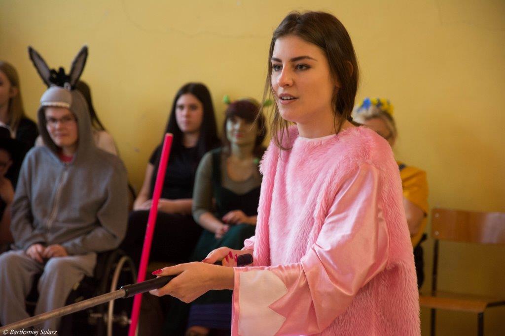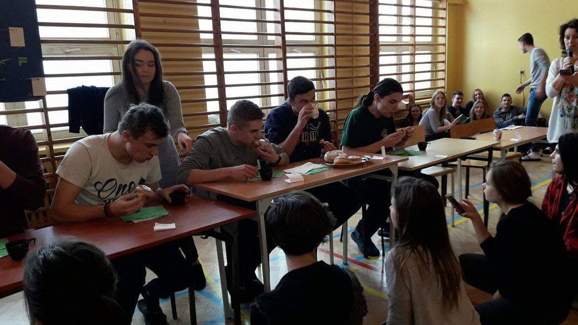 21 marca 2017 klasy drugie miały swój Dzień Języków Obcych, natomiast klasy pierwsze brały udział w rozgrywkach „sportowych”. Każda z klas zaprezentowała się również w scence, piosence lub tańcu. Zaangażowanie uczniów i ich wychowawców przekroczyło najśmielsze oczekiwania organizatorów zmagań p. Justyny Kopycińskiej (w roli Maleficient) i p. Andrzeja Krawczyńskiego (w przebraniu koguta) oraz dzielnie wspierającej ich działania p. Marzeny Pietrasik (w stroju lizaka). Konkurencje w wiosennej konwencji obejmowały zabawy z przymrużeniem oka. Między innymi należało miotać „Marzanną”, która symbolizowała odchodzącą zimę. Rzuty jajem do celu mógłby posłużyć do usmażenia sycącej wiele osób jajecznicy . Każda z klas wystąpiła również z przygotowaną wcześniej prezentacją. Klasa I „a” przebrana w postaci z „Krainy Lodu” uraczyła zebranych wielowątkową inscenizacją. Był taniec, śpiew, rzuty śnieżkami, tworzenie graffiti na żywo, a nawet galop renifera (wychowawczyni – p. Jagody Semaniak). Klasa I „b” – „Potwory i Spółka”, tak się wczuła w rolę, że bała się sama siebie, a piosenka o potworach wykonana pod przywództwem wychowawczyni p. Anny Kurp (w roli Boo) porwała (… i to dosłownie) zgromadzoną publiczność. Klasa I „c”, prezentująca postacie z filmów Disney’a zachwyciła wszystkich brawurowym tańcem i śpiewem w wykonaniu stada myszy oraz zestawem figur akrobatycznych w wykonaniu myszek Mickey, z których jedną był wychowawca p. Andrzej Wysocki. Klasa I „d” , czyli grupa Smerfów, wesoło podrygiwała razem ze swoją wychowawczynią p. Anną Banaś. Można też było usłyszeć gromki chór charakterystycznych krasnoludkowych głosów. Klasa I „e” to grupa uzbrojonych w banany Minionków. Śpiew i taniec stworków zachęcił do zabawy całą publiczność, a przykład wychowawczyni p. Marty Kurkiewicz nie pozostawił wątpliwości kto tam dowodzi ;) … Shrekowa klasa „f” z brawurowo wykonanym układem tanecznym do muzyki opatrzonej własnym tekstem, zachwyciła obserwatorów. Każdy uczeń oraz wychowawczyni p. Aleksandra Wojda (Fiona) z oddaniem prezentował swoją postać. Prezentacja klasy I „g” – Pingwinów z Madagaskaru – zmusiła wszystkich do „śmiałego wyginania ciała”, a pingwinia rodzinka, pod przywództwem wychowawczyni p. Agnieszki Woźnickiej, popłynęła wężem po sali gimnastycznej. Wszyscy świetnie się bawili, nawet reporter Bartek Sularz z 2 „b”, który „zawisł” na drabinkach!