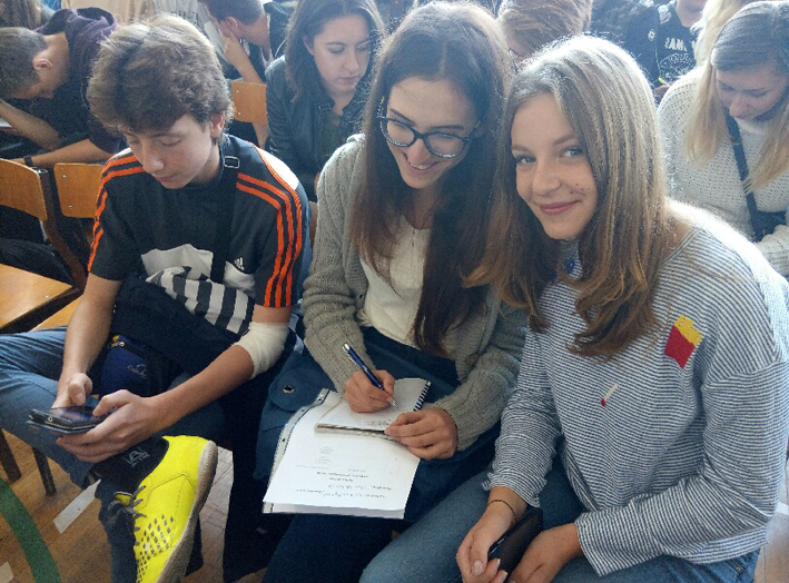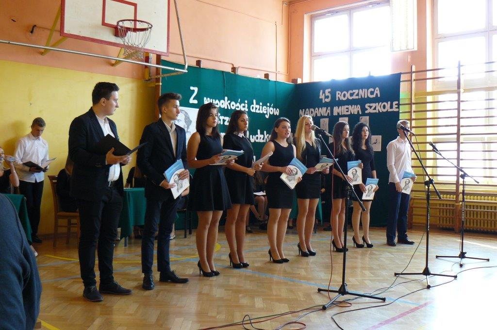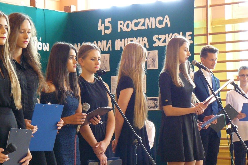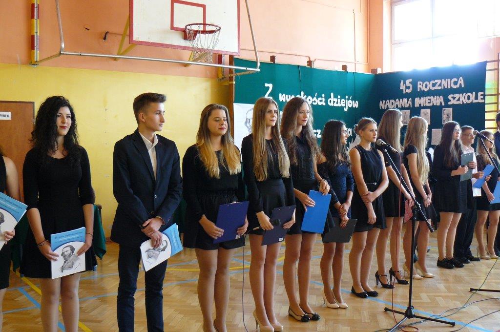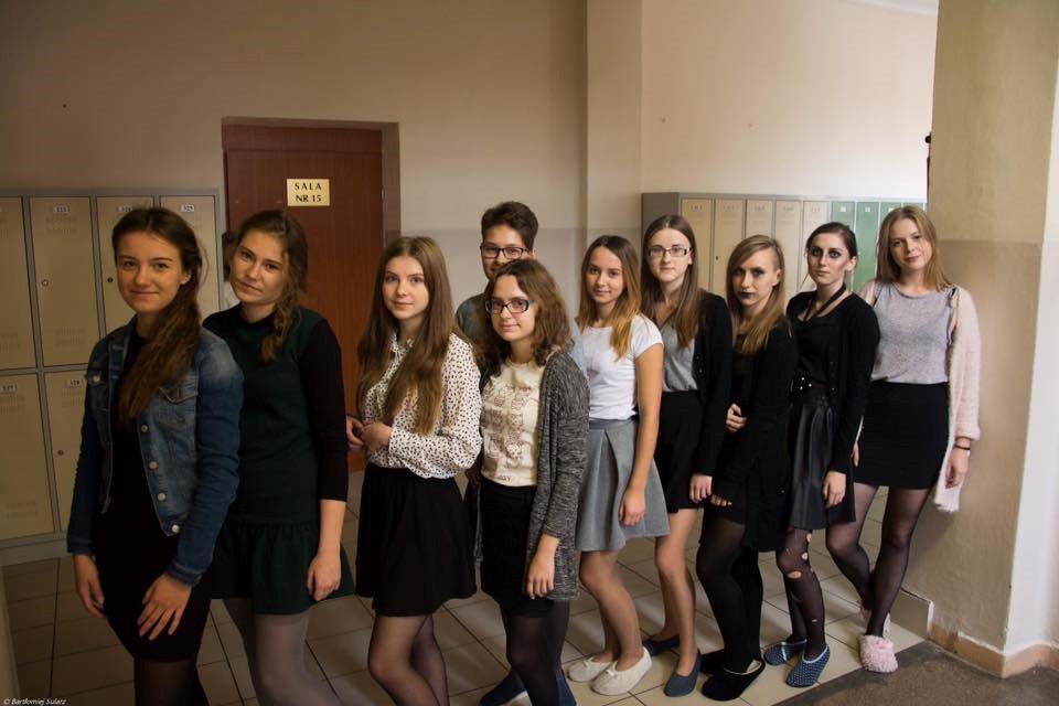 Klasa 2e:Weronika Sobczyk, Martyna Pabis, Joanna Gad, Diana Kondera, Anna Szymkiewicz, Monika Brożek, Aleksandra Kulczycka, Katarzyna Pilarz, Artur Skowron.