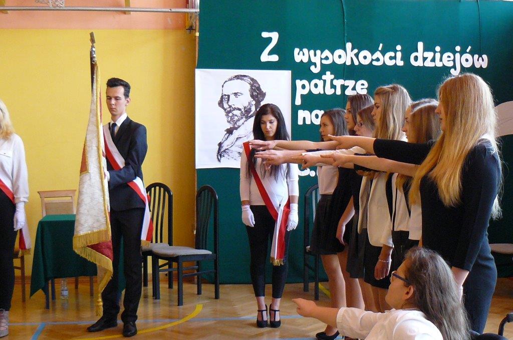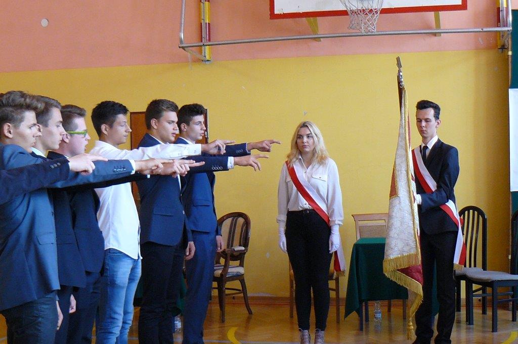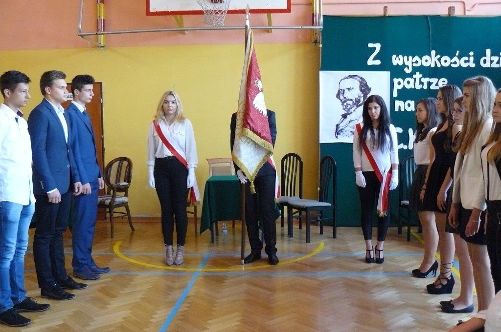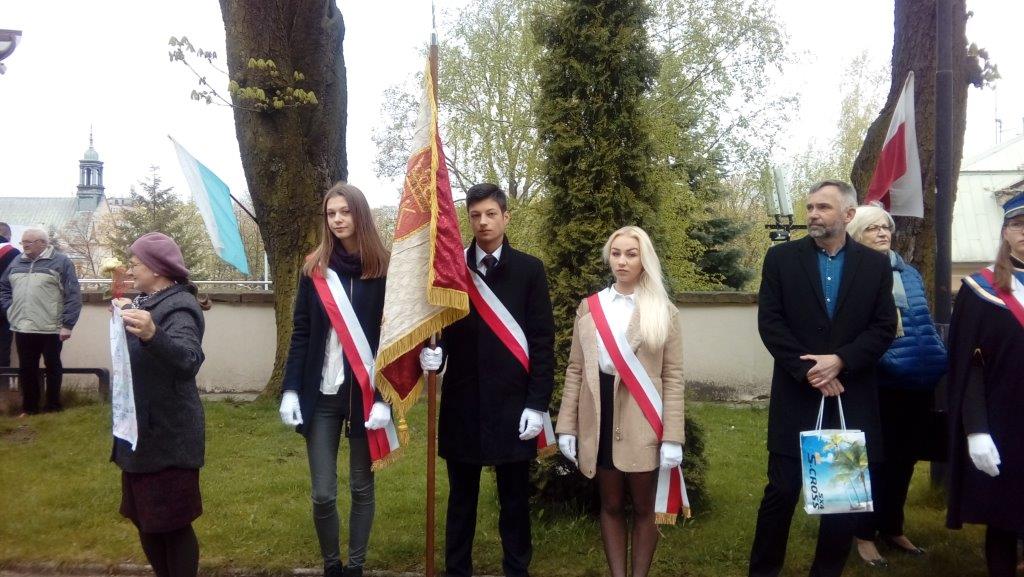 Nowy poczet sztandarowy w składzie:Bartłomiej Januchta, Adrianna Białek i Aleksandra Żłobeckapo raz pierwszy reprezentował naszą szkołę podczas uroszystej Mszy Świętej z okazji Święta Konstytucji 3 Maja w kieleckiej Katedrze.