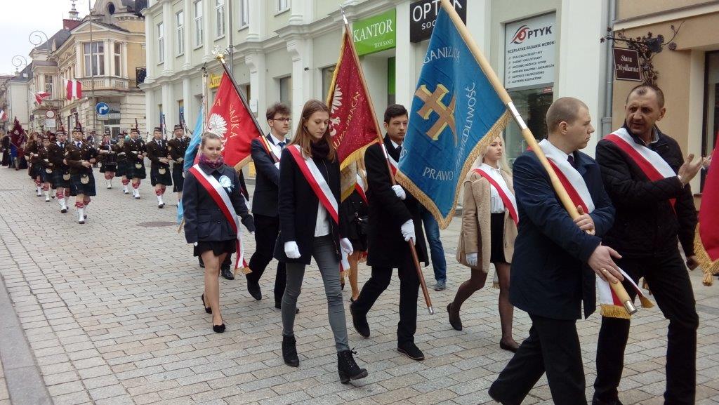 Następnie uczestnicy obchodów przemaszerowali do parku miejskiego pod pomnik Stanisława Staszica, gdzie odbyły się dalsze uroczystości.
