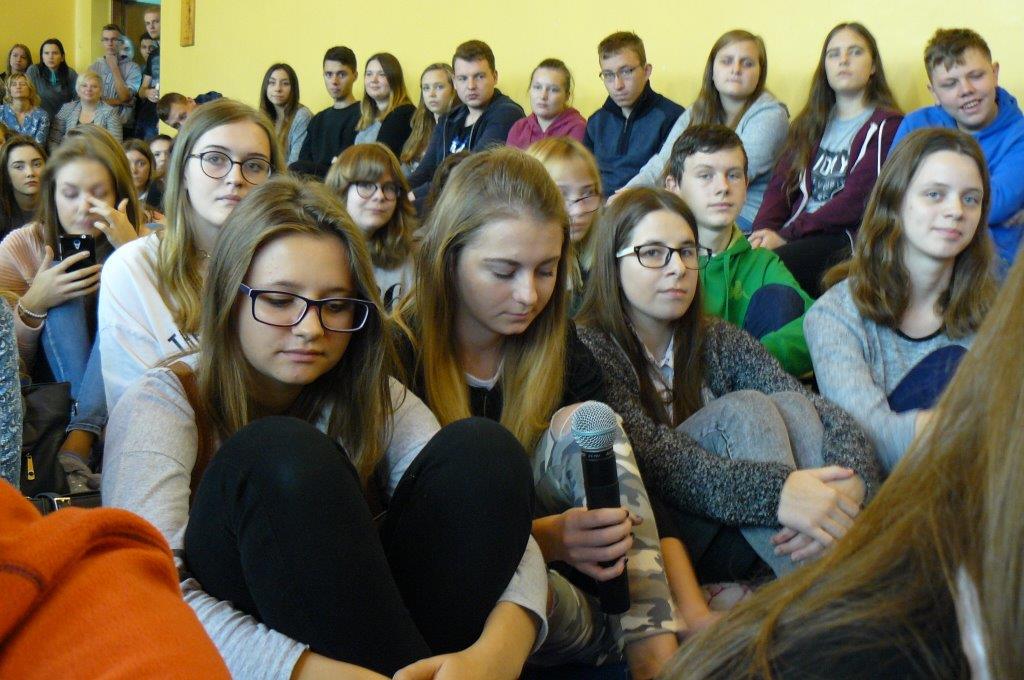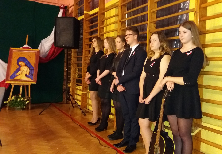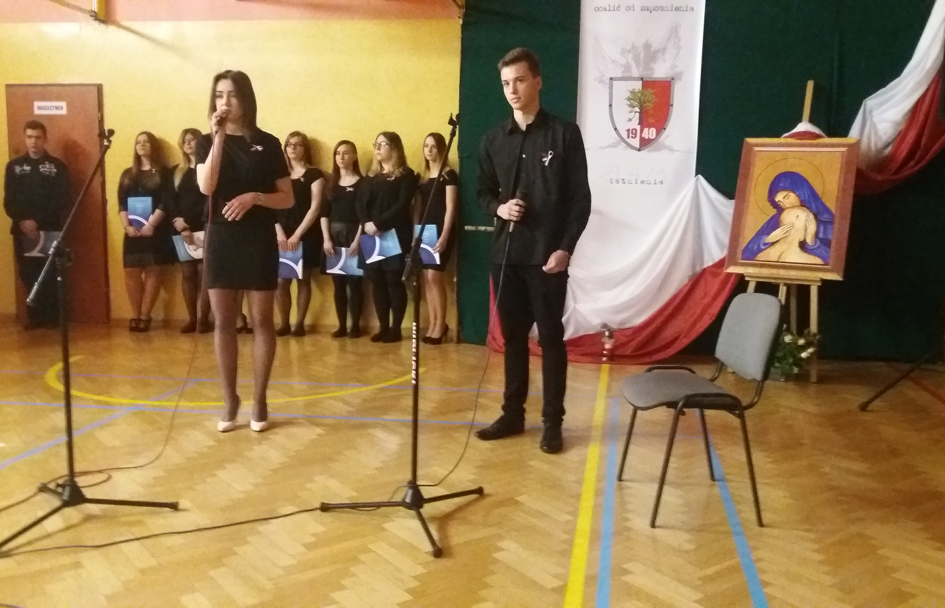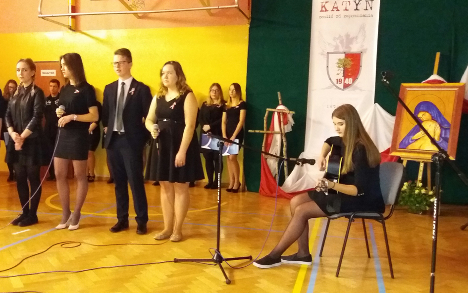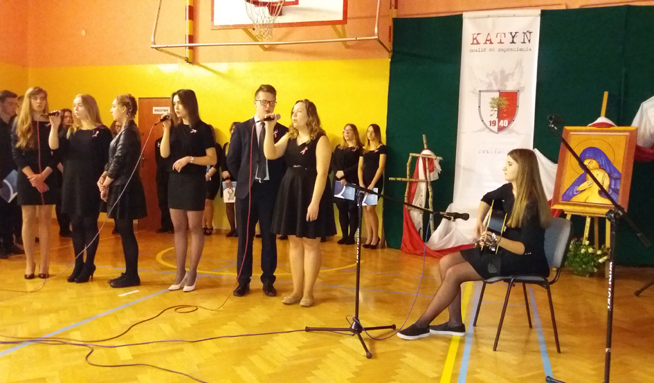 Uczniowie w programie słowno-muzycznym wyreżyserowanym przez p. Agnieszkę Bagińską-Juszczak i p. Katarzynę Stanik uczcili pamięćPolaków pomordowanych w 1940 roku oraz tych, którzy zginęliw 2010 roku w katastrofie smoleńskiej.