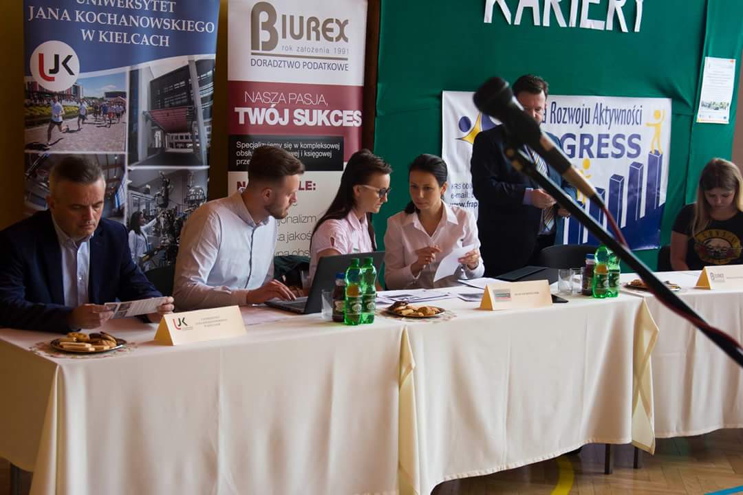 Dnia 4 kwietnia 2017 r. uczniowie biorący udział w projekcie pn.: „Praca zespołowa, rozwiązywanie problemów to drogowskazy dla uczniów III LO w Kielcach” finansowanym ze środków Unii Europejskiej uczestniczyli w XI Ogólnopolskich Targach Pracy: „Praca, Kariera, Rozwój”, organizowanych w halach wystawienniczych Targów Kielce.Uczestnicy Targów mieli możliwość przejrzenia tysiąca ogłoszeń o pracy w kraju i poza nim, oferowanych przez publiczne służby zatrudnienia: wojewódzkie, powiatowe i miejskie, a także przez agencje pośrednictwa pracy.Sztandarową pozycją w programie Ogólnopolskich Targów Pracy było Forum "Biznes, edukacja, rozwój". W trakcie tegorocznej odsłony konferencji poruszone zostały kwestie dotyczące konieczności zmian w systemie kształcenia oraz efektywnego studiowania jako sposobu na dobrze płatną pracę. Prelegenci opowiedzieli również o przedsiębiorczości jako cesze, którą można w sobie wypracować, a także o oczekiwaniach pracodawców względem kandydatów na pracowników.Podczas Targów przeprowadzone zostały również warsztaty, w których udział wzięli nasi uczniowie. Pierwszym z nich była prelekcja pt. „Sztuka autoprezentacji" przygotowana przez panią Emilię Kijankę z Wyższej Szkoły Ekonomii, Prawa i Nauk Medycznych im. prof. Edwarda Lipińskiego. Kolejne warsztaty pn. "Rekrutacja krok po kroku" poprowadziła pani Karolina Latus, właścicielka Agencji Zatrudnienia CRAFTS. Zebranym opowiedziała m.in. o tym, jak skutecznie poszukiwać zatrudnienia wykorzystując wszelkie dostępne źródła oraz które z cech wzmacniać by stać się pożądanym pracownikiem.