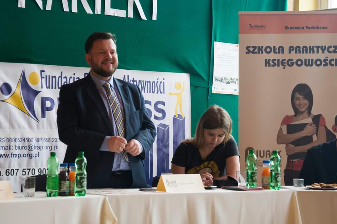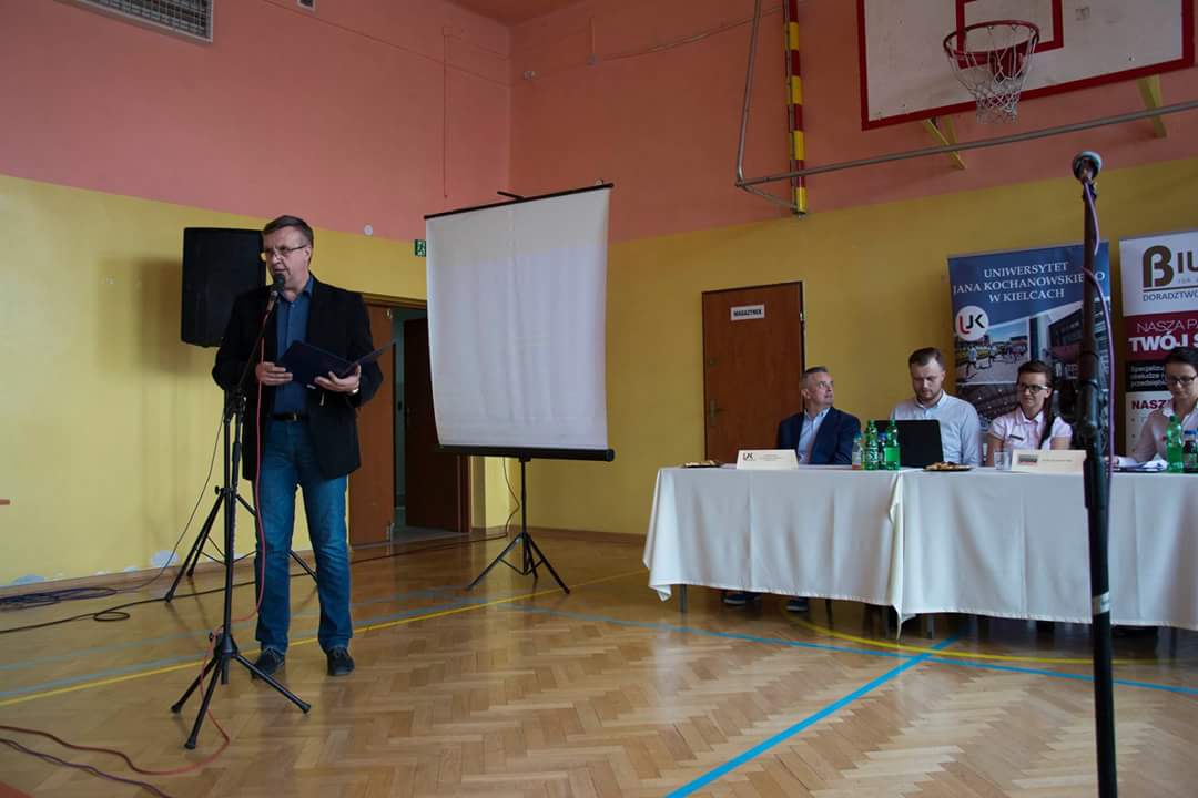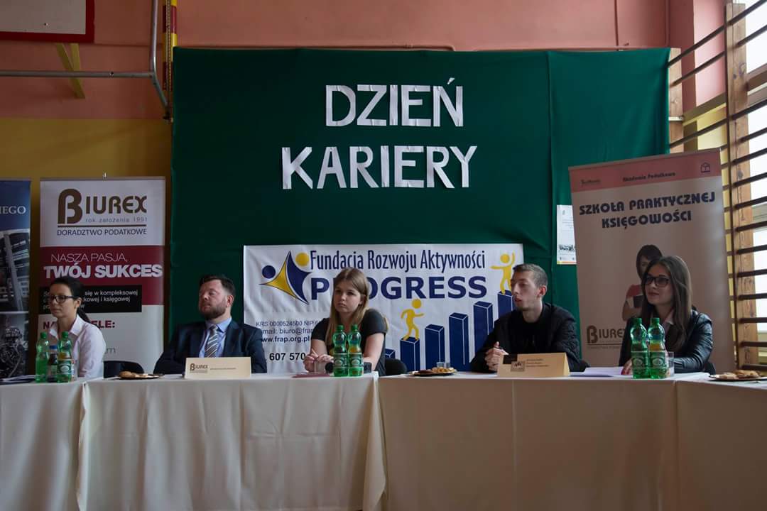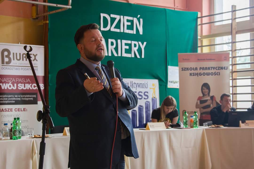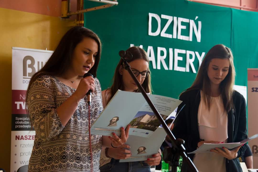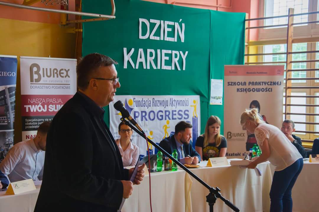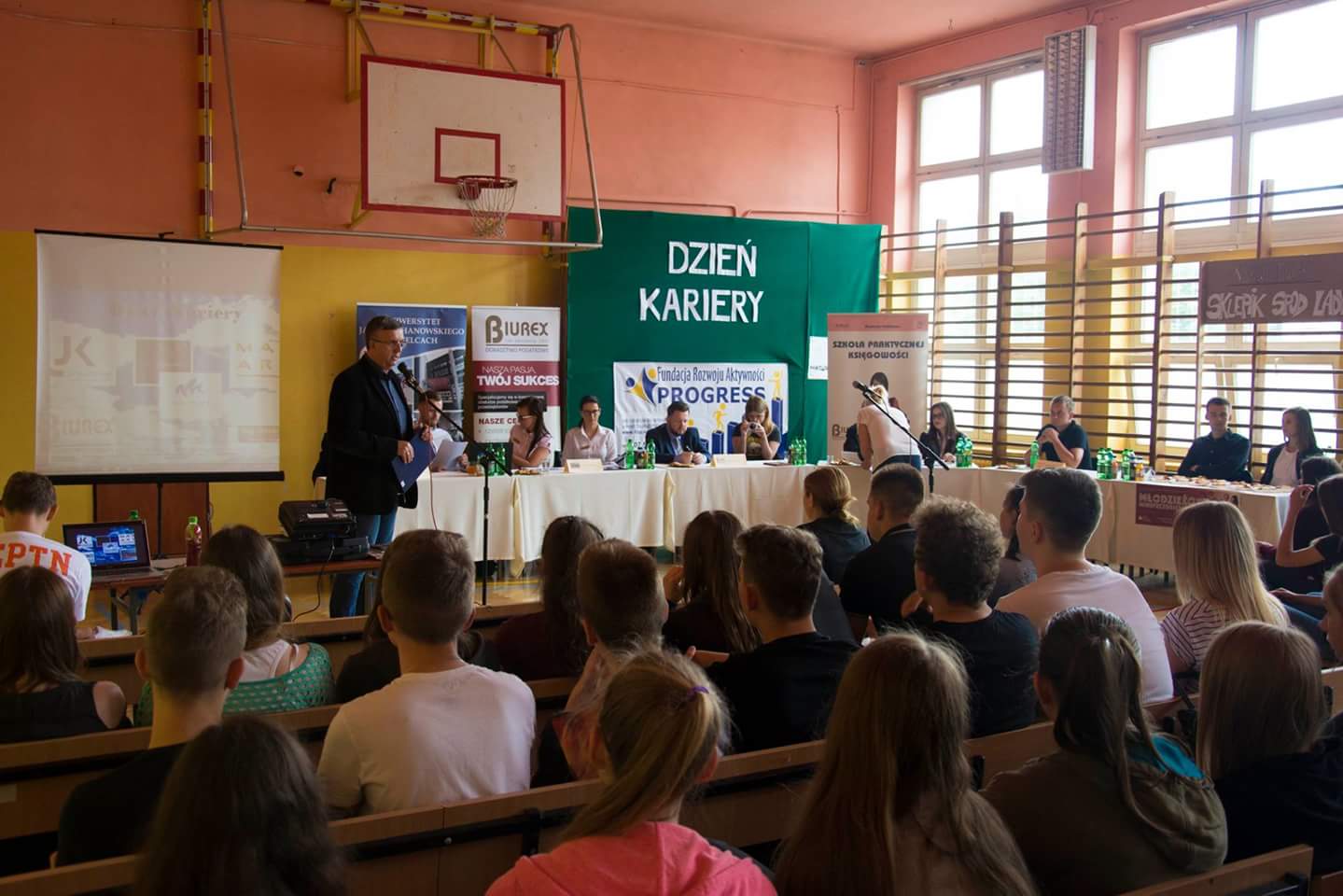 14.06.2017 odbył się w naszej szkole "DZIEŃ KARIERY". Jest to inicjatywa mająca na celu szerzenie wiedzy ekonomicznej wsród młodzieży. Dzieki zaproszonym przez nas gościom uczniowie mogli dowiedzieć się jak szeroki wachlarz kierunków studiów oferuje min. Uniwersytet Jana Kochanowskiego w Kielcach. W bardzo ciekawy sposób przybliżył to rzecznik prasowy uczelni. Jakie usługi bankowe dla młodzieży oferuje rynek wyjaśnili pracownicy Banku Zachodniego WBK. Jak ważne jest odprowadzanie podatków zaprezentował właściciel firmy Biurex. Natomiast drogę do swojej kariery, pomimo tak dużej konkurencji na rynku przybliżyli nam absolwenci a zarazem właściciele firmy DuszaVideo, PerfectLight oraz MatArt. Wszystkim wystąpienią, oprócz olbrzymiego profesjonalizmu towarzyszyły konkursy, podczas których nasi uczniowie mogli mogli zdobyć ciekawe nagrody. W wystąpieniach nie zabrakło też dużej dawki humoru :). Na koniec zaprezentowało się działające w naszej szkole Miniprzedsiębiorstwo "Sklepik spod lady". Uczniowie klasy ekonomicznej opowiedzieli na czym polega prowadzenie firmy i dla czego jest to opłacalne. Cały projekt "Dzień Kariery" zaaranżowała i koordynowała Pani Laura Cedro, która zadbała o najdrobniejsze szczegóły :)