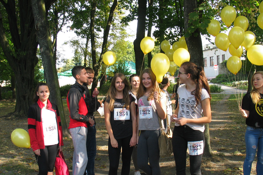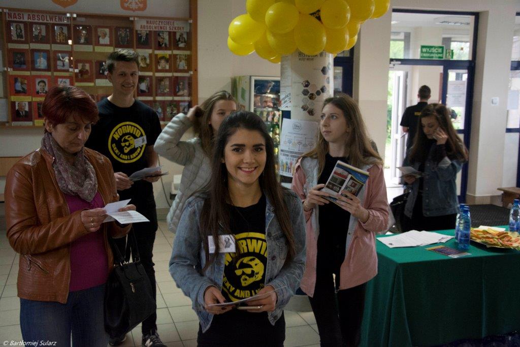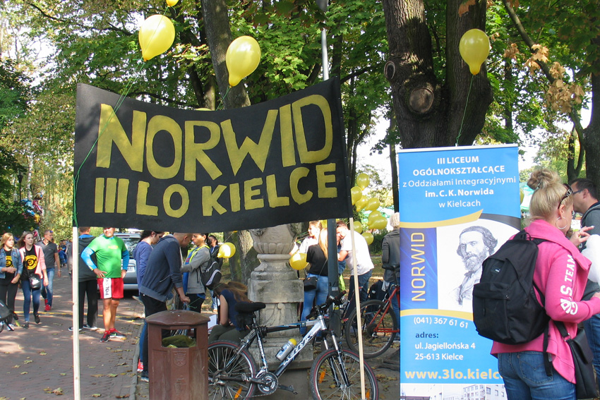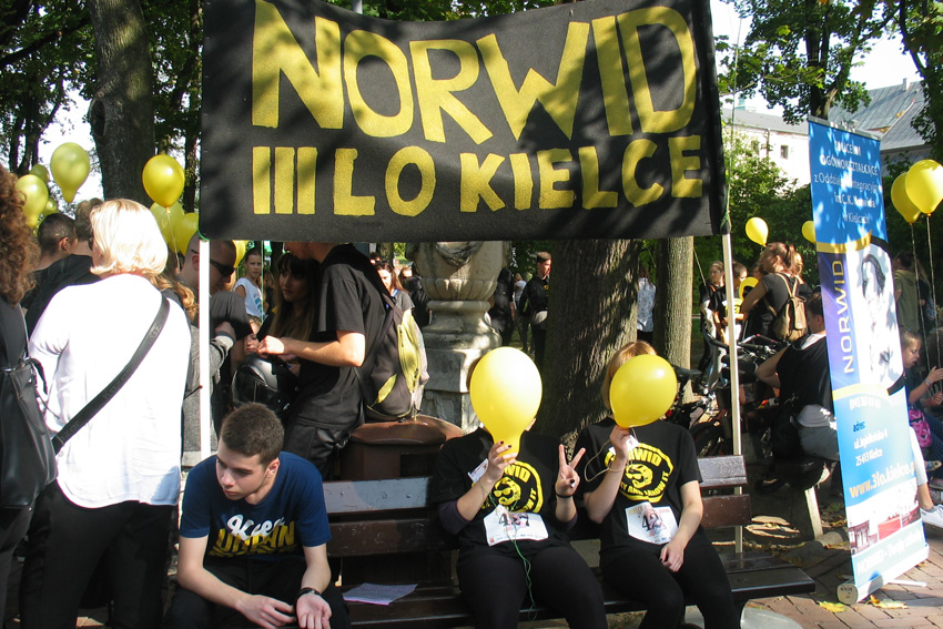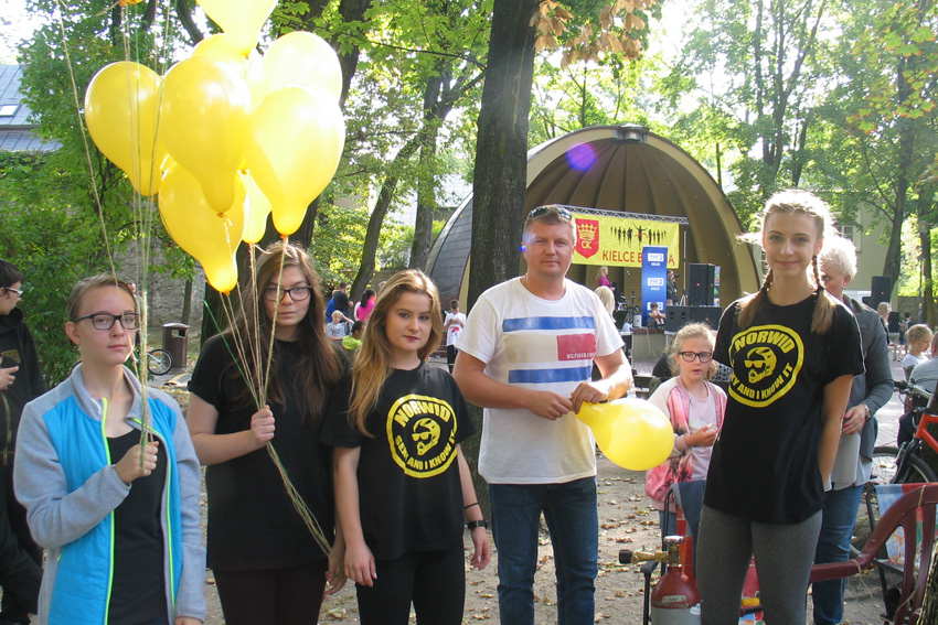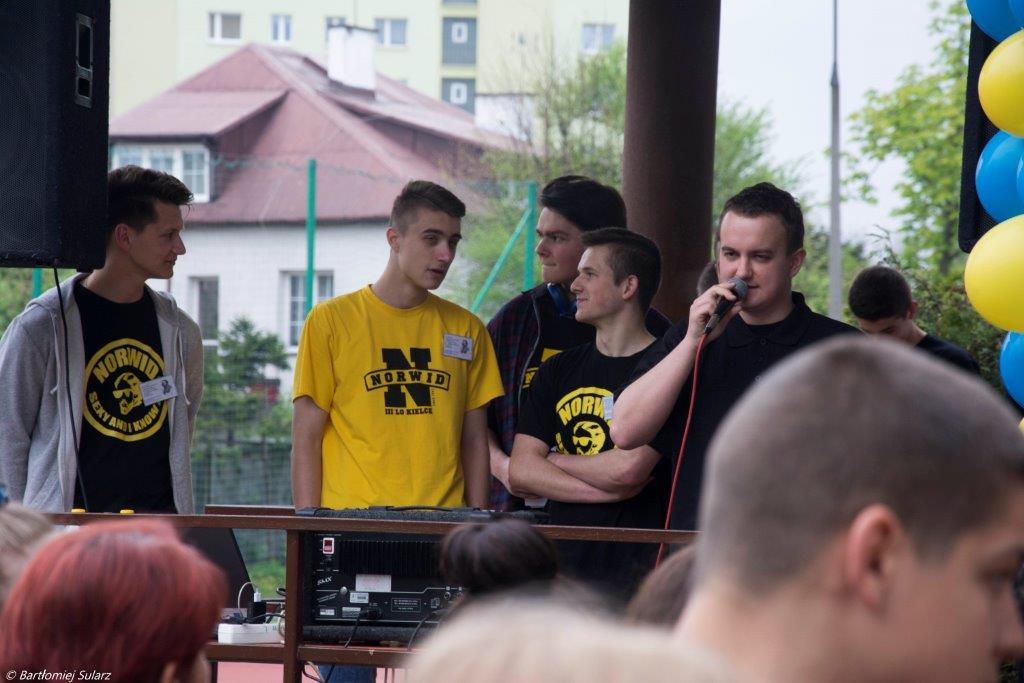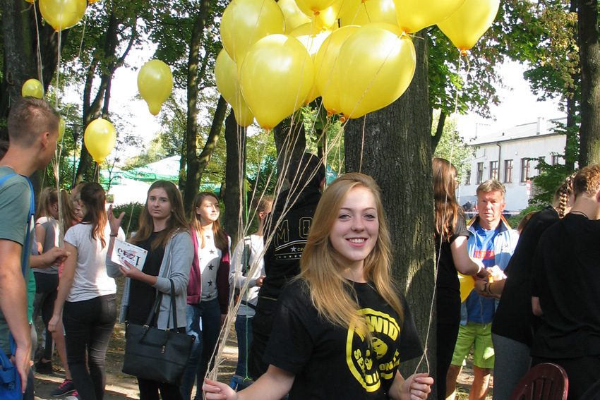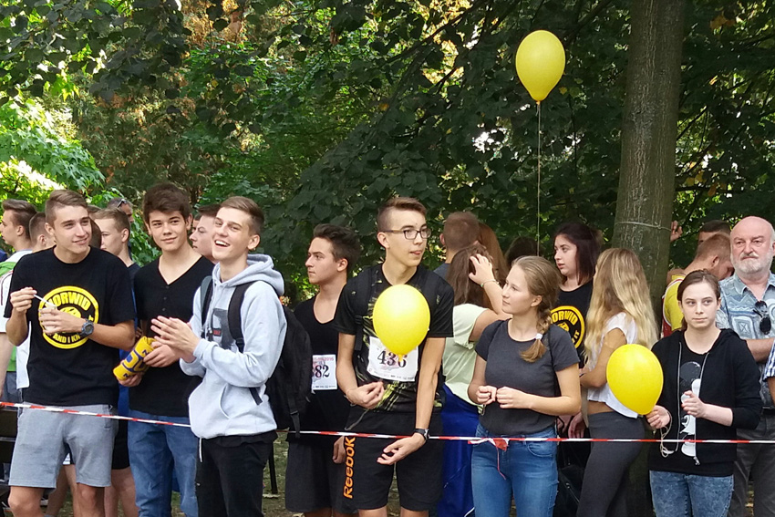 Znakiem rozpoznawalnym uczniów NORWIDA były czarne koszulki oraz żółte balony wypełnione helem, które zorganizowali nauczyciele WF wraz z dyrekcją.