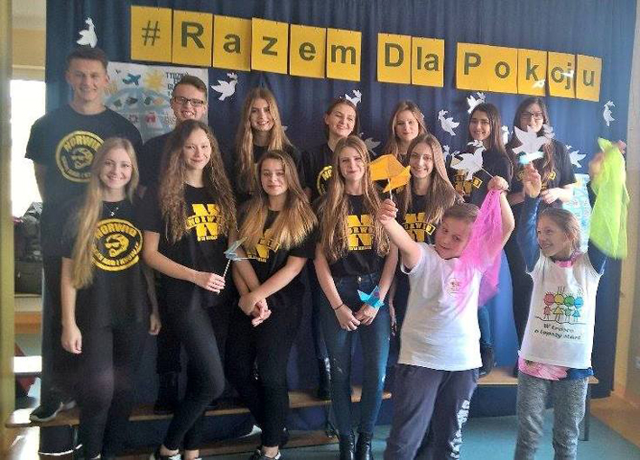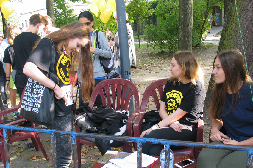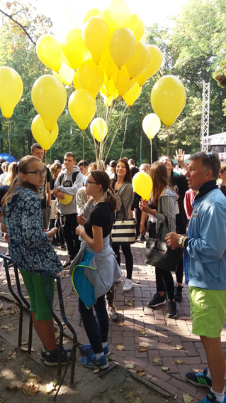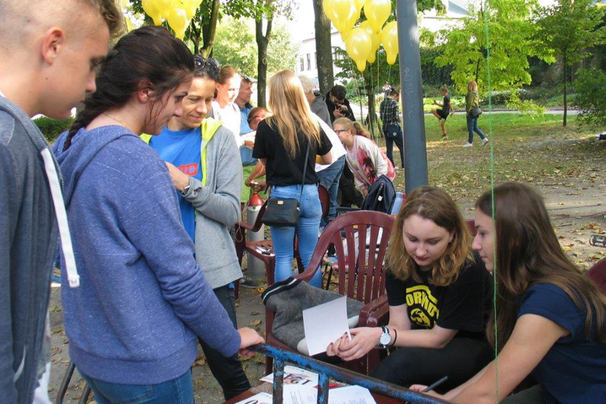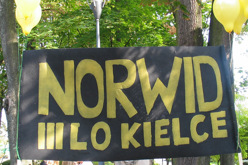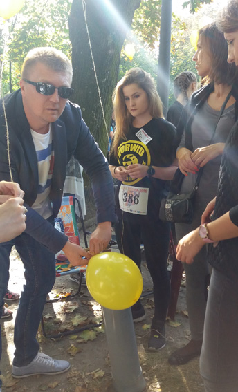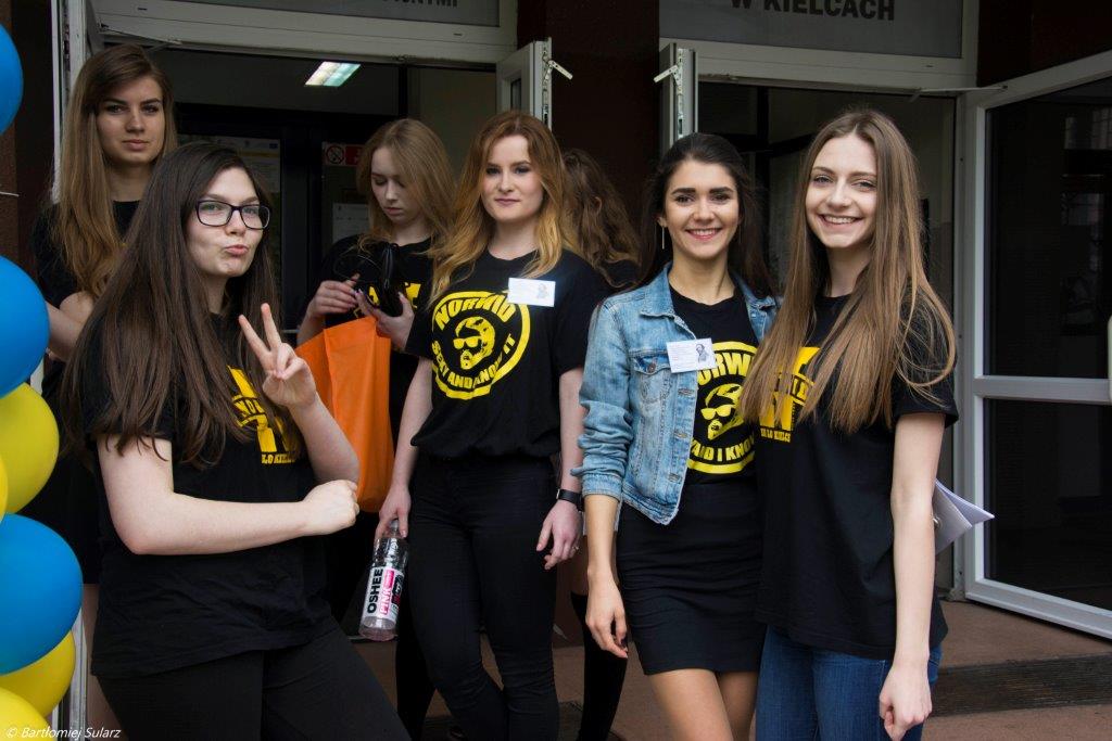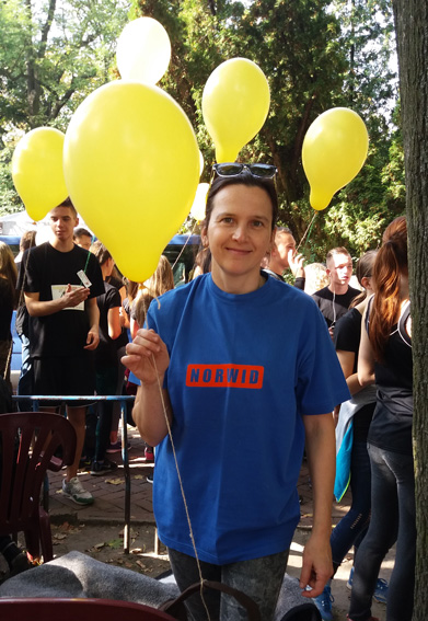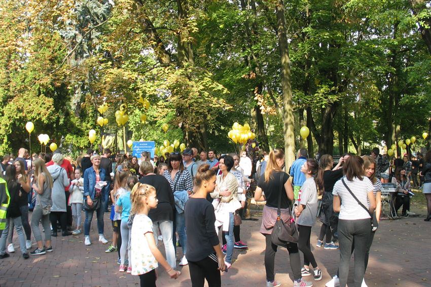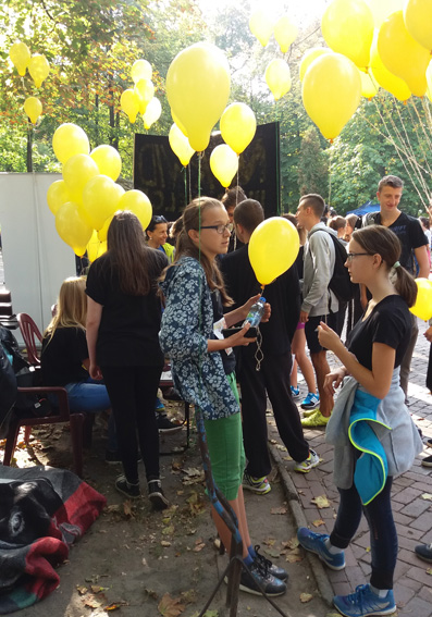 Znakiem rozpoznawalnym uczniów NORWIDA były czarne koszulki oraz żółte balony wypełnione helem, które zorganizowali nauczyciele WF wraz z dyrekcją.