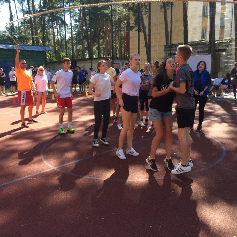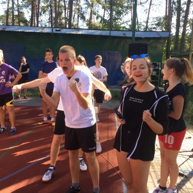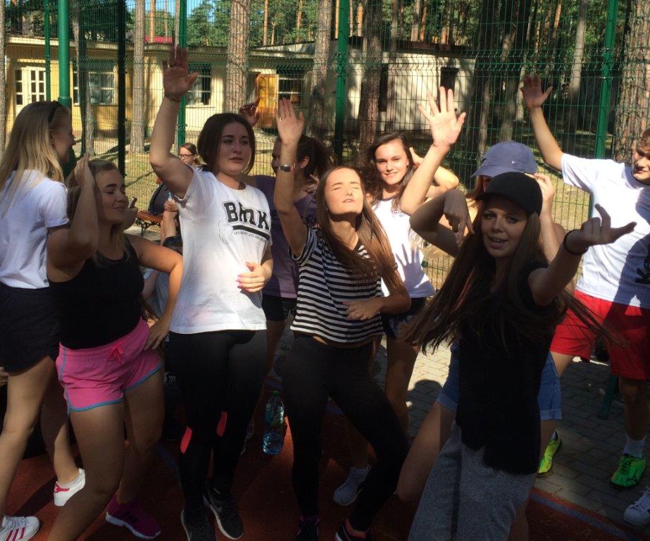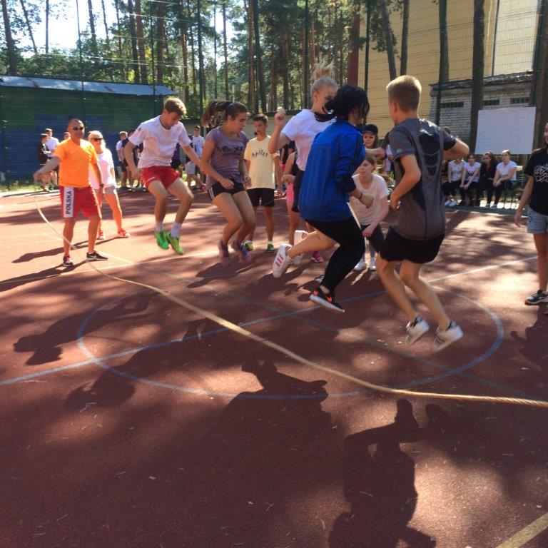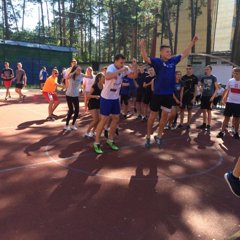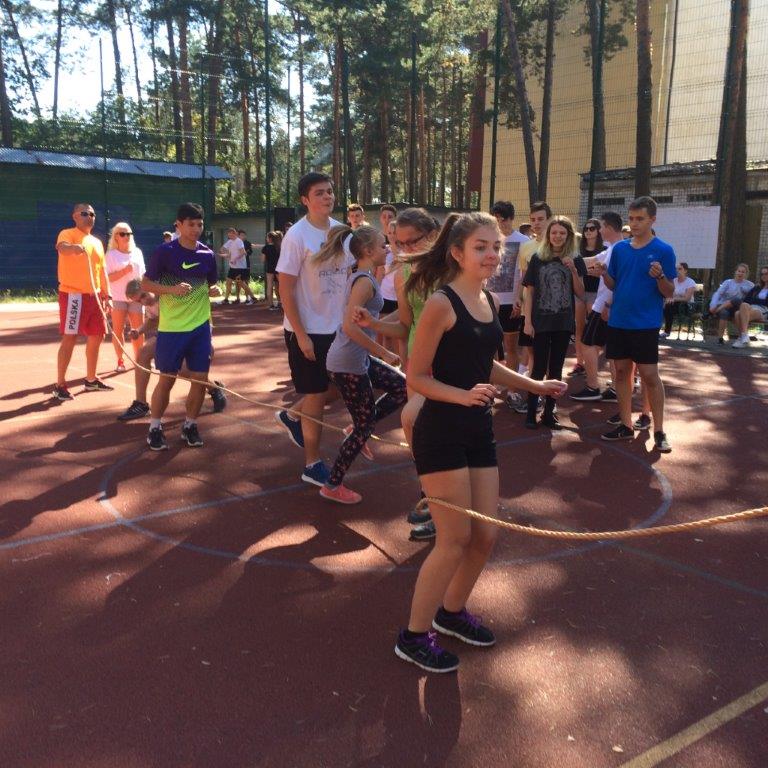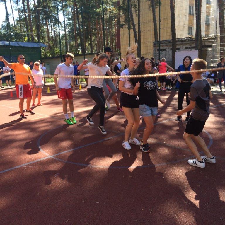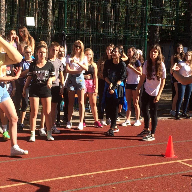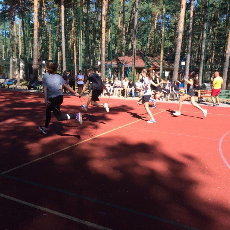Po przybyciu na miejsce, wszyscy uczestnicy wpadli w wir rozgrywek sportowych zorganizowanych przez nauczycieli WF-u . Przeciąganie liny, sztafeta, „rozgniatanie” baloników to tylko niektóre z konkurencji. Rywalizacji towarzyszyły doping kibiców oraz muzyka i śpiew. Pośród przebojów największą popularnością cieszyła się piosenka Sylwii Grzeszczak „Tamta dziewczyna”, którą odśpiewali chóralnie wszyscy obozowicze. Nie zabrakło również spontanicznego tańca w wykonaniu pierwszaków i ich wychowawców oraz krótkiej lekcji ‘YMCA’. Nawet jeżeli w danym momencie bezpośrednio nie każdy brał udział w rywalizacji sportowej, to z pewnością wszyscy włączali się we wspólną zabawę …