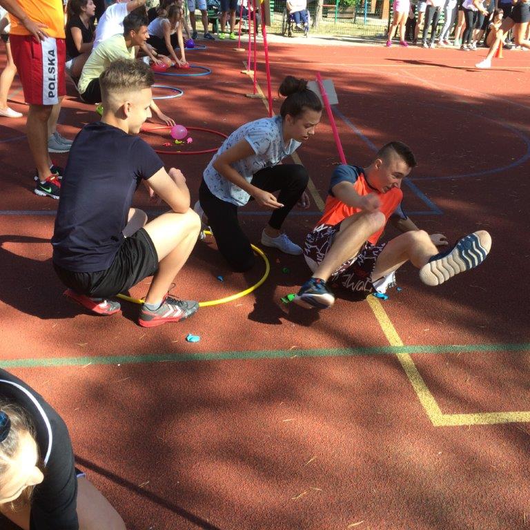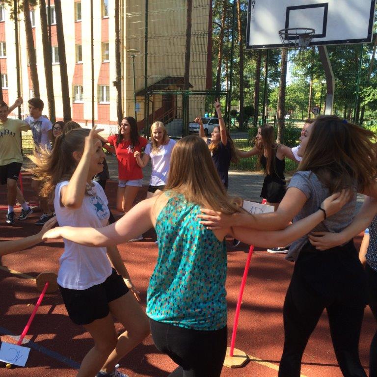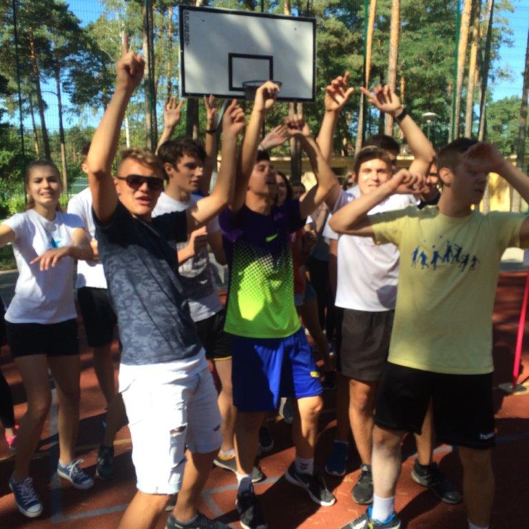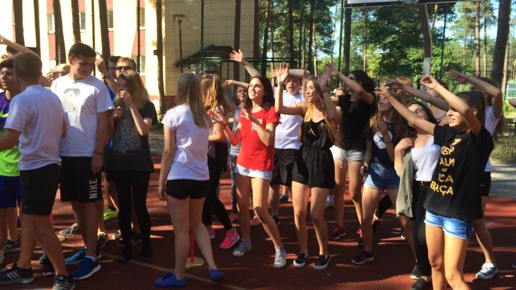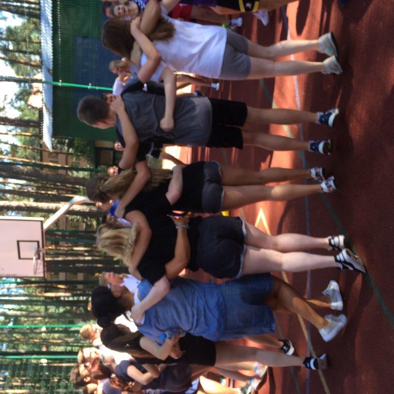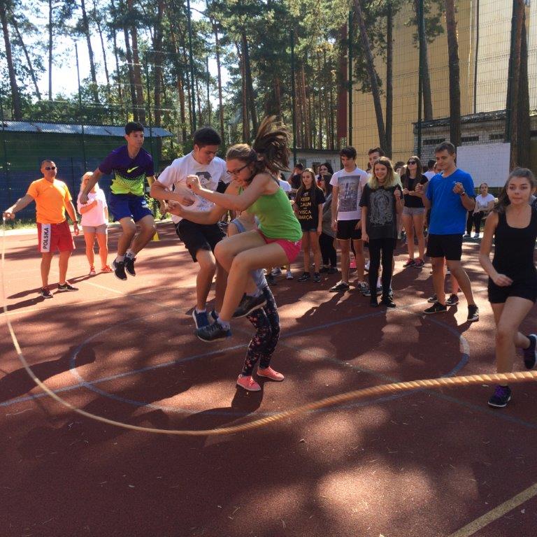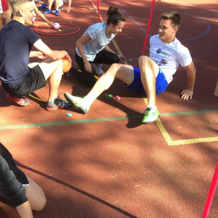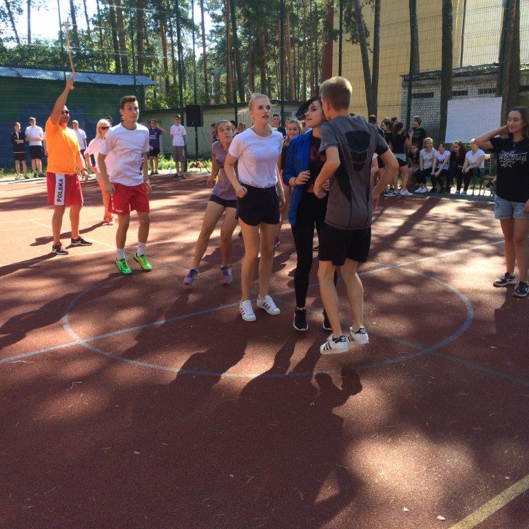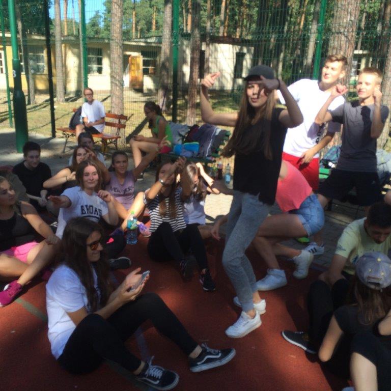 Po przybyciu na miejsce, wszyscy uczestnicy wpadli w wir rozgrywek sportowych zorganizowanych przez nauczycieli WF-u . Przeciąganie liny, sztafeta, „rozgniatanie” baloników to tylko niektóre z konkurencji. Rywalizacji towarzyszyły doping kibiców oraz muzyka i śpiew. Pośród przebojów największą popularnością cieszyła się piosenka Sylwii Grzeszczak „Tamta dziewczyna”, którą odśpiewali chóralnie wszyscy obozowicze. Nie zabrakło również spontanicznego tańca w wykonaniu pierwszaków i ich wychowawców oraz krótkiej lekcji ‘YMCA’. Nawet jeżeli w danym momencie bezpośrednio nie każdy brał udział w rywalizacji sportowej, to z pewnością wszyscy włączali się we wspólną zabawę …