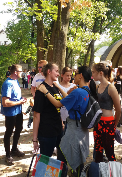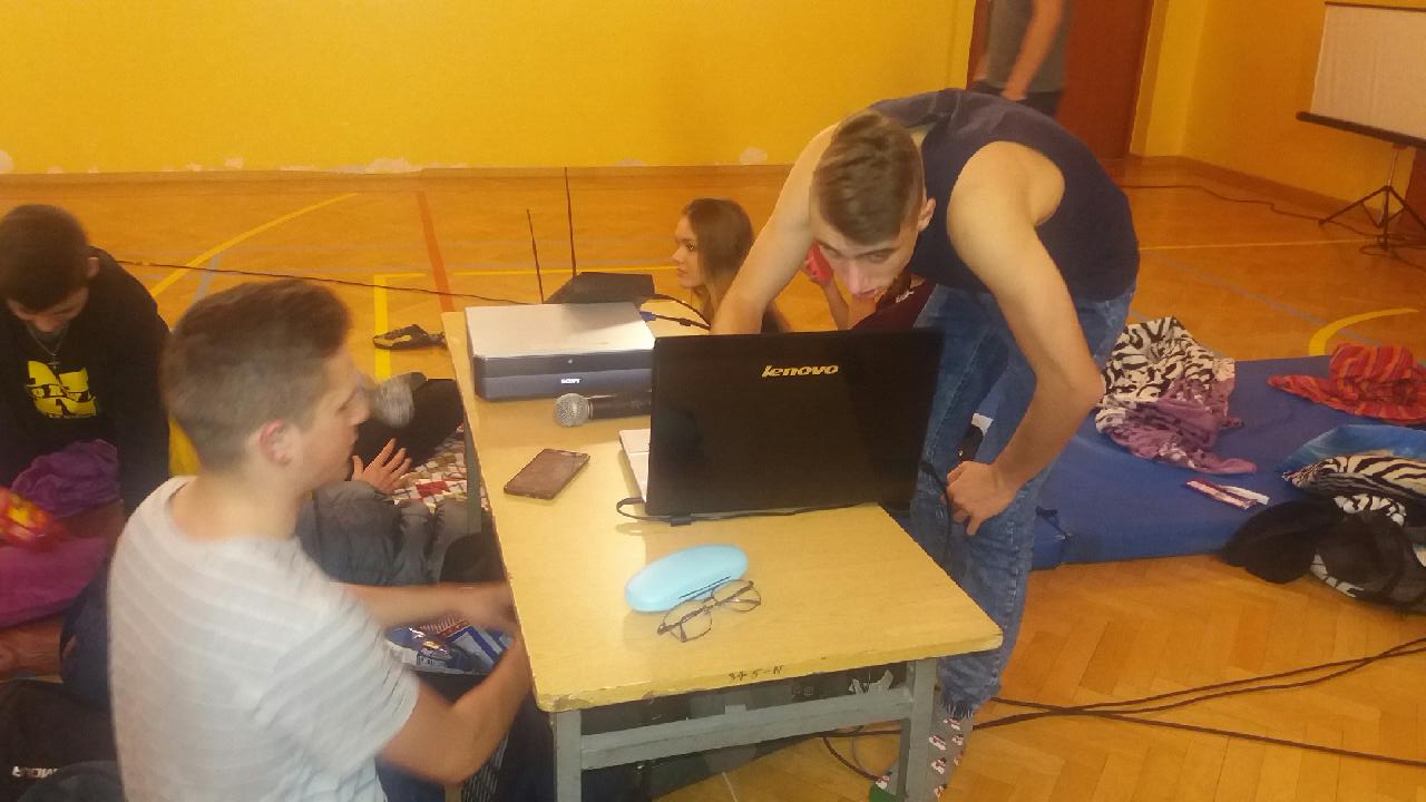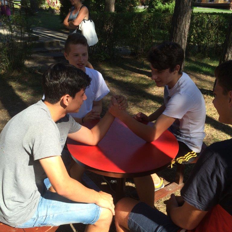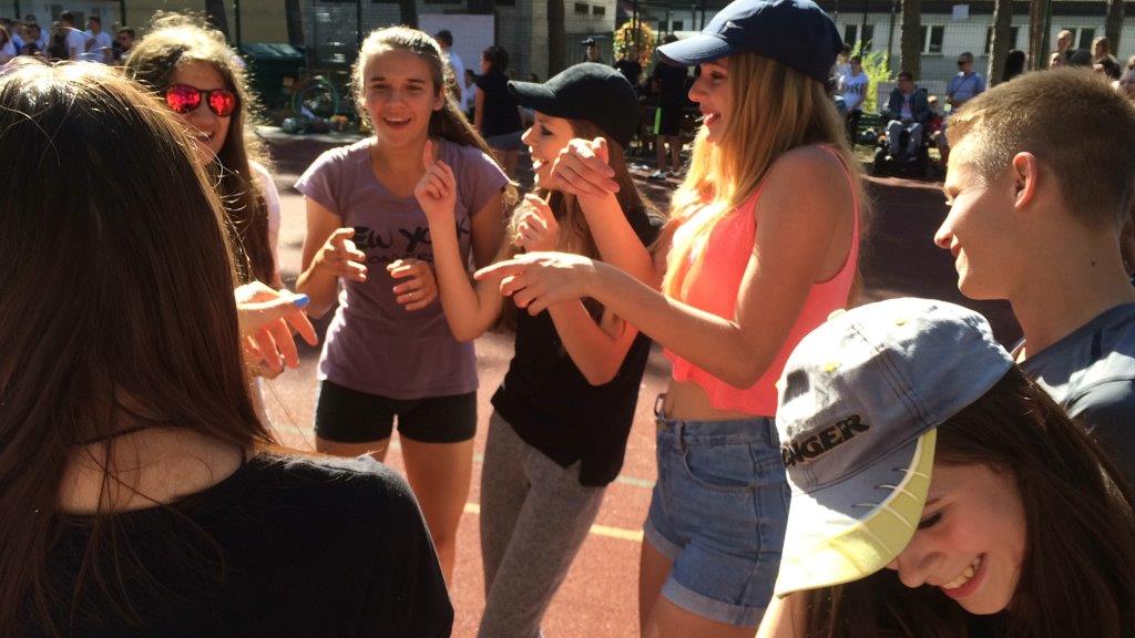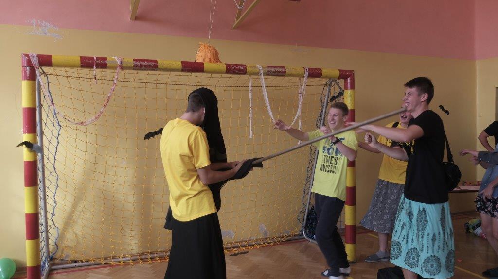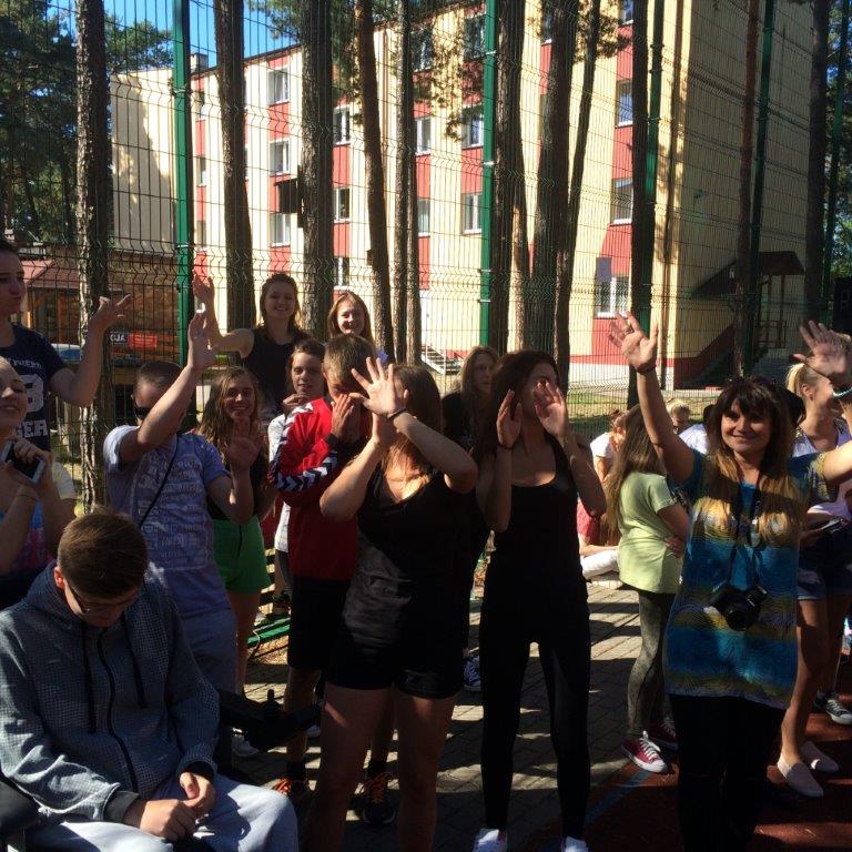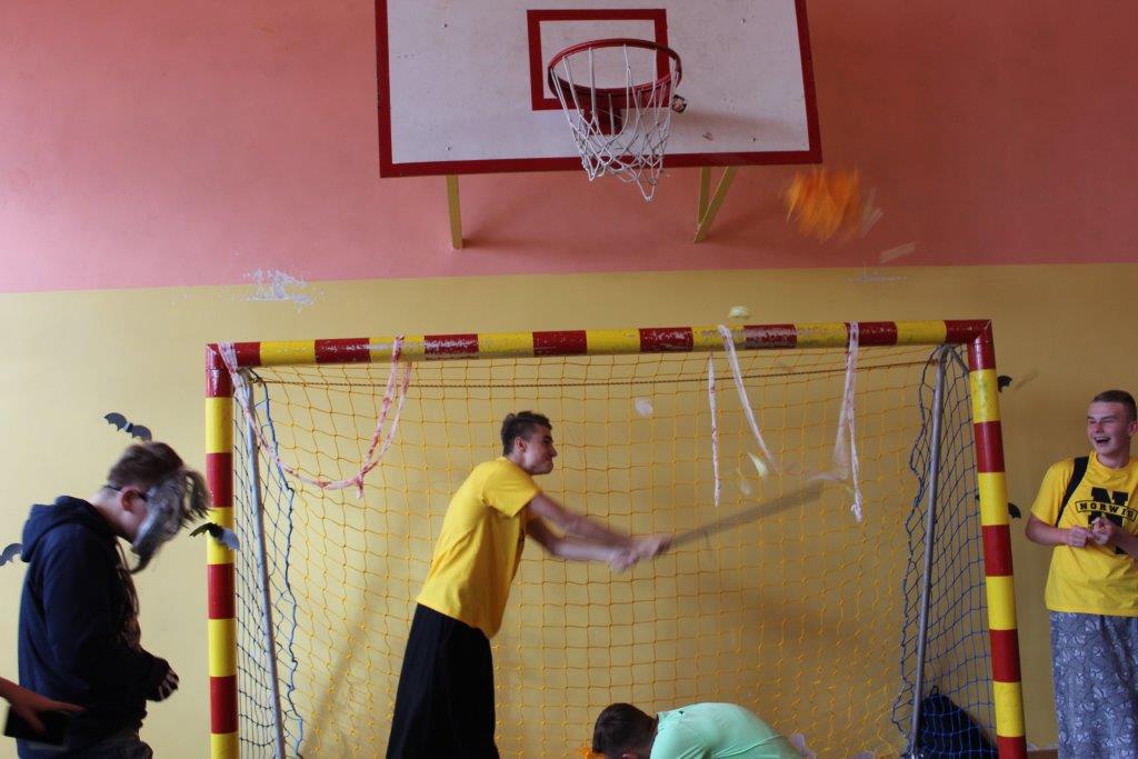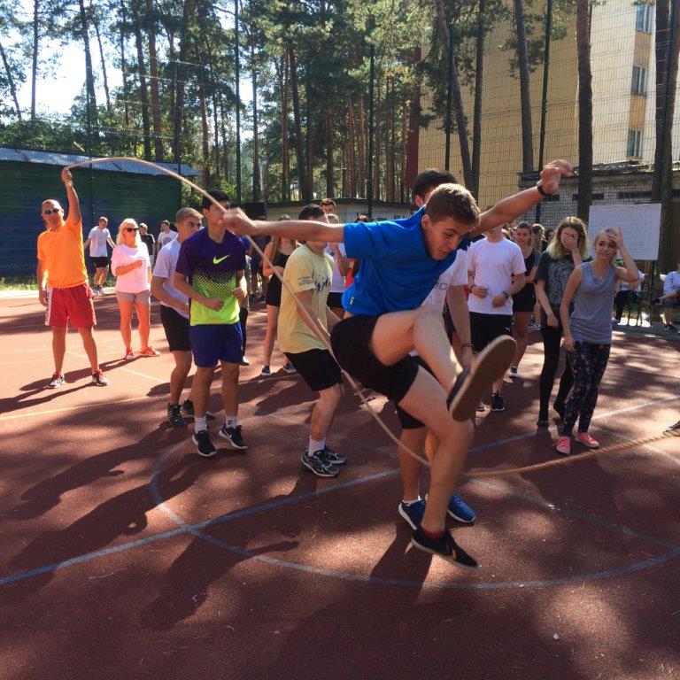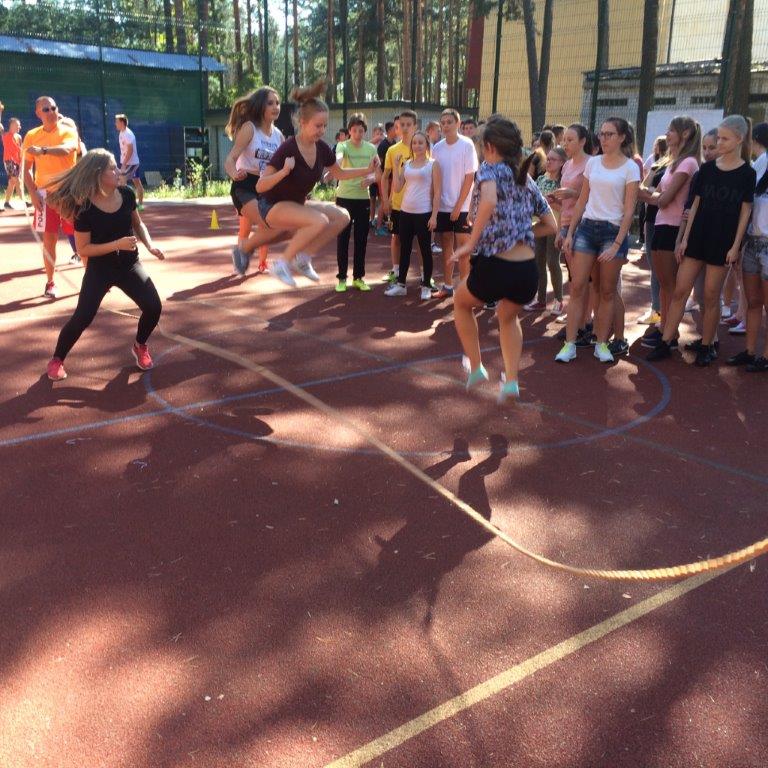 Po przybyciu na miejsce, wszyscy uczestnicy wpadli w wir rozgrywek sportowych zorganizowanych przez nauczycieli WF-u . Przeciąganie liny, sztafeta, „rozgniatanie” baloników to tylko niektóre z konkurencji. Rywalizacji towarzyszyły doping kibiców oraz muzyka i śpiew. Pośród przebojów największą popularnością cieszyła się piosenka Sylwii Grzeszczak „Tamta dziewczyna”, którą odśpiewali chóralnie wszyscy obozowicze. Nie zabrakło również spontanicznego tańca w wykonaniu pierwszaków i ich wychowawców oraz krótkiej lekcji ‘YMCA’. Nawet jeżeli w danym momencie bezpośrednio nie każdy brał udział w rywalizacji sportowej, to z pewnością wszyscy włączali się we wspólną zabawę …