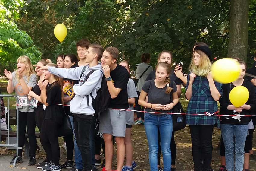 W tym roku naszą szkołę reprezentowała aż 105 osobowa grupa wspierana przez grono kibiców:uczniów, nauczycieli oraz dyrekcję, którzy przed startem licznie gromadzili się przy transparecie i banerze III LO.