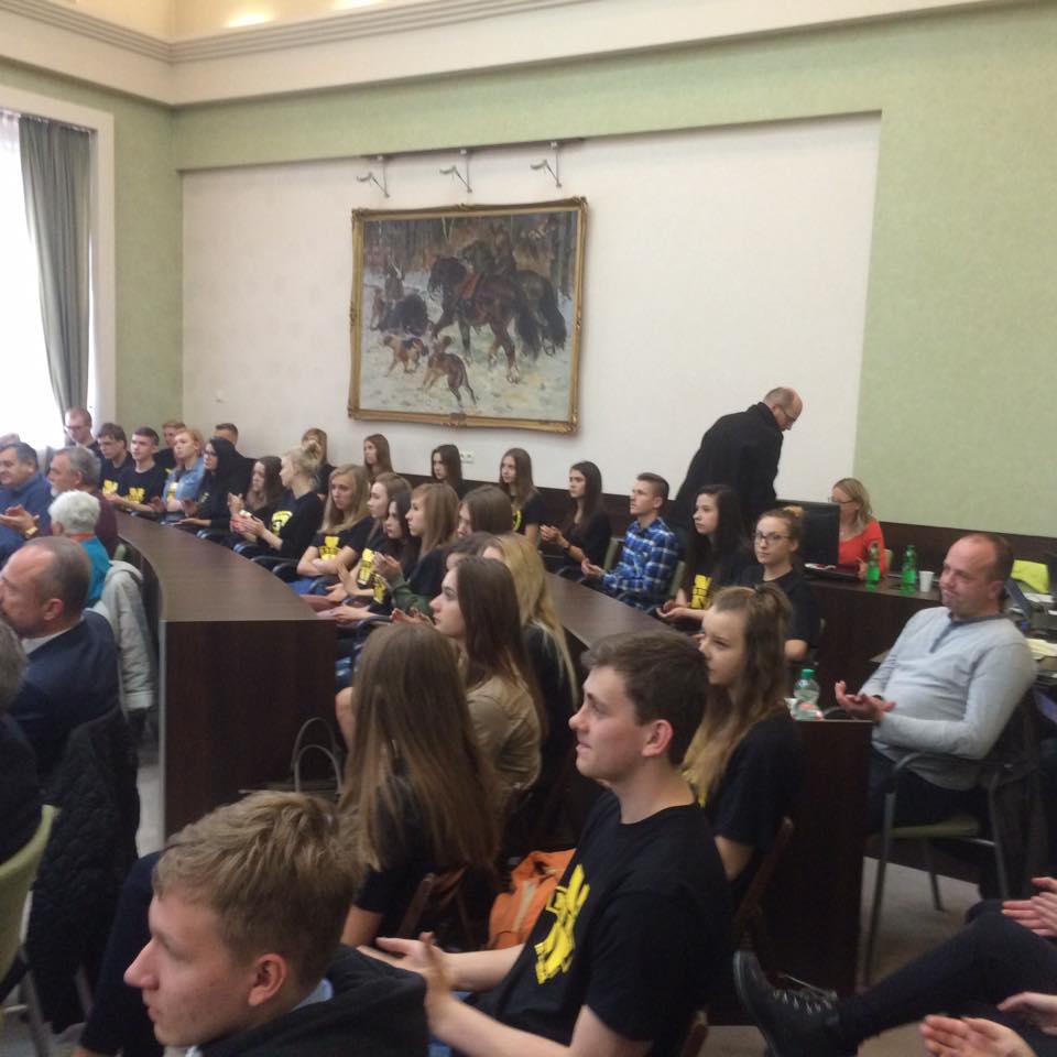 W dniu dzisiejszym, silna Norwidowska reprezentacja pod okiem p. Justyny Kopycińskiej, (w nowych koszulkach szkolnych), uczestniczyła w sesji Rady Miasta Kielce, na której został uhonorowany nasz absolwent - Wojtek Makowski.