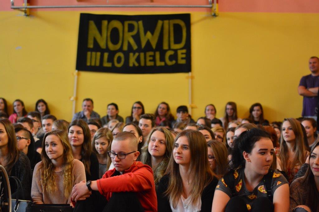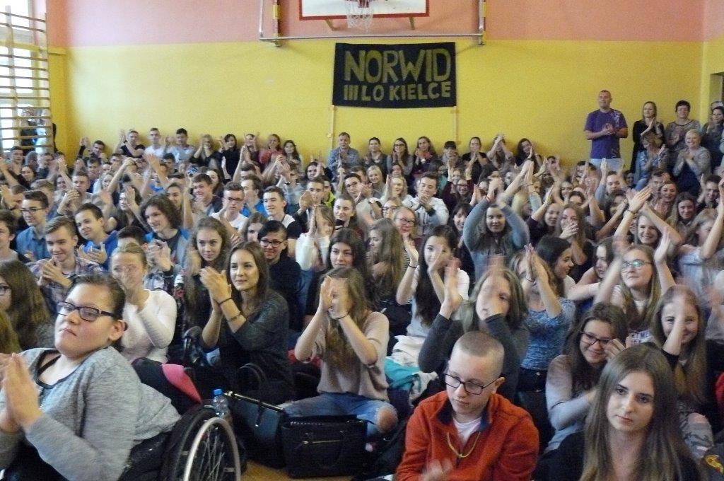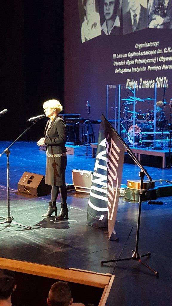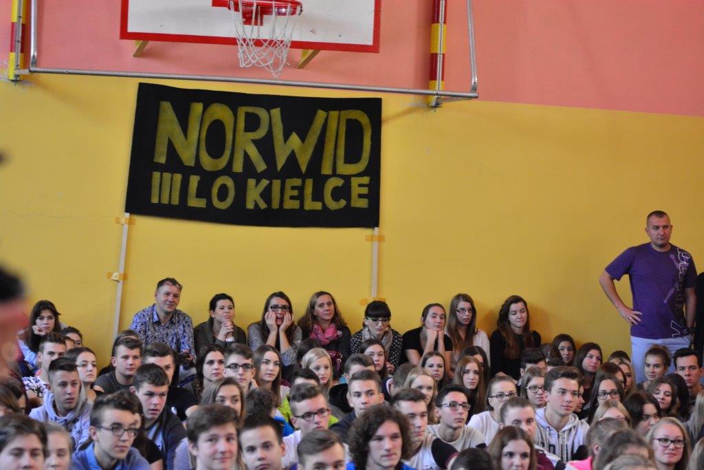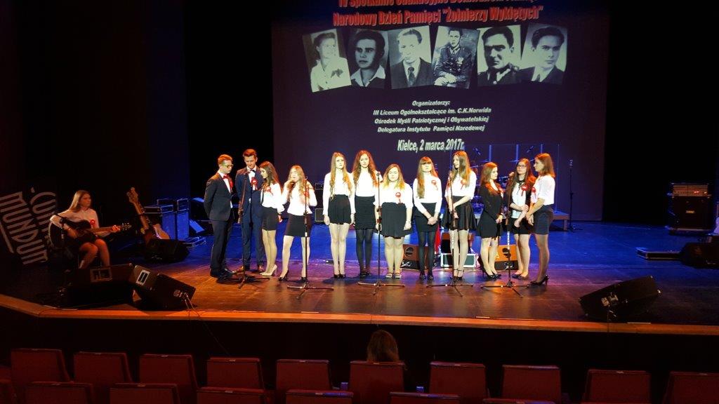 W czwartek 2 marca 2017r., w Kieleckim Centrum Kultury odbyło się IV Spotkanie edukacyjne pt.„Bohaterom Pamięć”, zorganizowane dla uczniów szkół gimnazjalnych i ponadgimnazjalnych. Celem spotkania było propagowanie wiedzy i pamięci o „Żołnierzach Wyklętych” działających na Kielecczyźnie. Uczniowie ze swoimi opiekunami szczelnie zapełnili miejsca całej widowni dużej sceny KCK. Wraz u uczniami uroczystość obserwowali zaproszeni goście: Wicewojewoda Świętokrzyski Pan Andrzej Bętkowski, Przewodniczący Rady Miasta Kielce Pan Dariusz Kozak, przedstawiciel Urzędu do Spraw Kombatantów i Osób Represjonowanych Pani Alicja Marciniak, Naczelnik Delegatury IPN w Kielcach Pani dr Dorota Koczwańska-Kalita. Obecni byli jako organizatorzy Spotkania dyrektorzy naszego liceum: Pan Andrzej Zdeb i Pan Tomasz Zemsta. Sprawnym przebiegiem uroczystości kierowały nauczycielki III LO: Pani Ewa Kolus – pomysłodawczyni całego przedsięwzięcia i Pani Edyta Kolus. Uczniowie wysłuchali wykładów: Naczelnika Delegatury Instytutu Pamięci Narodowej w Kielcach Pani dr Doroty Koczwańskiej-Kality, która w przystępny sposób przybliżyła zebranym ideę i sens pamięci o bohaterach antykomunistycznego podziemia niepodległościowego oraz dr Marka Maciągowskiego z OMPiO, który przybliżył sylwetkę Stanisława Grabdy ps. „Bem”, jednego z bohaterów podziemia na Kielecczyźnie.Uroczystościom towarzyszyły pieśni patriotyczne w wykonaniu uczniów III LO. Podczas Spotkania nagrodzeni zostali zwycięzcy IV Wojewódzkiego Konkursu ,,Żołnierze Wyklęci. Pamięci Zapomnianych Bohaterów Naszego Regionu”, którego pomysłodawcą jest III LO im.C.K.Norwida. Spotkanie to było lekcją historii dla młodego pokolenia Polaków o bohaterach powojennego podziemia oraz manifestacją patriotyczną upamiętniającą tych, którzy po II wojnie światowej stawiali opór sowietyzacji Polski. Przybliżyła ona młodzieży ten smutny, przez lata spychany na margines zapomnienia, aspekt polskiej historii. Komunistyczna propaganda przez lata próbowała zniesławić i wymazać pamięć o tych, którzy dla wolności swojego kraju potrafili zapłacić najwyższą cenę – życie.Na koniec, dla wszystkich uczestników Spotkania zagrał zespół Contra Mundum – grający repertuar do słów polskiej poezji patriotycznej i wojennej. W swojej twórczości sławi bohaterów narodowych i żołnierzy podziemia antyhitlerowskiego i antykomunistycznego. Godzinny koncert został przez młodzież przyjęty entuzjastycznie, a brawurowe wykonania patriotycznych pieśni wzbudziły zadumę i wzruszenie.