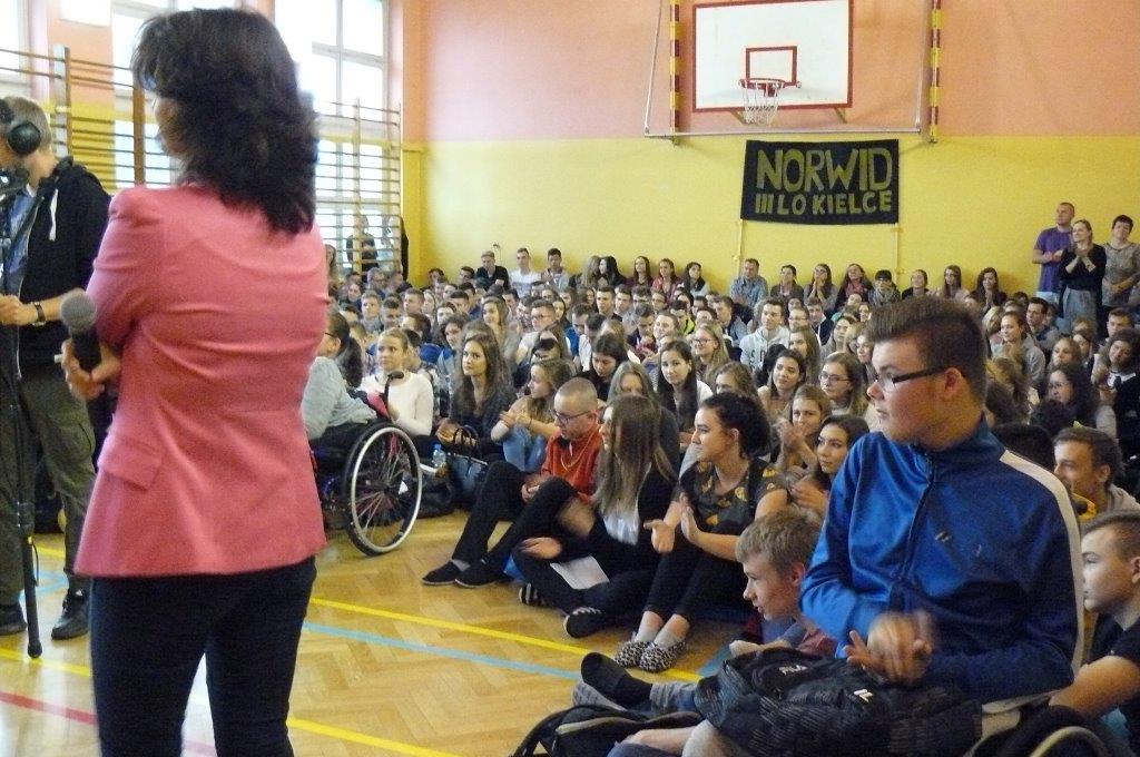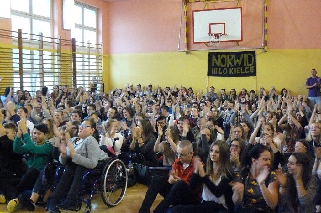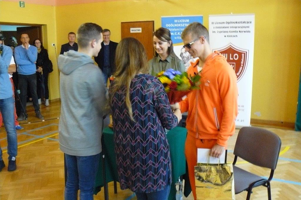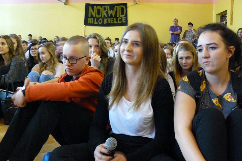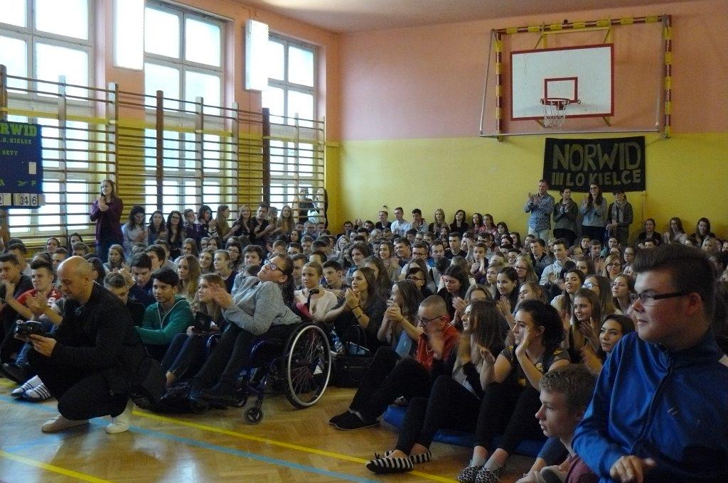 W czwartek 2 marca 2017r., w Kieleckim Centrum Kultury odbyło się IV Spotkanie edukacyjne pt.„Bohaterom Pamięć”, zorganizowane dla uczniów szkół gimnazjalnych i ponadgimnazjalnych. Celem spotkania było propagowanie wiedzy i pamięci o „Żołnierzach Wyklętych” działających na Kielecczyźnie. Uczniowie ze swoimi opiekunami szczelnie zapełnili miejsca całej widowni dużej sceny KCK. Wraz u uczniami uroczystość obserwowali zaproszeni goście: Wicewojewoda Świętokrzyski Pan Andrzej Bętkowski, Przewodniczący Rady Miasta Kielce Pan Dariusz Kozak, przedstawiciel Urzędu do Spraw Kombatantów i Osób Represjonowanych Pani Alicja Marciniak, Naczelnik Delegatury IPN w Kielcach Pani dr Dorota Koczwańska-Kalita. Obecni byli jako organizatorzy Spotkania dyrektorzy naszego liceum: Pan Andrzej Zdeb i Pan Tomasz Zemsta. Sprawnym przebiegiem uroczystości kierowały nauczycielki III LO: Pani Ewa Kolus – pomysłodawczyni całego przedsięwzięcia i Pani Edyta Kolus. Uczniowie wysłuchali wykładów: Naczelnika Delegatury Instytutu Pamięci Narodowej w Kielcach Pani dr Doroty Koczwańskiej-Kality, która w przystępny sposób przybliżyła zebranym ideę i sens pamięci o bohaterach antykomunistycznego podziemia niepodległościowego oraz dr Marka Maciągowskiego z OMPiO, który przybliżył sylwetkę Stanisława Grabdy ps. „Bem”, jednego z bohaterów podziemia na Kielecczyźnie.Uroczystościom towarzyszyły pieśni patriotyczne w wykonaniu uczniów III LO. Podczas Spotkania nagrodzeni zostali zwycięzcy IV Wojewódzkiego Konkursu ,,Żołnierze Wyklęci. Pamięci Zapomnianych Bohaterów Naszego Regionu”, którego pomysłodawcą jest III LO im.C.K.Norwida. Spotkanie to było lekcją historii dla młodego pokolenia Polaków o bohaterach powojennego podziemia oraz manifestacją patriotyczną upamiętniającą tych, którzy po II wojnie światowej stawiali opór sowietyzacji Polski. Przybliżyła ona młodzieży ten smutny, przez lata spychany na margines zapomnienia, aspekt polskiej historii. Komunistyczna propaganda przez lata próbowała zniesławić i wymazać pamięć o tych, którzy dla wolności swojego kraju potrafili zapłacić najwyższą cenę – życie.Na koniec, dla wszystkich uczestników Spotkania zagrał zespół Contra Mundum – grający repertuar do słów polskiej poezji patriotycznej i wojennej. W swojej twórczości sławi bohaterów narodowych i żołnierzy podziemia antyhitlerowskiego i antykomunistycznego. Godzinny koncert został przez młodzież przyjęty entuzjastycznie, a brawurowe wykonania patriotycznych pieśni wzbudziły zadumę i wzruszenie.