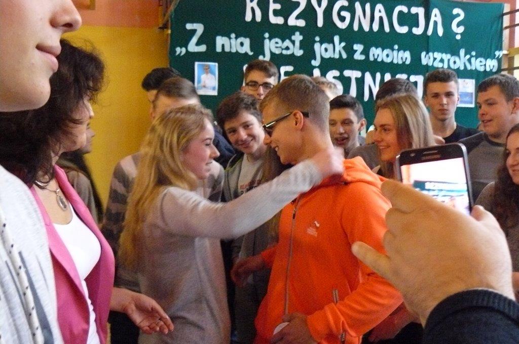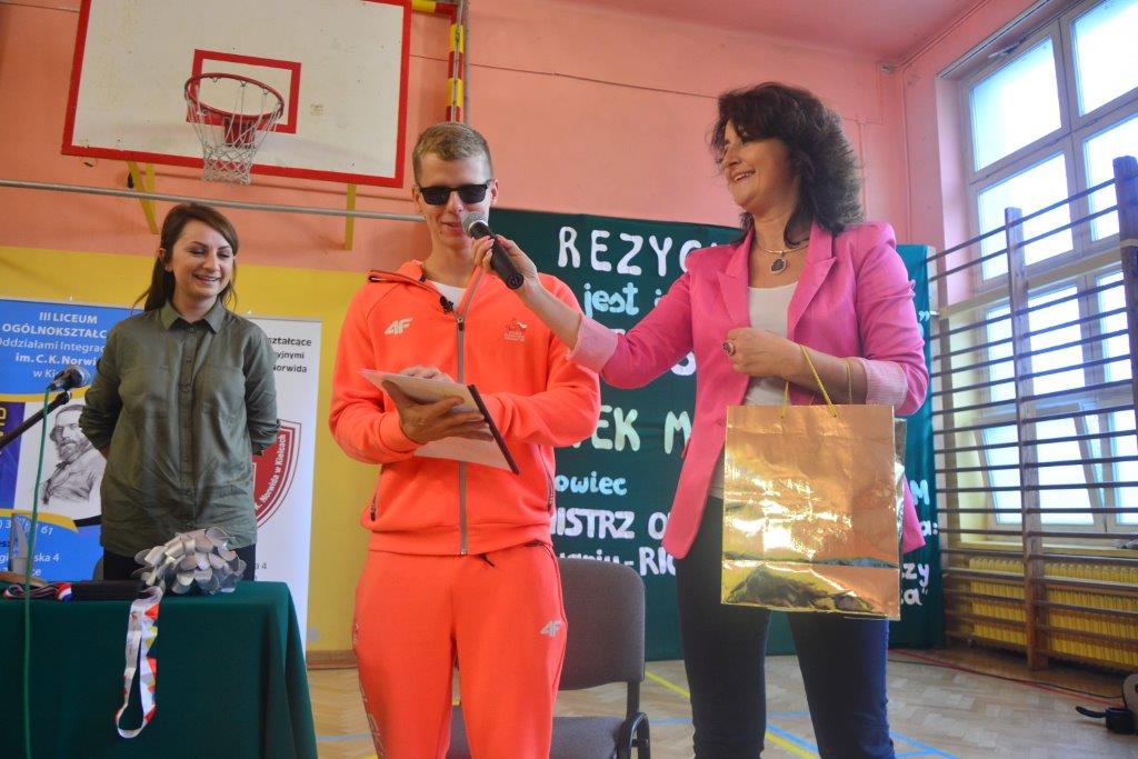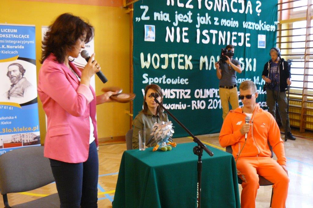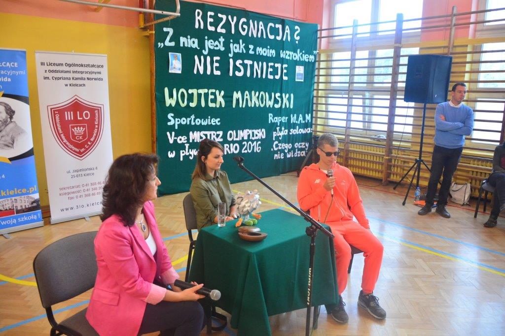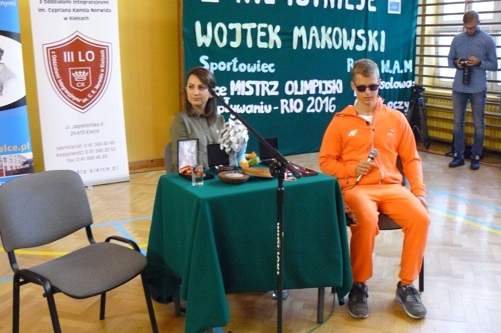 Sportowiec i miłośnik sportu, kibic „Korony” i „Vive” Tauron Kielce, raper, obdarzony niezwykłym poczuciem humoru, wrażliwy, niebywale inteligentny, optymista, jak podają różne media „wprost zaraża pozytywnym spojrzeniem na świat”,wspaniały uczeń. Wojtek Makowski. Człowiek, który niepełnosprawności na pewno nie kojarzy z żadnymi problemami czy ograniczeniami. Absolwent naszej szkoły: matura 2011. Student zarządzania na Uniwersytecie Warszawskim.Wojtek udowadniał nam wszystkim, że „nie móc” to tylko znaczy „nie chcieć”. Bardzo lubiany i podziwiany przez kolegów, uwielbiany przez nauczycieli, zawsze garnął się do udziału we wszystkich szkolnych wydarzeniach. Wspaniale czuje się w literaturze, nic więc dziwnego, że sam zaczął tworzyć teksty piosenek. Nagrywa też teledyski. Wszechstronny, a przy tym niebywale skromny. Cudowny gość.