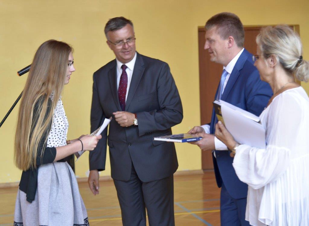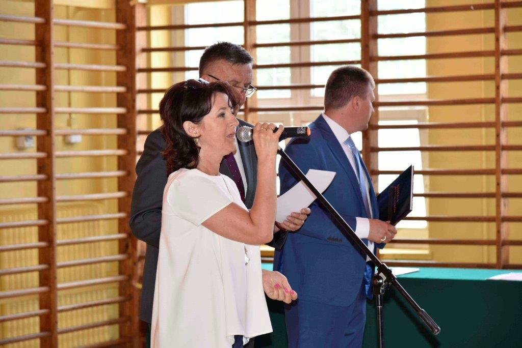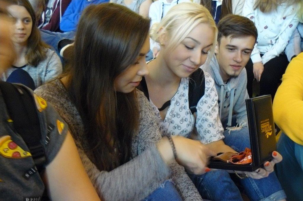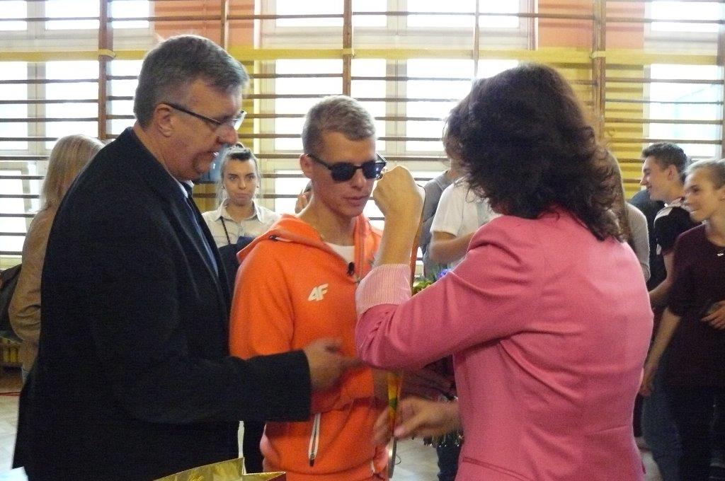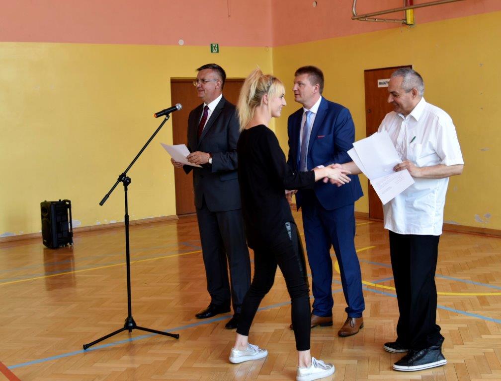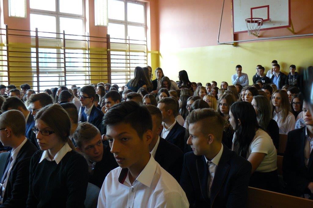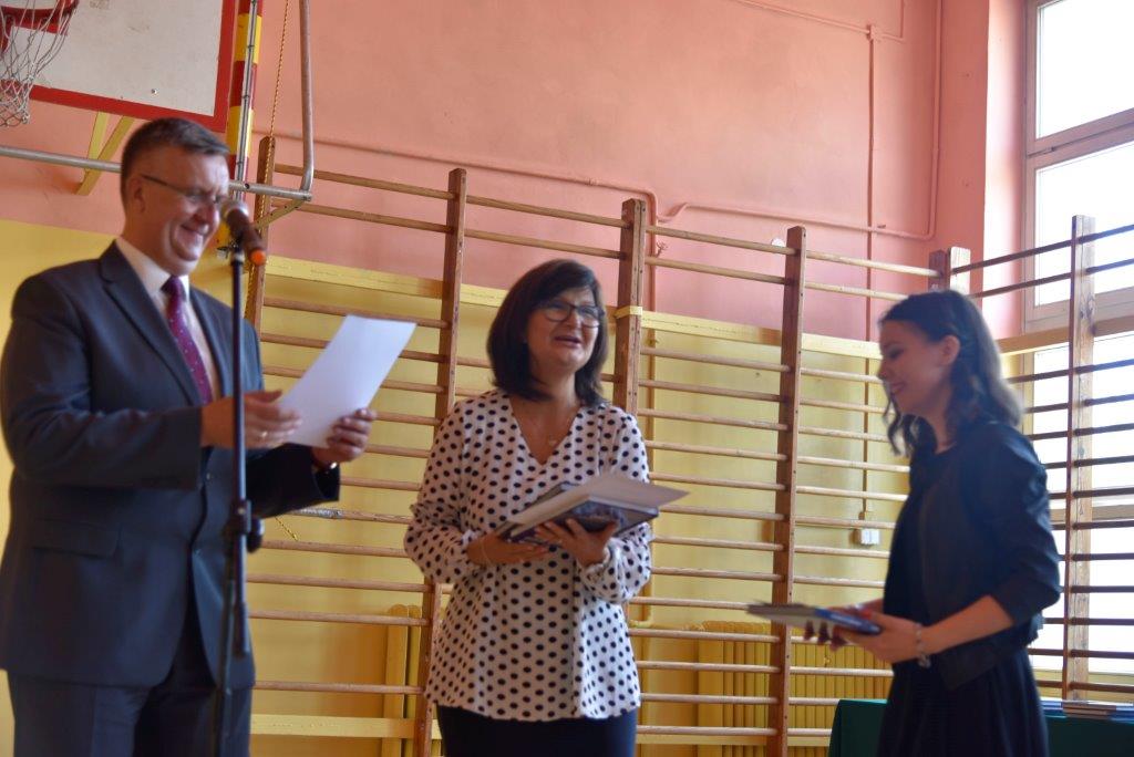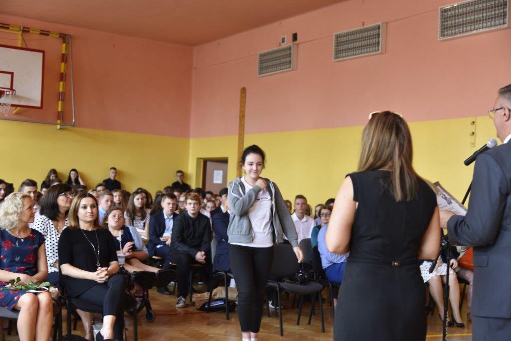 Na sali gimnastycznej, najlepszym uczniom, zostały wręczone wyróżnienia za najlepsze wyniki w nauce.
