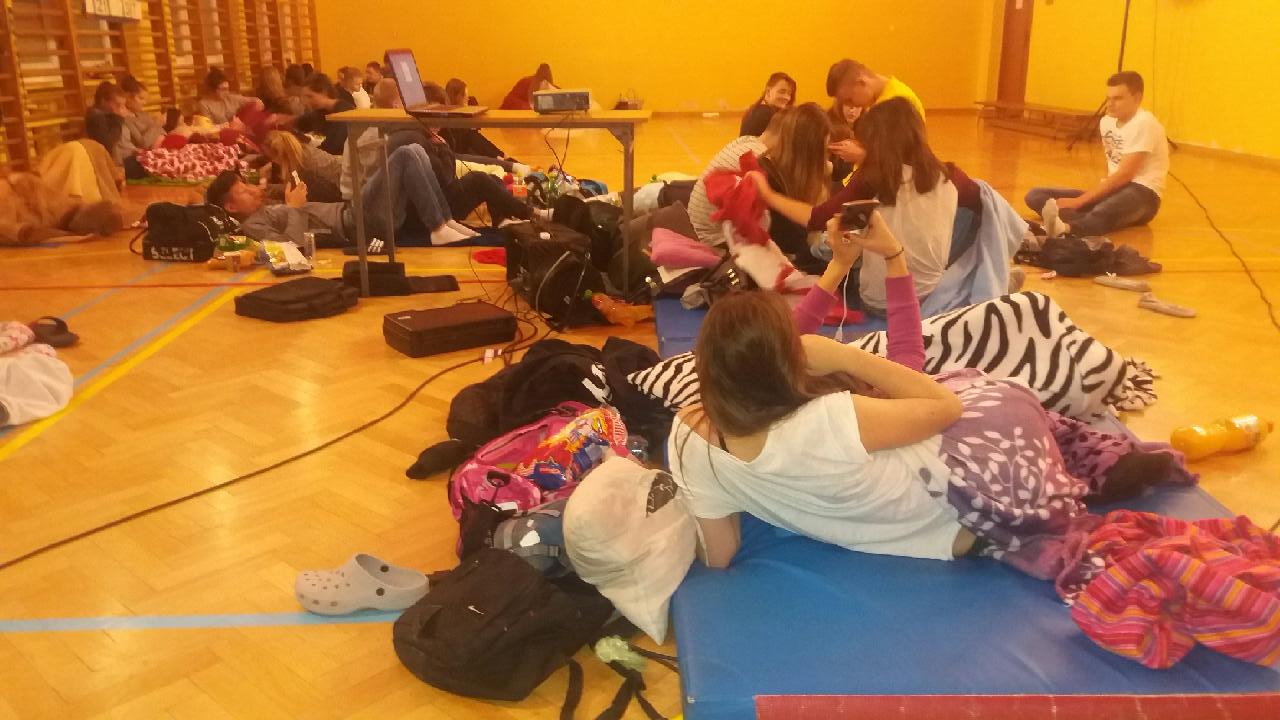 We wczesnych godzinach rannych, zaopatrzeni w tony prowiantu i spory ładunek dobrego humoru, korzystając z wyjątkowo pięknej pogody, pierwszoklasiści wyruszyli do Sielpi. Już w drodze niektóre z wiozących ich autokarów rozbrzmiewały chóralnymi śpiewami (a lista przebojów była naprawdę bardzo urozmaicona :) ).