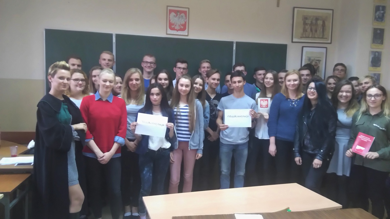 18 października 2016r. w klasie II C o profilu prawniczym odbyła się lekcja, prowadzona przez Panią adwokat Magdalenę Nadgowską - Makarewicz. Organizacja zajęć związana była z trwającym Tygodniem Konstytucyjnym, organizowanym przez Stowarzyszenie im. prof. Zbigniewa Hołdy,do którego już po raz drugi przystąpiła nasza szkoła. Lekcja dotyczyła praw i wolności obywatelskich zapisanych w Konstytucjioraz tego jak obywatele mogą bronić swoich praw. Była to także okazja do spotkaniaz przedstawicielką zawodu prawniczego w celu poznania jego specyfiki, organizacji i funkcjonowania wymiaru sprawiedliwości oraz procesu karnego.