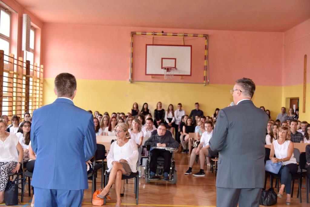 Podczas uroczystych apeli (dla klas II i III oraz dla pierwszoklasistów) dyrektor - Pan Andrzej Zdeb – dokonał prezentacji wicedyrektora szkoły – Pana Tomasza Zemsty, a także grona pedagogicznego, przypomniał realizowaną przez nas ideęintegracji oraz zarysował organizację najbliższych dziesięciu miesięcy nauki.