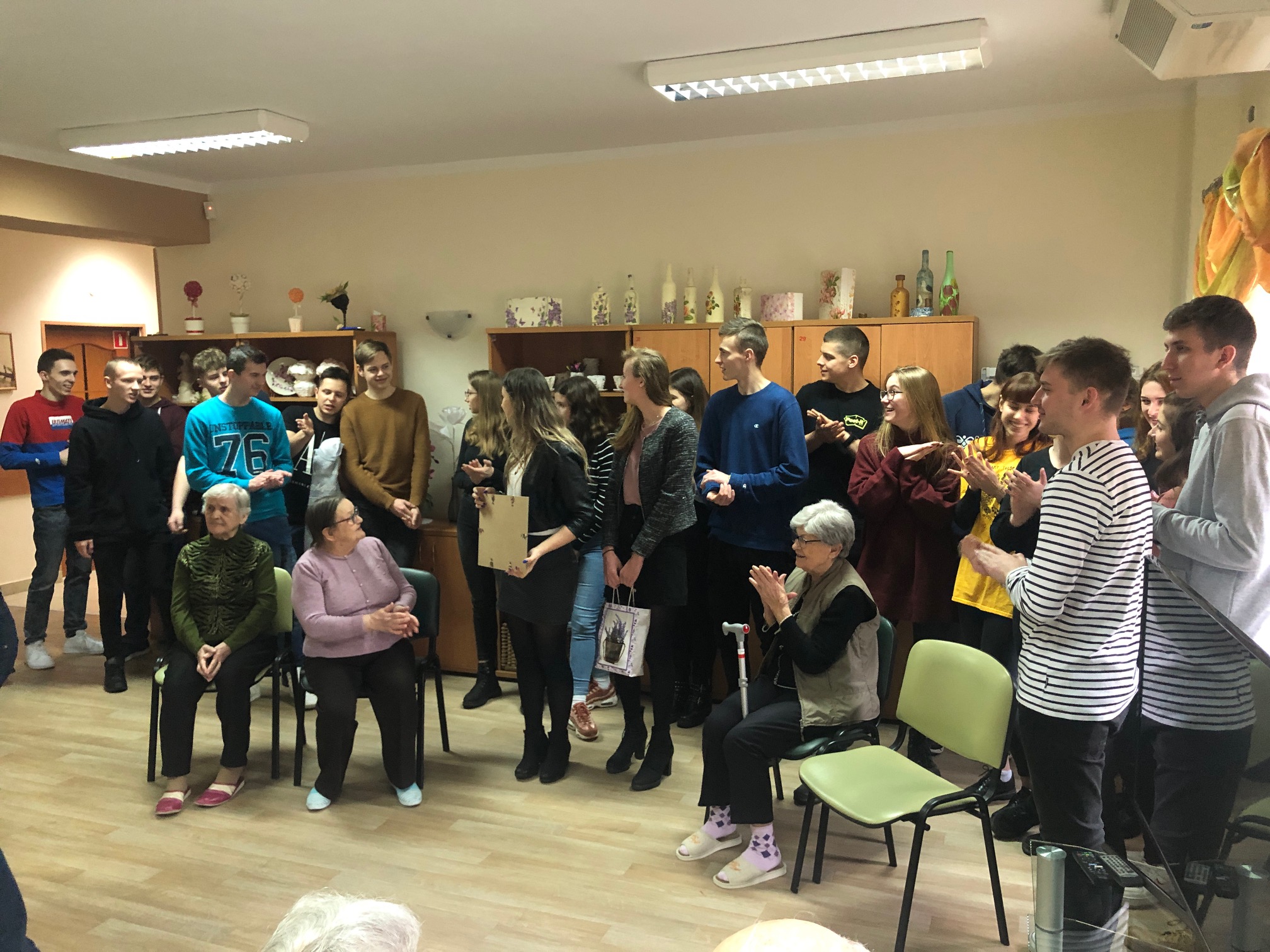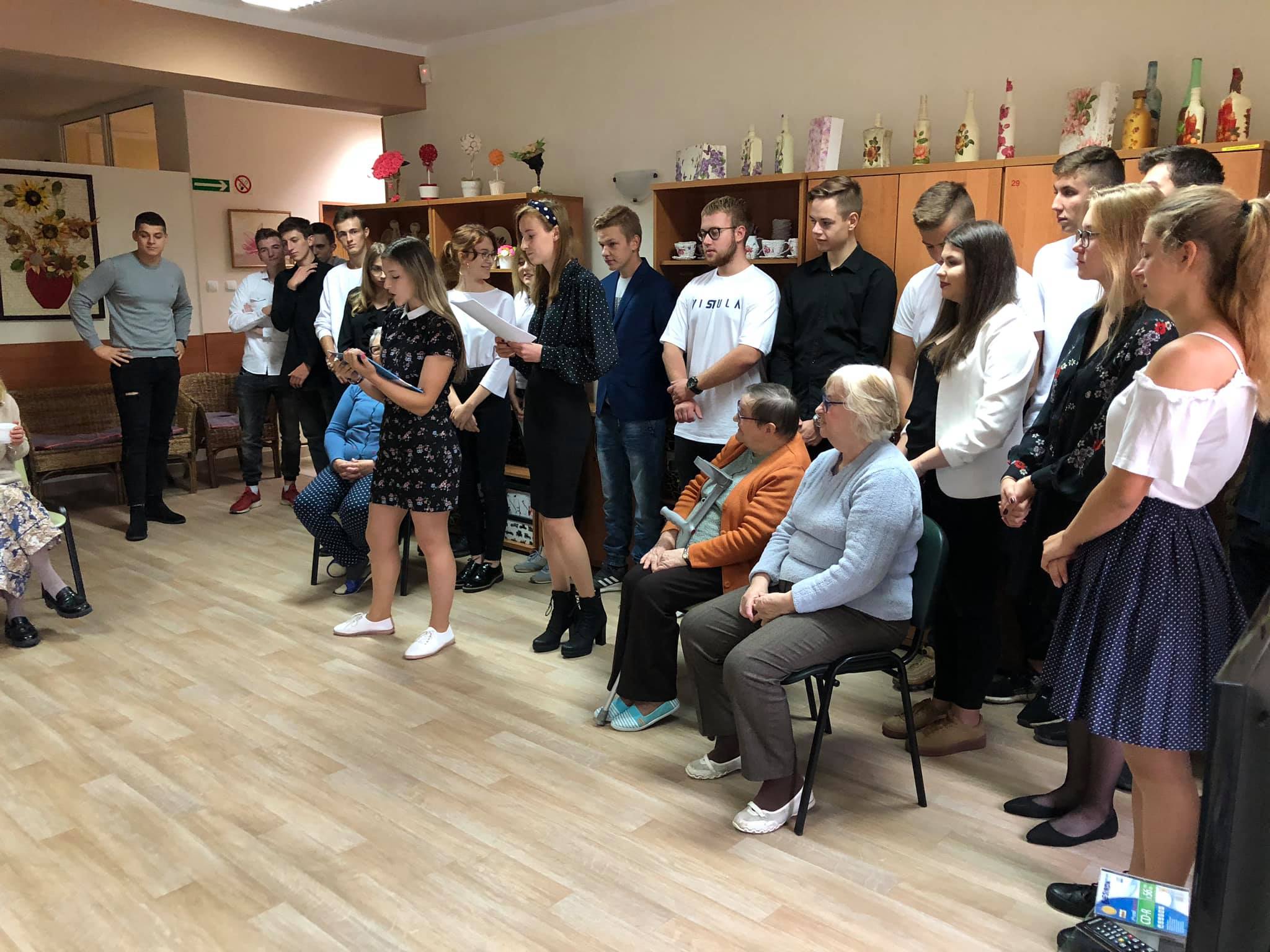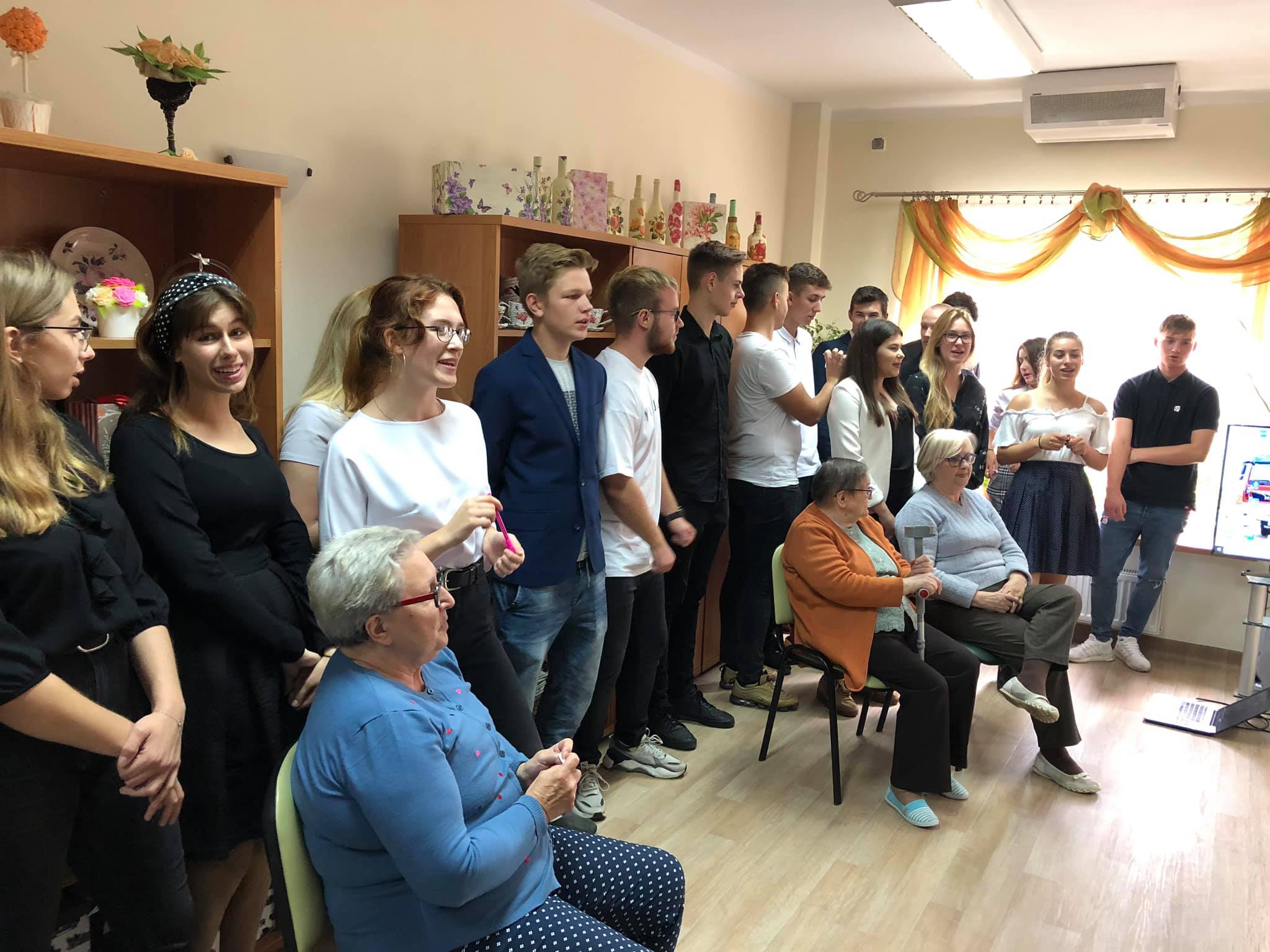 Uczniowie przygotowali turniej wiedzy o roku 1974 w którym nie brakowało uśmiechu i mnóstwa ciekawostek. Ta wizyta była wyjątkowa ponieważ uczniowie wybrali się tam ostatni raz. Nie brakowało podziękowań oraz wieku wzruszeń. Bardzo dziękuję uczniom tej klasy za wspaniały trzy-letni wolontariat oraz pani za zarażanie młodzieży chęcią pełnienia wolontariatu.
