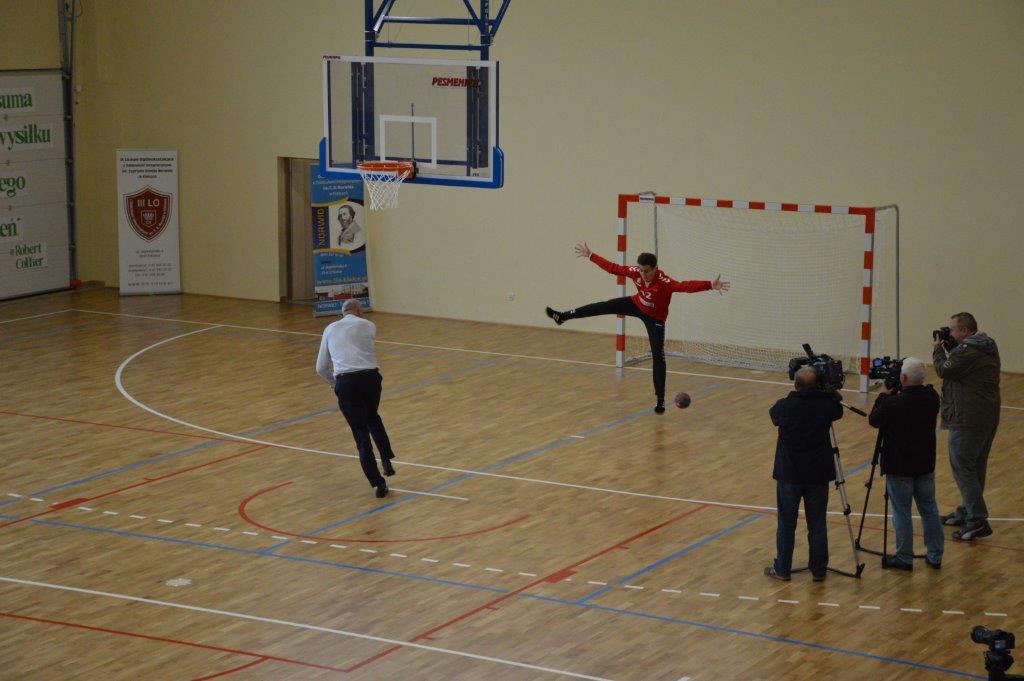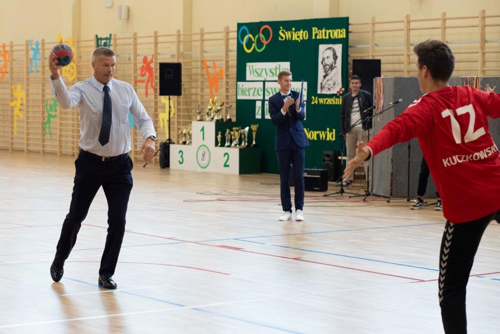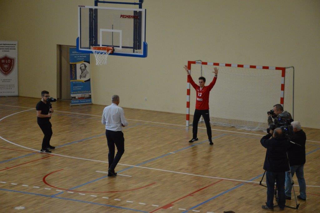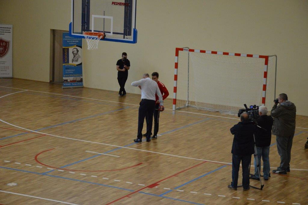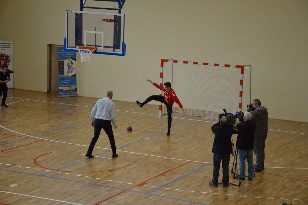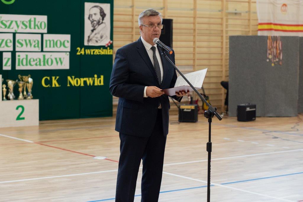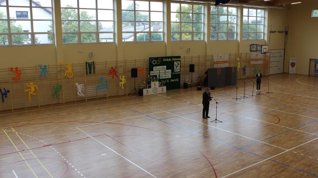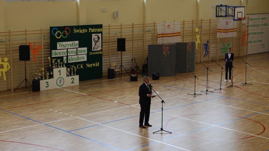 „Ruszaj się! TERAZ JUŻ MASZ GDZIE!” brzmiały przed chwilą słowa piosenki mobilizującej społeczność liceum Norwida do aktywności fizycznej. TERAZ JUŻ MASZ GDZIE, bo właśnie jesteśmy świadkami historycznego w dziejach naszej szkoły wydarzenia – Otwarcia Hali Sportowej” – tak, chwilę później rozpoczął swe wystąpienie Dyrektor Andrzej Zdeb. Przywitawszy przybyłych gości, na czele z Prezydentem Kielc Bogdanem Wentą, opowiedział o szkole oraz przedstawił historię powstania hali sportowej. Wskazywał na trudności, ale też podkreślał sukcesy uczniów Norwida osiągane mimo ograniczonych warunków do odbywania treningów. Pan dyrektor podziękował serdecznie wszystkim, którzy w jakikolwiek sposób przyczynili się do powstania obiektu ufundowanego w całości ze środków miasta. Kończąc wyraził nadzieję, że żaden uczeń, który będzie miał możliwość kiedykolwiek w przyszłości korzystać z tego obiektu, nie zaprzepaści szansy na pełny sportowy rozwój, stworzonej dzięki wybudowaniu tej pięknej hali. Kolejnym mówcą był Prezydent Kielc, który wskazał na wagę sportu w życiu każdego młodego człowieka. Jako bardzo istotną określił również integrację