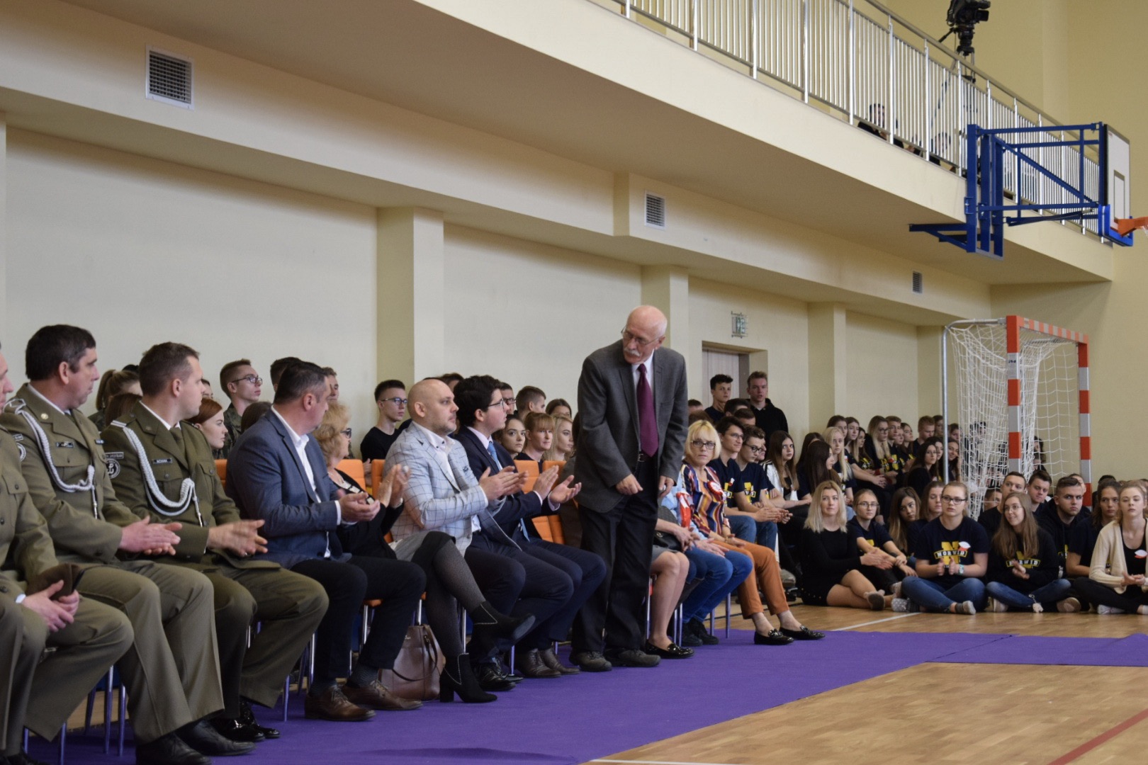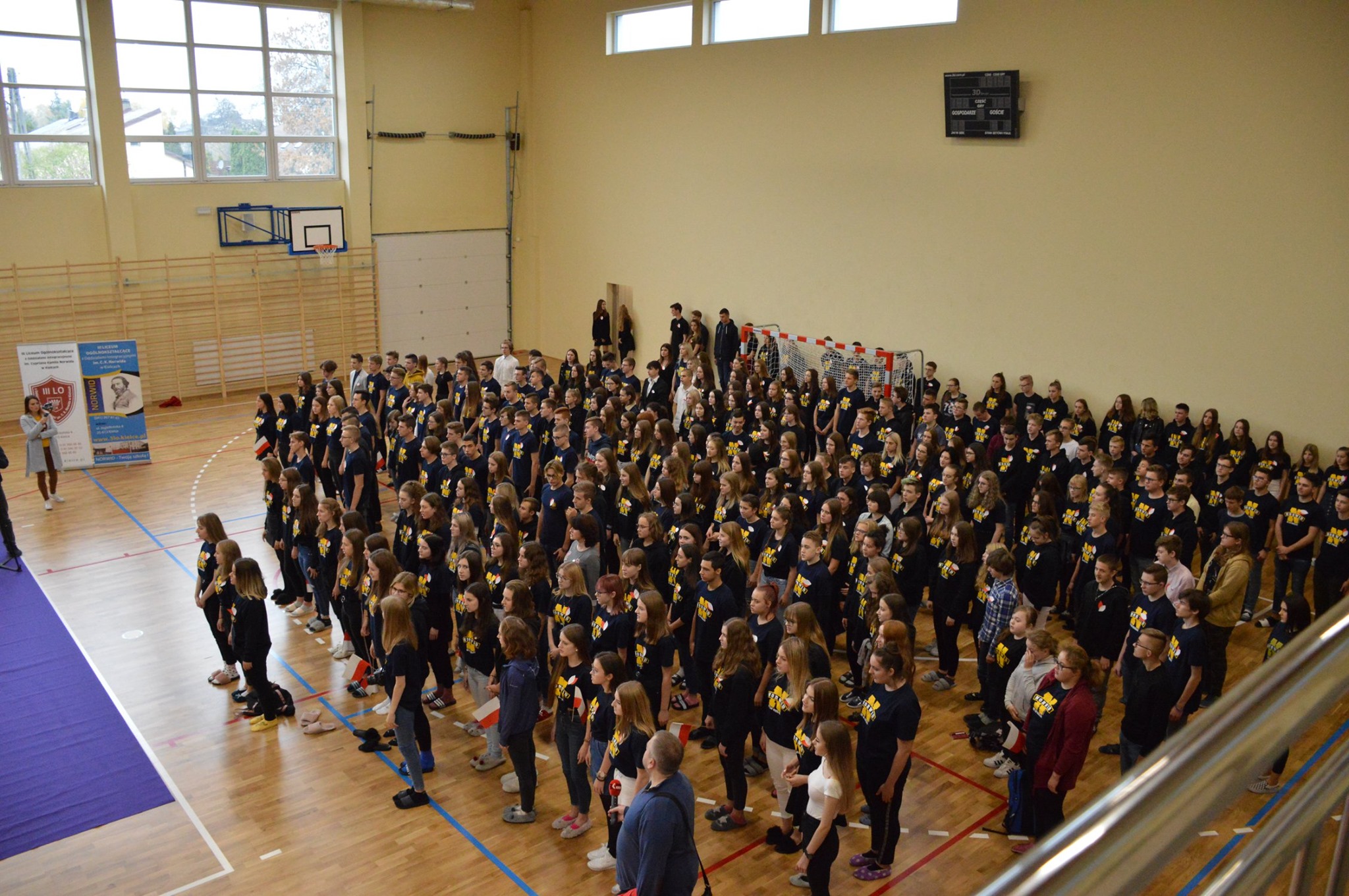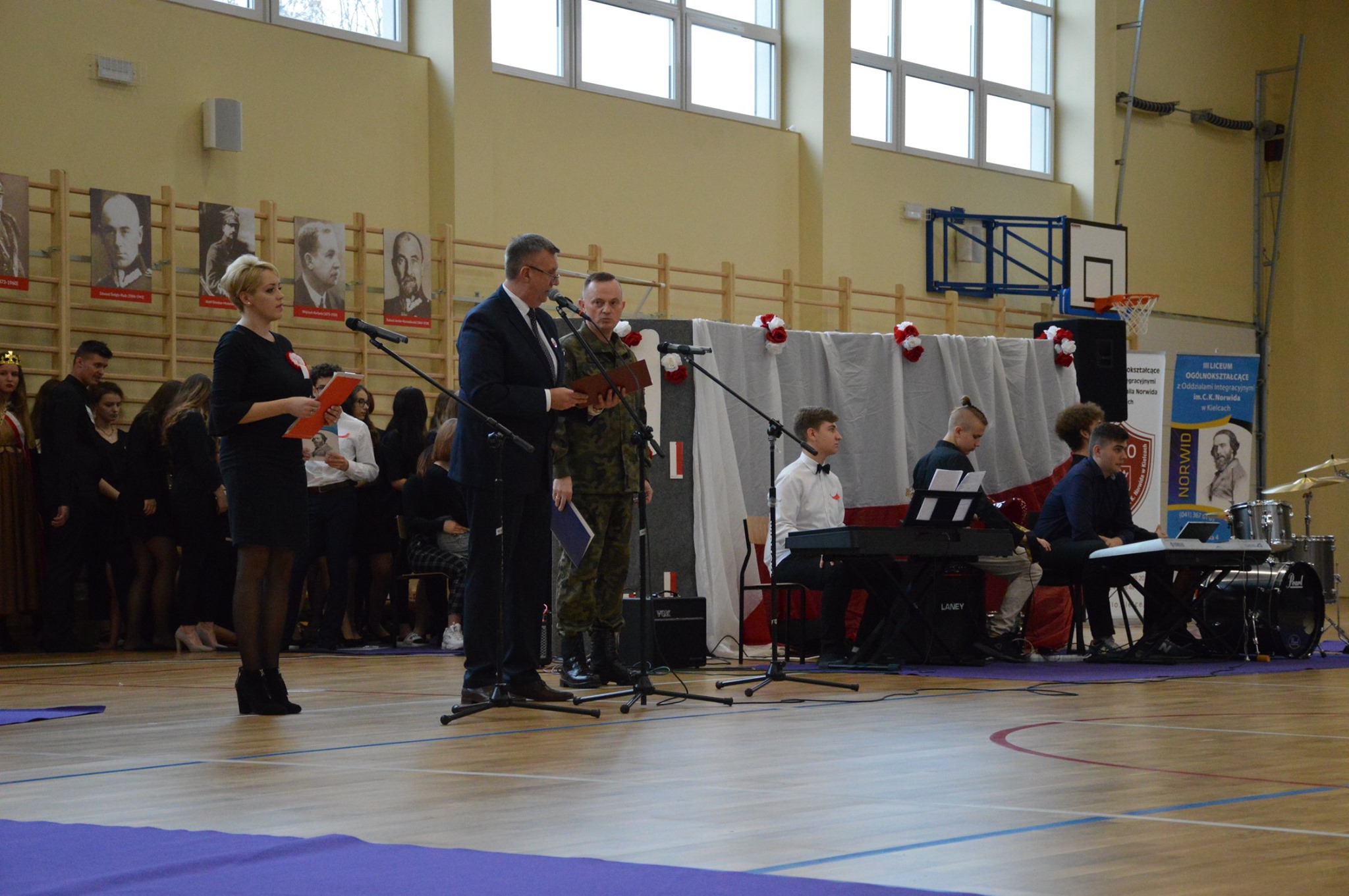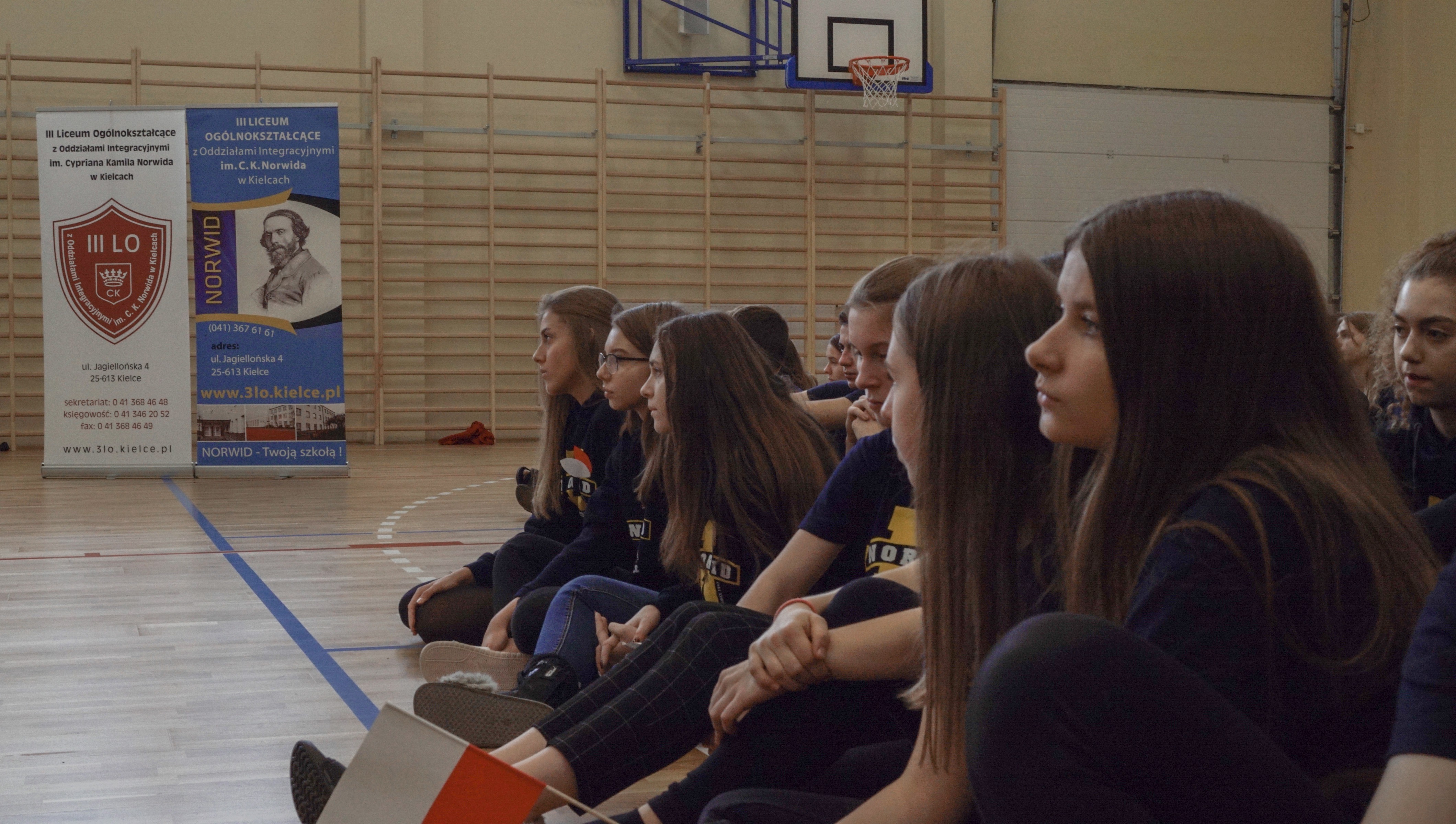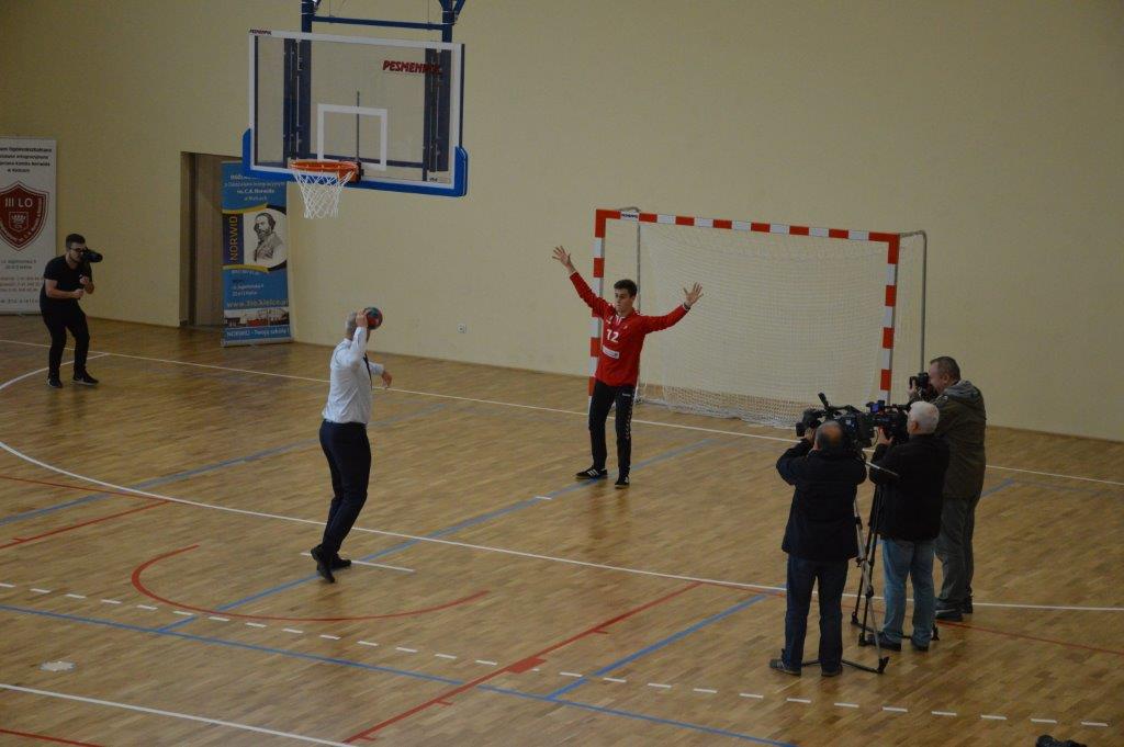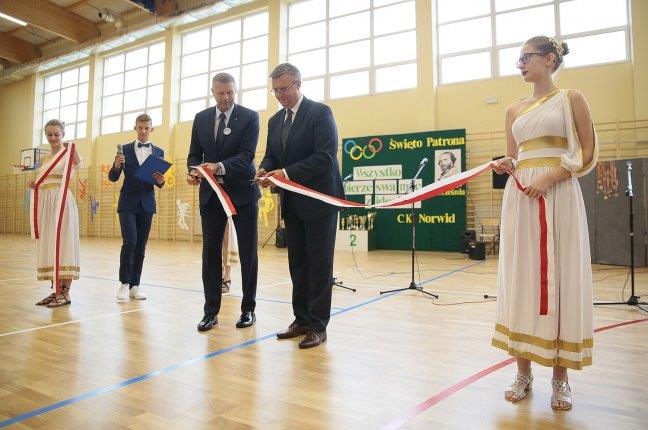 „Ruszaj się! TERAZ JUŻ MASZ GDZIE!” brzmiały przed chwilą słowa piosenki mobilizującej społeczność liceum Norwida do aktywności fizycznej. TERAZ JUŻ MASZ GDZIE, bo właśnie jesteśmy świadkami historycznego w dziejach naszej szkoły wydarzenia – Otwarcia Hali Sportowej” – tak, chwilę później rozpoczął swe wystąpienie Dyrektor Andrzej Zdeb. Przywitawszy przybyłych gości, na czele z Prezydentem Kielc Bogdanem Wentą, opowiedział o szkole oraz przedstawił historię powstania hali sportowej. Wskazywał na trudności, ale też podkreślał sukcesy uczniów Norwida osiągane mimo ograniczonych warunków do odbywania treningów. Pan dyrektor podziękował serdecznie wszystkim, którzy w jakikolwiek sposób przyczynili się do powstania obiektu ufundowanego w całości ze środków miasta. Kończąc wyraził nadzieję, że żaden uczeń, który będzie miał możliwość kiedykolwiek w przyszłości korzystać z tego obiektu, nie zaprzepaści szansy na pełny sportowy rozwój, stworzonej dzięki wybudowaniu tej pięknej hali. Kolejnym mówcą był Prezydent Kielc, który wskazał na wagę sportu w życiu każdego młodego człowieka. Jako bardzo istotną określił również integrację