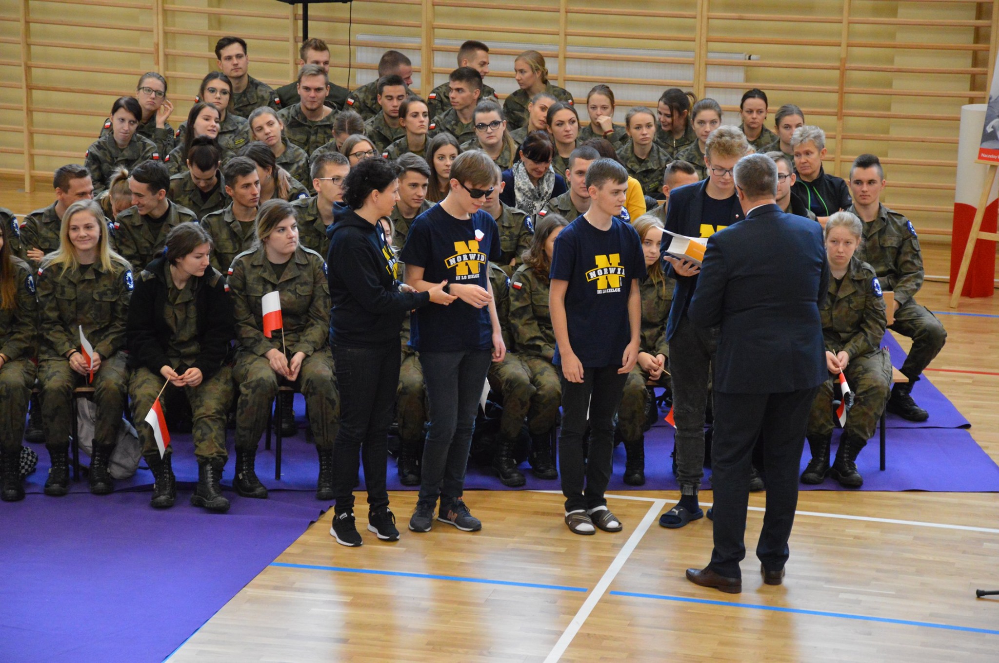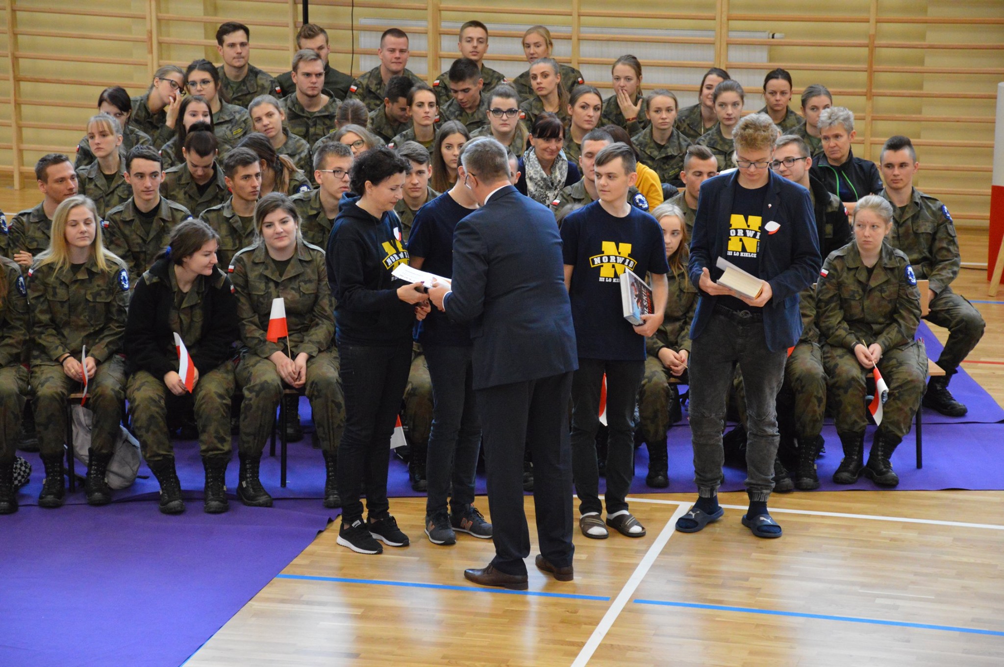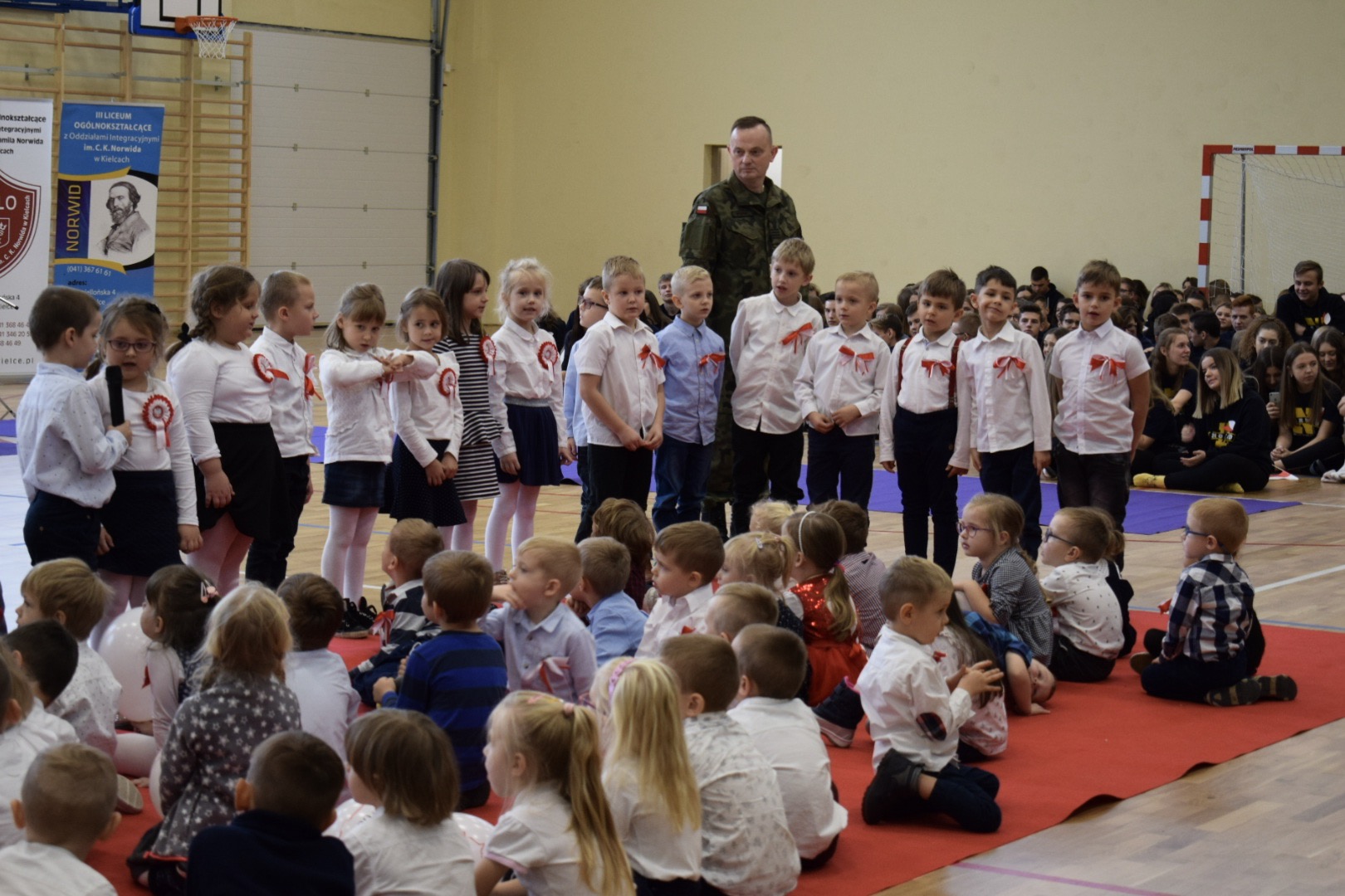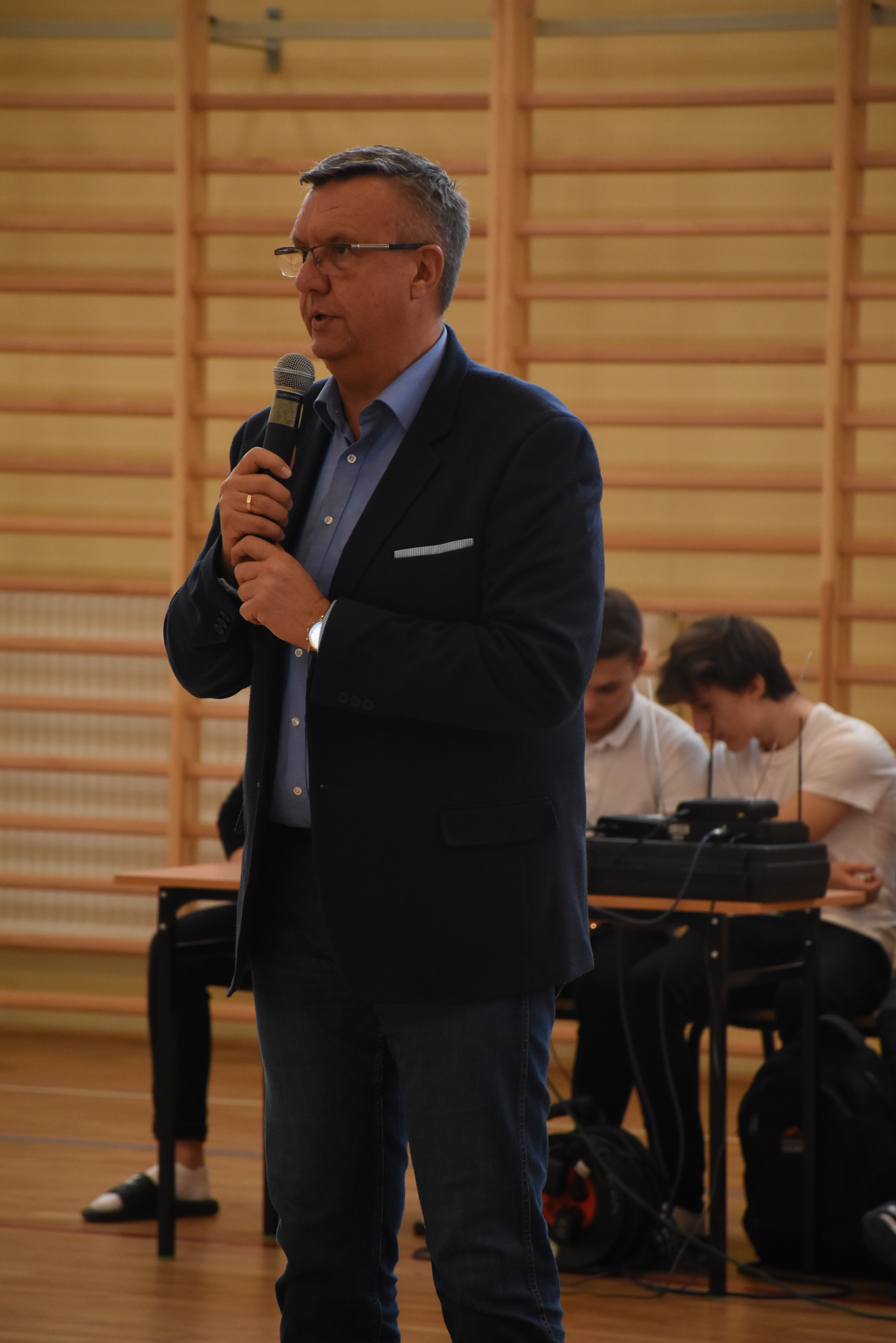 „Ruszaj się! TERAZ JUŻ MASZ GDZIE!” brzmiały przed chwilą słowa piosenki mobilizującej społeczność liceum Norwida do aktywności fizycznej. TERAZ JUŻ MASZ GDZIE, bo właśnie jesteśmy świadkami historycznego w dziejach naszej szkoły wydarzenia – Otwarcia Hali Sportowej” – tak, chwilę później rozpoczął swe wystąpienie Dyrektor Andrzej Zdeb. Przywitawszy przybyłych gości, na czele z Prezydentem Kielc Bogdanem Wentą, opowiedział o szkole oraz przedstawił historię powstania hali sportowej. Wskazywał na trudności, ale też podkreślał sukcesy uczniów Norwida osiągane mimo ograniczonych warunków do odbywania treningów. Pan dyrektor podziękował serdecznie wszystkim, którzy w jakikolwiek sposób przyczynili się do powstania obiektu ufundowanego w całości ze środków miasta. Kończąc wyraził nadzieję, że żaden uczeń, który będzie miał możliwość kiedykolwiek w przyszłości korzystać z tego obiektu, nie zaprzepaści szansy na pełny sportowy rozwój, stworzonej dzięki wybudowaniu tej pięknej hali. Kolejnym mówcą był Prezydent Kielc, który wskazał na wagę sportu w życiu każdego młodego człowieka. Jako bardzo istotną określił również integrację