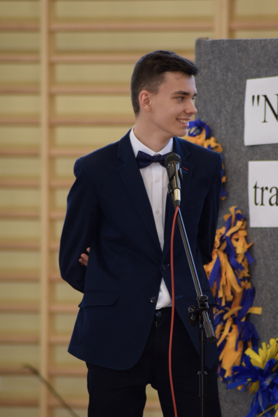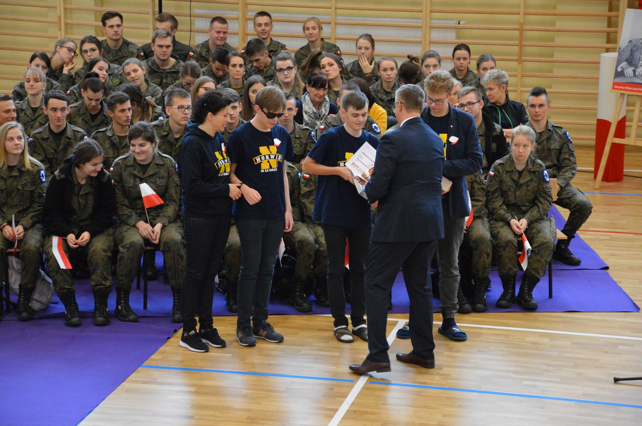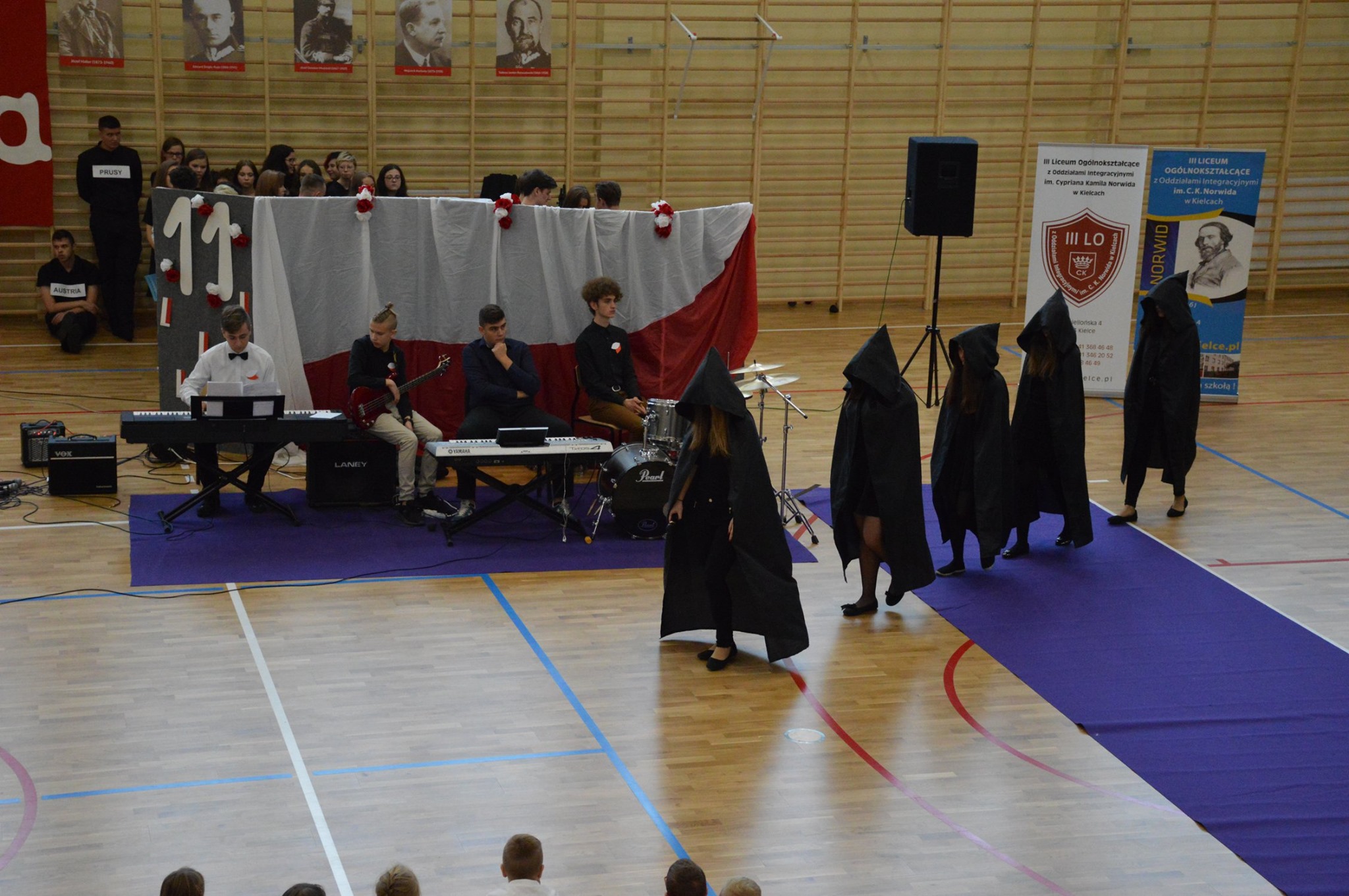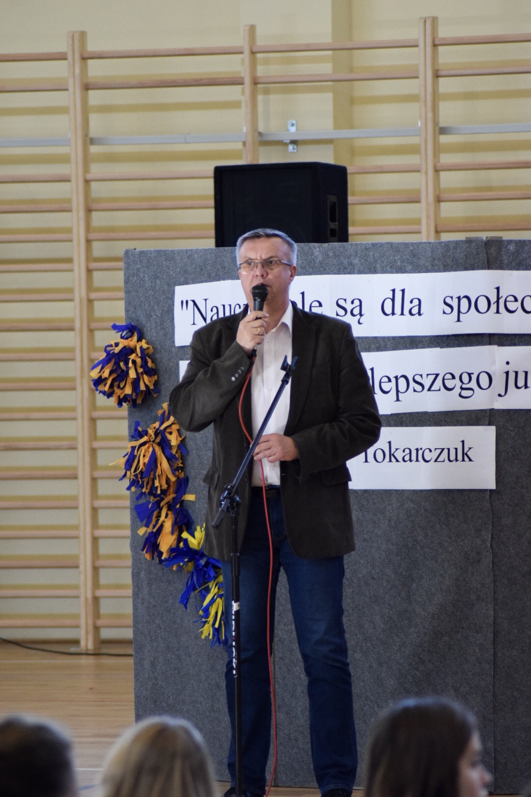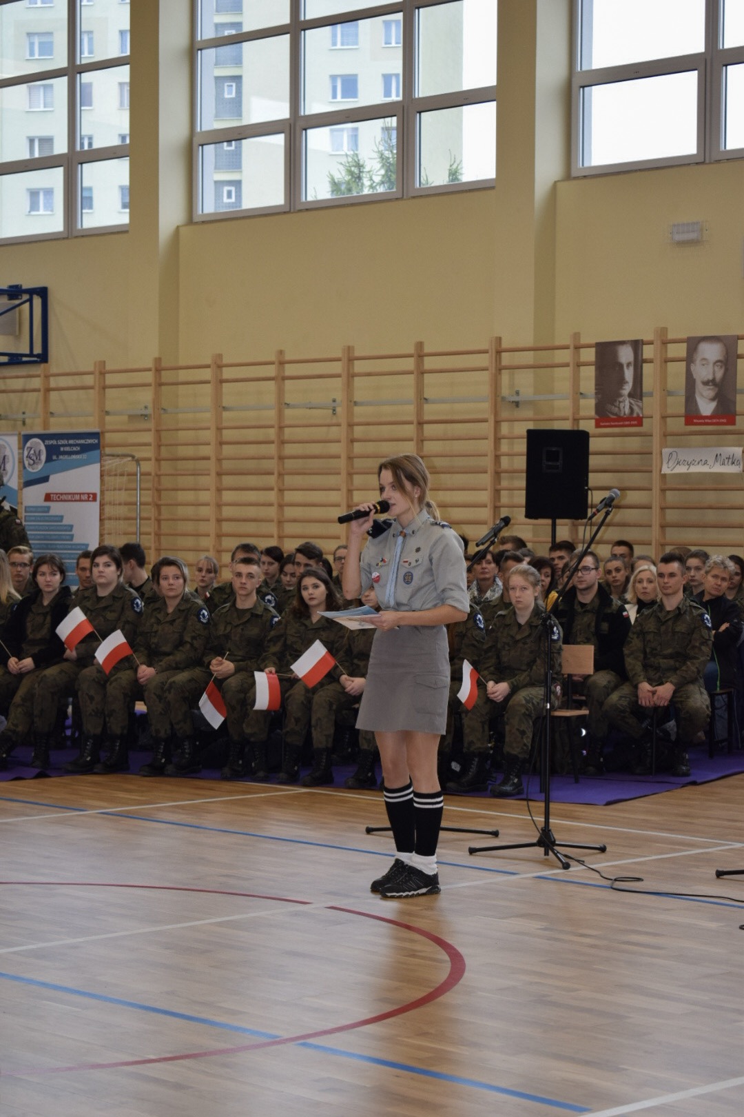 „Ruszaj się! TERAZ JUŻ MASZ GDZIE!” brzmiały przed chwilą słowa piosenki mobilizującej społeczność liceum Norwida do aktywności fizycznej. TERAZ JUŻ MASZ GDZIE, bo właśnie jesteśmy świadkami historycznego w dziejach naszej szkoły wydarzenia – Otwarcia Hali Sportowej” – tak, chwilę później rozpoczął swe wystąpienie Dyrektor Andrzej Zdeb. Przywitawszy przybyłych gości, na czele z Prezydentem Kielc Bogdanem Wentą, opowiedział o szkole oraz przedstawił historię powstania hali sportowej. Wskazywał na trudności, ale też podkreślał sukcesy uczniów Norwida osiągane mimo ograniczonych warunków do odbywania treningów. Pan dyrektor podziękował serdecznie wszystkim, którzy w jakikolwiek sposób przyczynili się do powstania obiektu ufundowanego w całości ze środków miasta. Kończąc wyraził nadzieję, że żaden uczeń, który będzie miał możliwość kiedykolwiek w przyszłości korzystać z tego obiektu, nie zaprzepaści szansy na pełny sportowy rozwój, stworzonej dzięki wybudowaniu tej pięknej hali. Kolejnym mówcą był Prezydent Kielc, który wskazał na wagę sportu w życiu każdego młodego człowieka. Jako bardzo istotną określił również integrację
