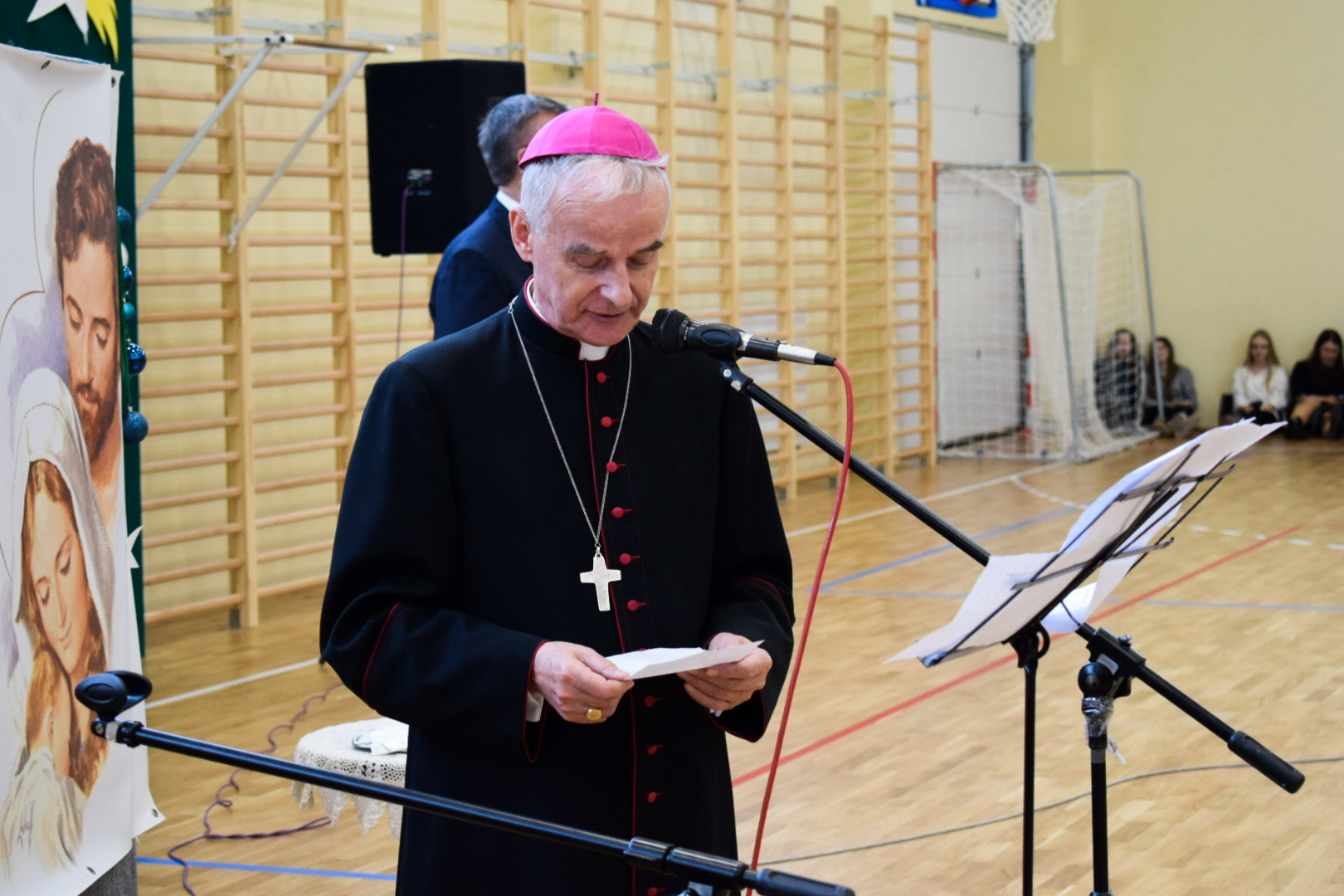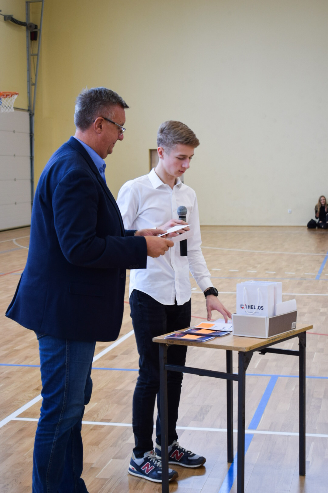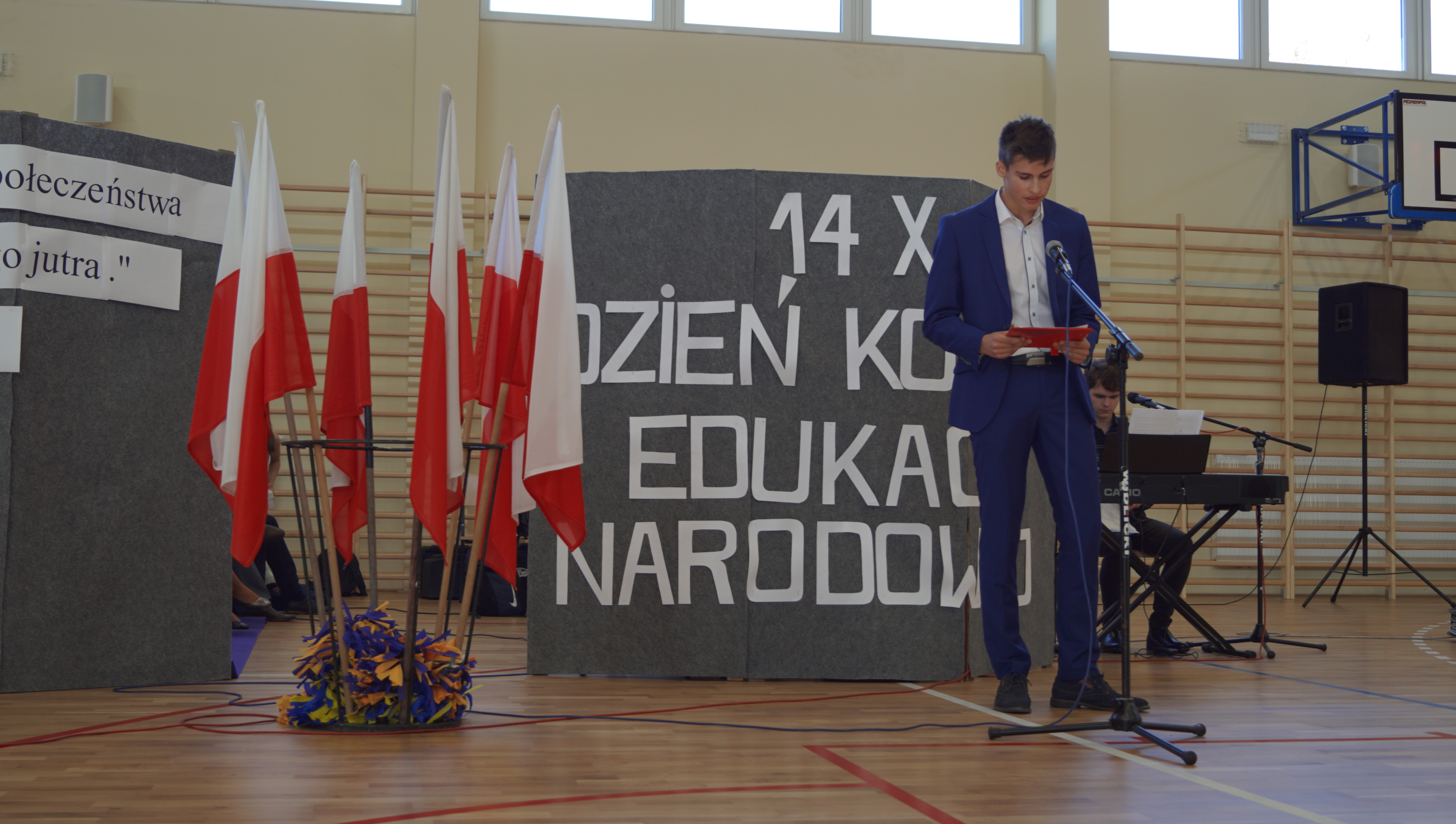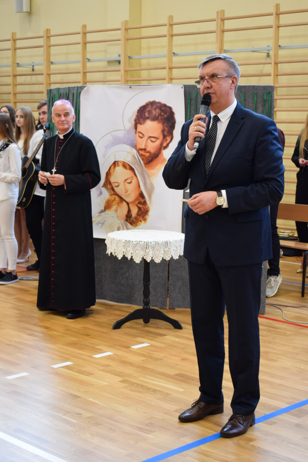 „Ruszaj się! TERAZ JUŻ MASZ GDZIE!” brzmiały przed chwilą słowa piosenki mobilizującej społeczność liceum Norwida do aktywności fizycznej. TERAZ JUŻ MASZ GDZIE, bo właśnie jesteśmy świadkami historycznego w dziejach naszej szkoły wydarzenia – Otwarcia Hali Sportowej” – tak, chwilę później rozpoczął swe wystąpienie Dyrektor Andrzej Zdeb. Przywitawszy przybyłych gości, na czele z Prezydentem Kielc Bogdanem Wentą, opowiedział o szkole oraz przedstawił historię powstania hali sportowej. Wskazywał na trudności, ale też podkreślał sukcesy uczniów Norwida osiągane mimo ograniczonych warunków do odbywania treningów. Pan dyrektor podziękował serdecznie wszystkim, którzy w jakikolwiek sposób przyczynili się do powstania obiektu ufundowanego w całości ze środków miasta. Kończąc wyraził nadzieję, że żaden uczeń, który będzie miał możliwość kiedykolwiek w przyszłości korzystać z tego obiektu, nie zaprzepaści szansy na pełny sportowy rozwój, stworzonej dzięki wybudowaniu tej pięknej hali. Kolejnym mówcą był Prezydent Kielc, który wskazał na wagę sportu w życiu każdego młodego człowieka. Jako bardzo istotną określił również integrację