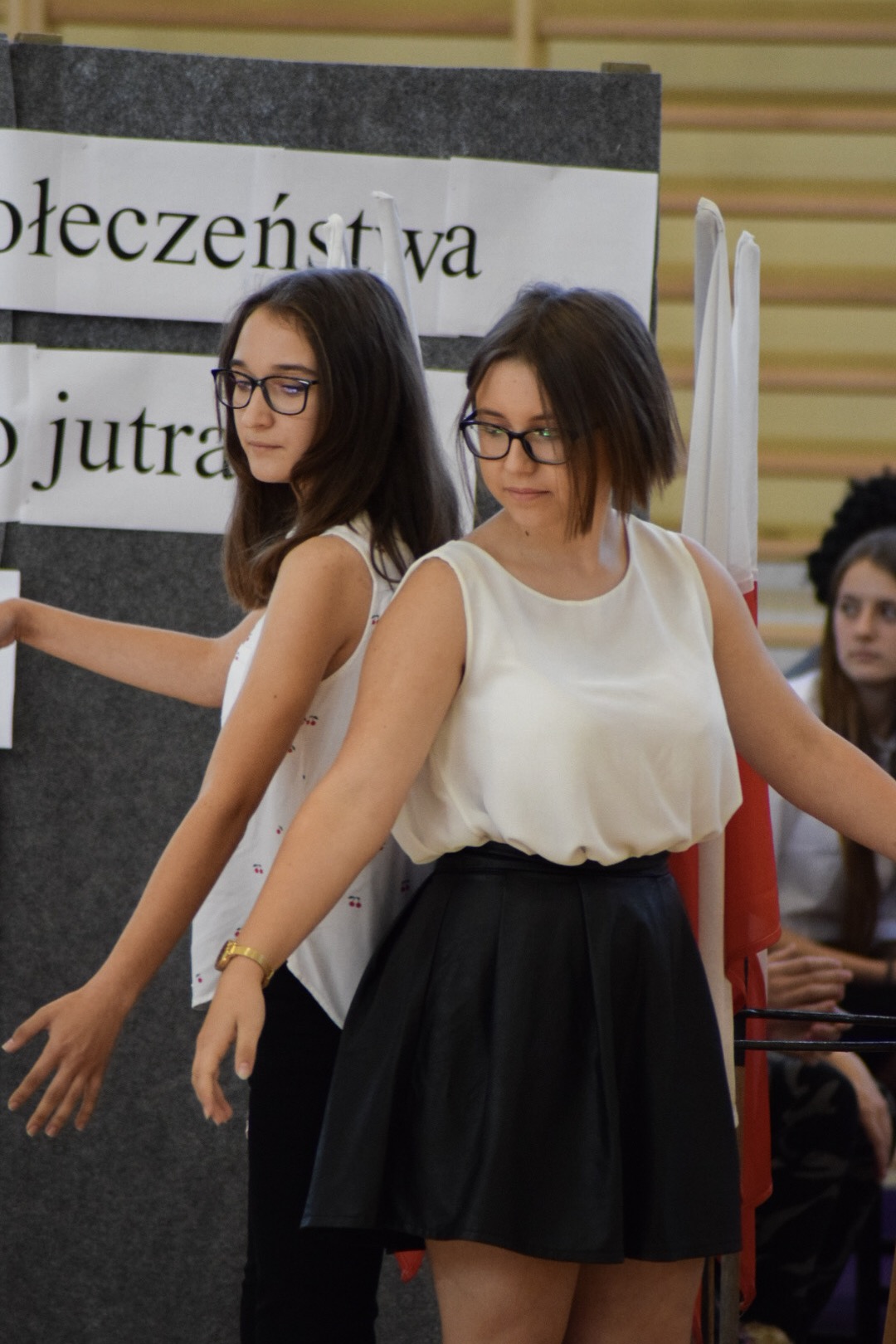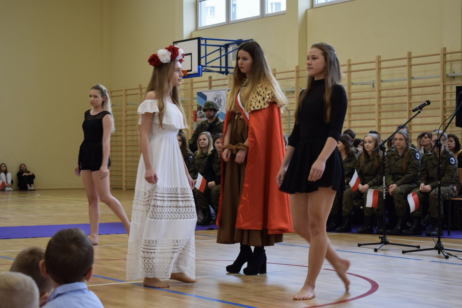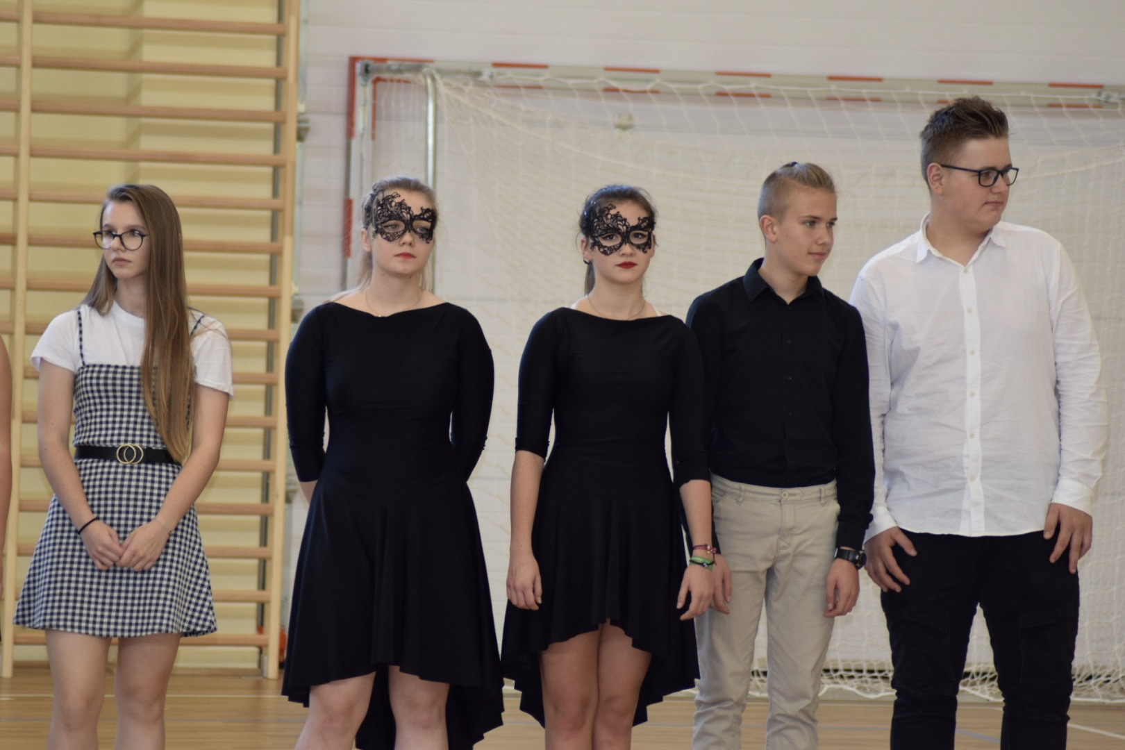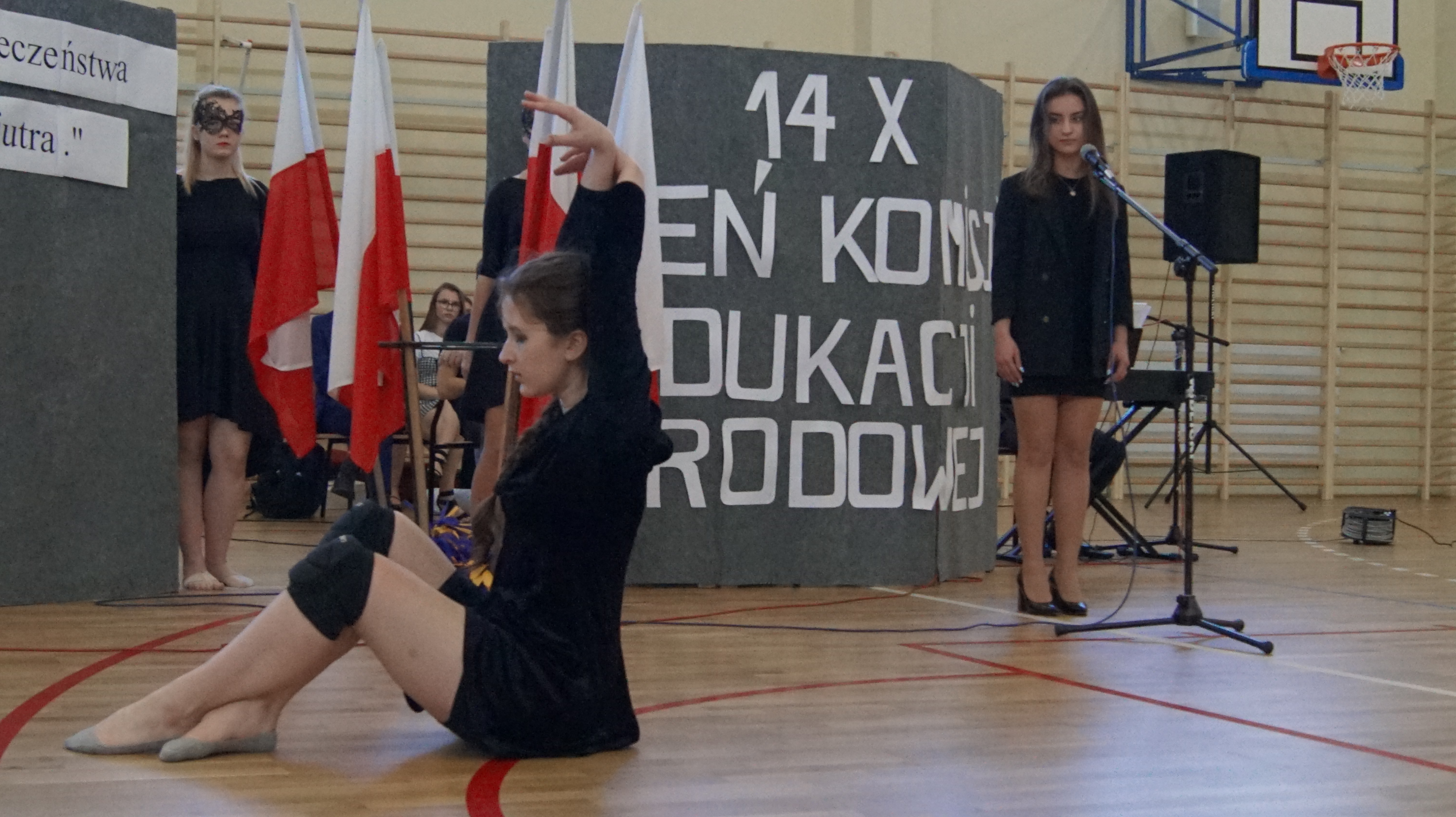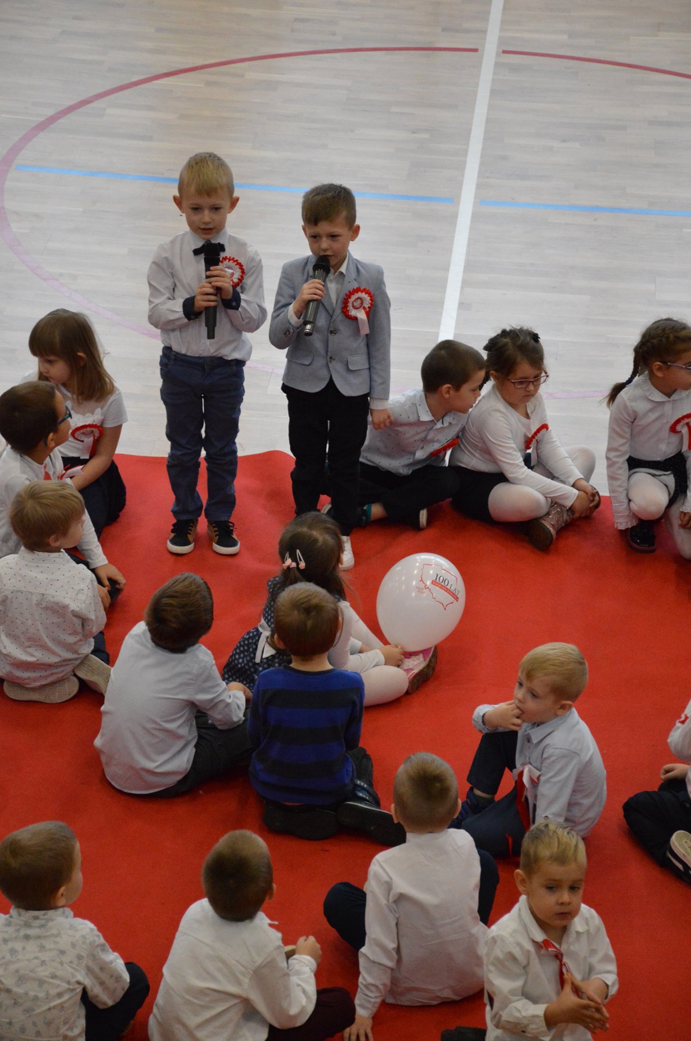 Osobno, z nauczycielami wychowania fizycznego, ćwiczyli swoje wejście nasi sportowcy. W jednym miejscu i czasie należało zmieścić i zgrać zawodników uprawiających różne dyscypliny: siatkówkę, piłkę ręczną i nożną, koszykówkę, akrobatki oraz dziewczęta przygotowujące pokaz ze wstążkami. Nawet dekoracja, w całości przygotowana przez J. Kopycińską, miała swoje próby rozmiaru, wytrzymałości i stabilności.