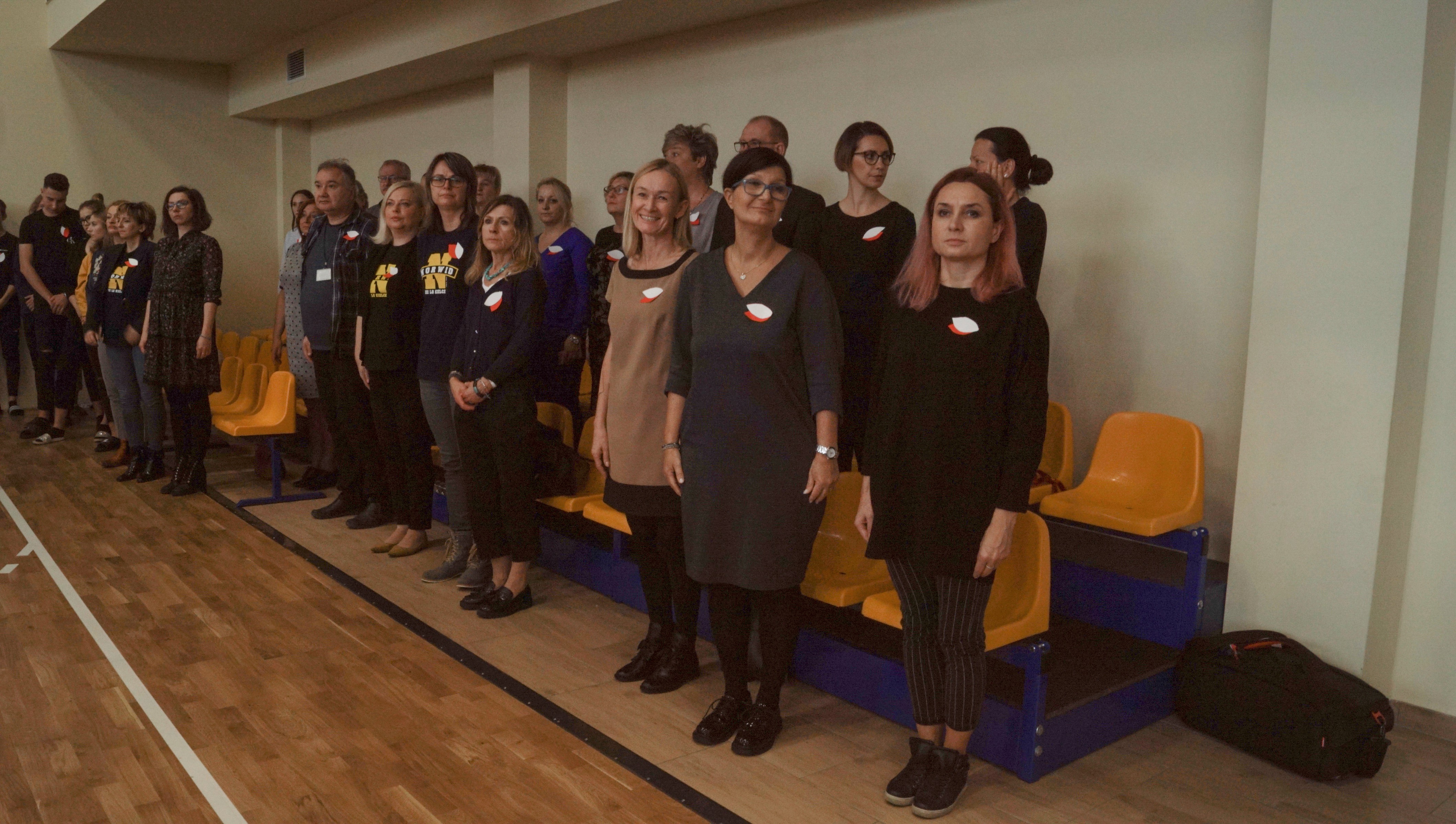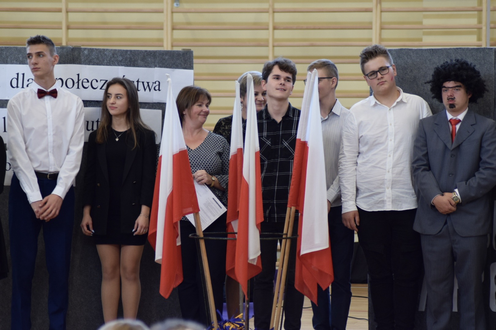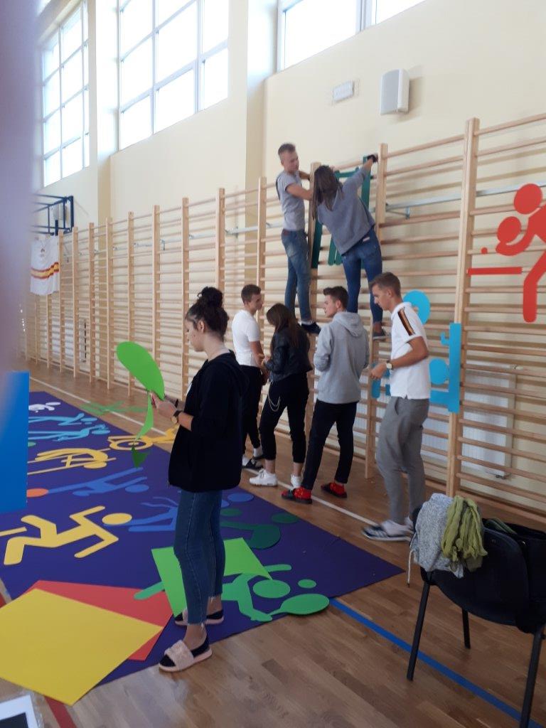 W przygotowania, rozpoczęte przez p. Justynę Kopycińską i p. Marzenę Pietrasik jeszcze w poprzedzającym uroczystość roku szkolnym 2018/2019, zaangażowali się wszyscy nauczyciele wychowania fizycznego: p. Inga Motyl, p. Andrzej Krawczyński, p. Konrad Luciak, p. Rafał Sękowski. Dzięki pomocy innych nauczycieli oraz samej młodzieży udało się zapewnić odpowiednie rekwizyty i stroje.