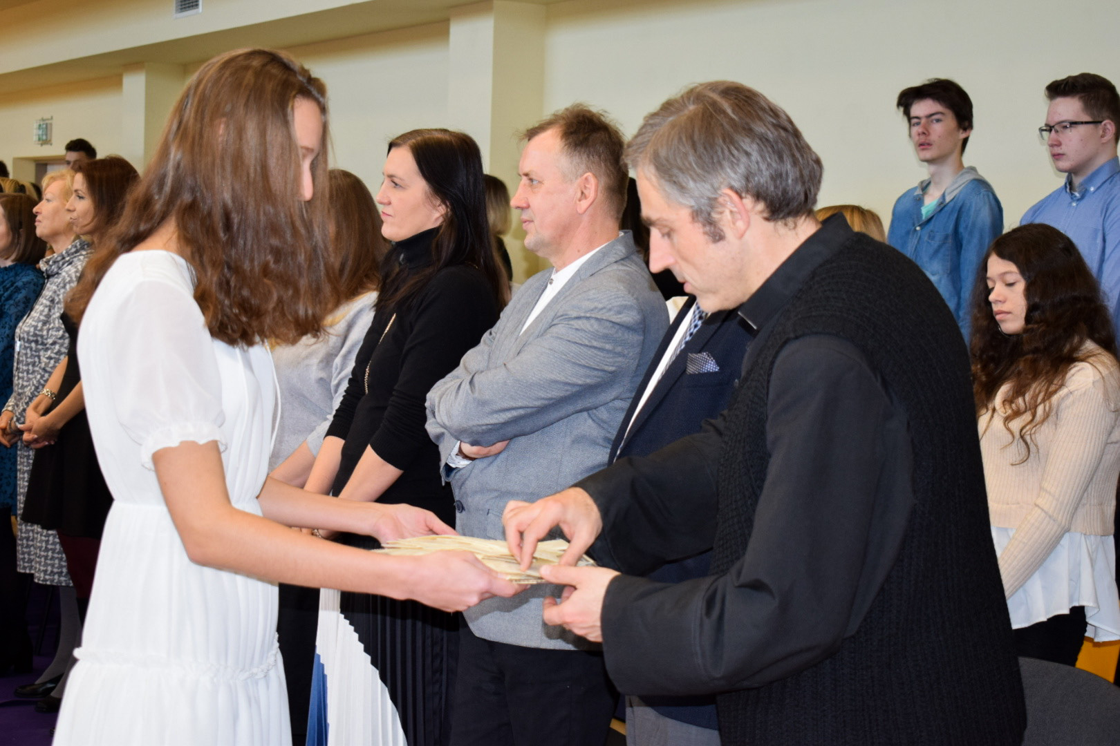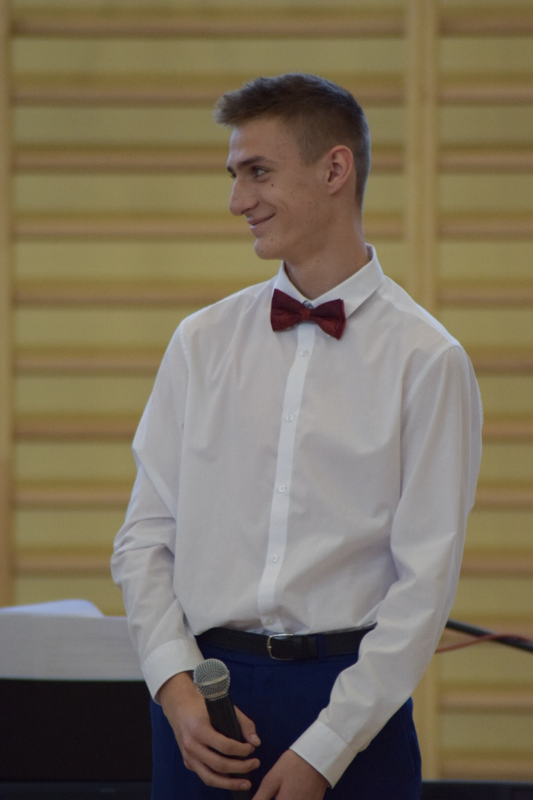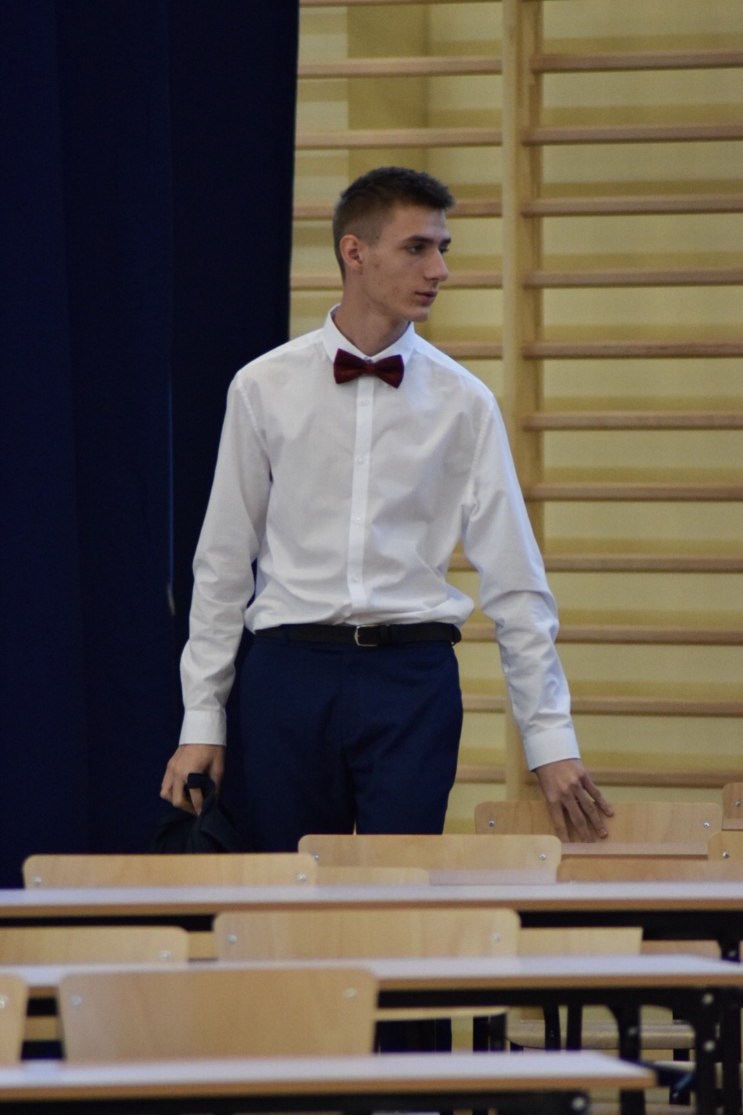 Właśnie pierwszoklasiści byli bohaterami kolejnej uroczystości – ŚLUBOWANIA, które odbyło się tego samego dnia o godzinie 13-stej. Ceremonię poprowadził p. Rafał Sękowski. W imieniu 12 klas pierwszych uroczyste ślubowanie składali ich przedstawiciele. Po wysłuchaniu skierowanych do nich słów Dyrektora Andrzeja Zdeba, obejrzeli program przygotowany na Otwarcie Hali, wzbogacony o elementy powiązane z życiem i twórczością naszego patrona. W tym dniu spotkali się też z wychowawcami, a stając się pełnoprawnymi członkami Norwidowskiej rodziny, otrzymali legitymacje szkolne.