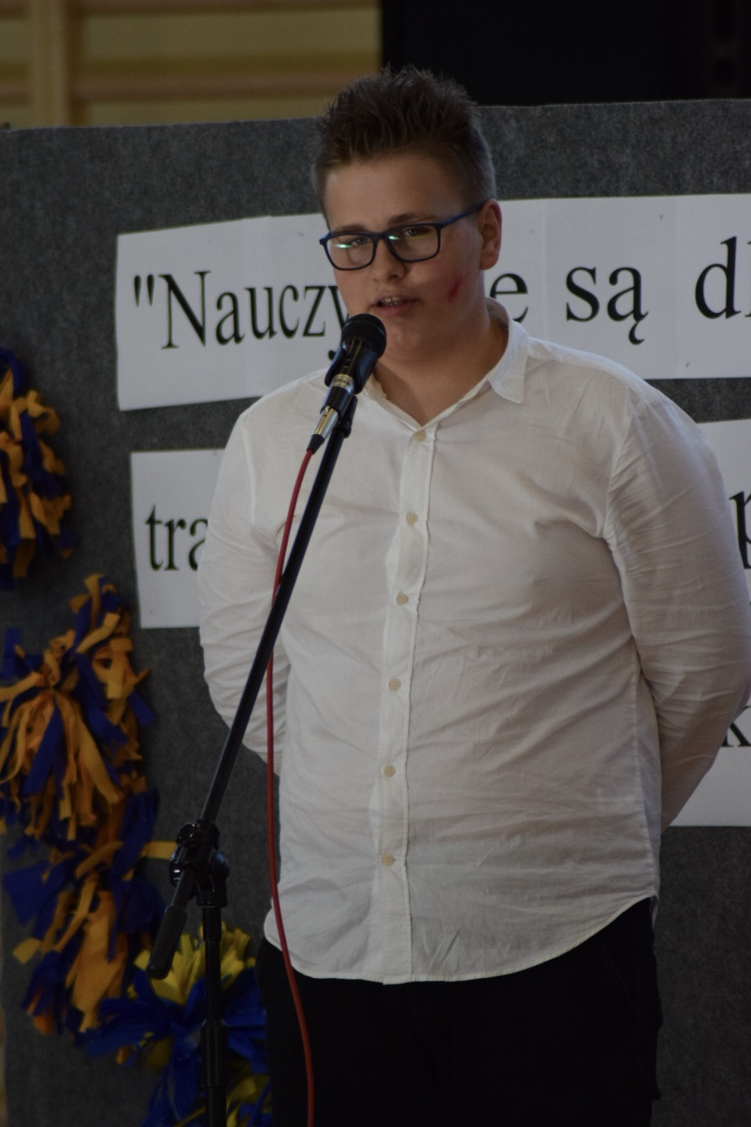 Po części oficjalnej, dyrektor Andrzej Zdeb, wraz z wicedyrektorami: p. Anną Kopczyńską i p. Tomaszem Zemstą, przywitał po wakacyjnej przerwie uczniów i nauczycieli, życząc wszystkim sukcesów w nowym roku szkolnym.