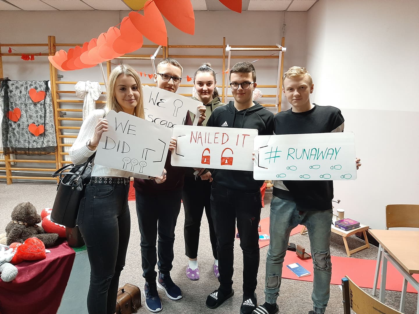 Prawie wszystkim klasom biorącym udział w Walentynkowym Escape Roomie udało się rozwikłać serię zagadek z serduszkiem w tle. Jak zwykle o sukcesie zwycięskich drużyn zdecydowały spryt, znajomość języka angielskiego, skuteczna współpraca w grupie oraz odrobina umiejętności matematycznych (lub posługiwania się kalkulatorem).