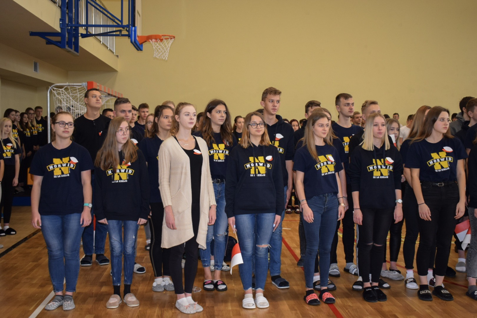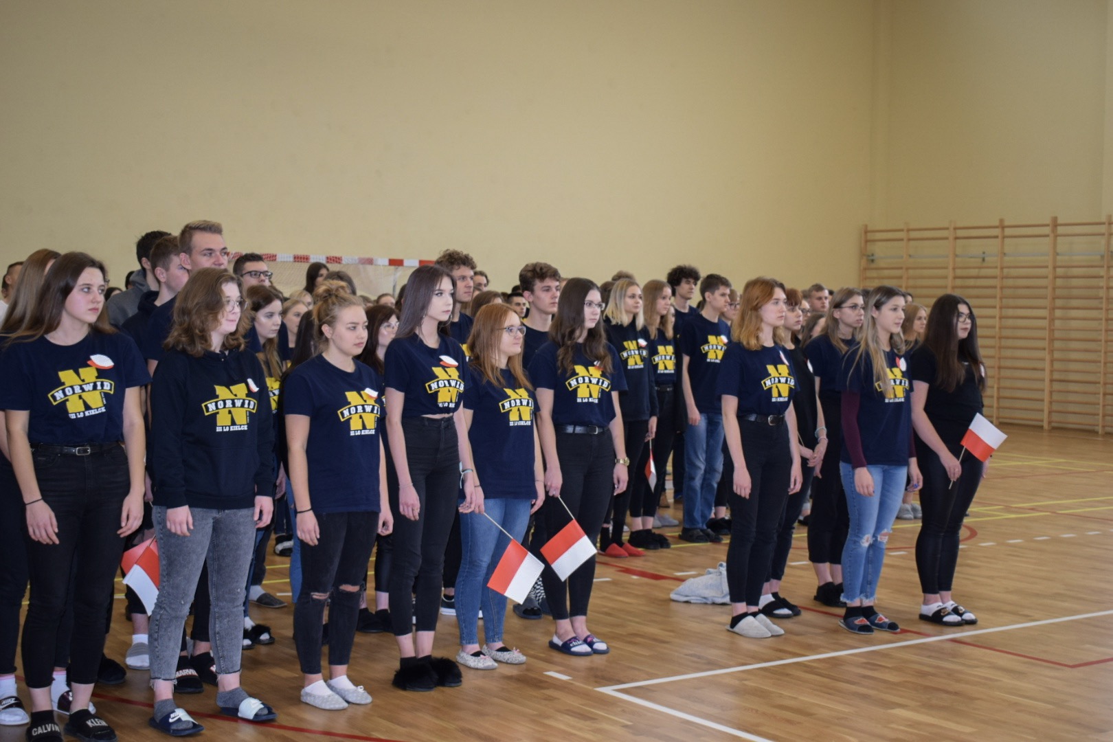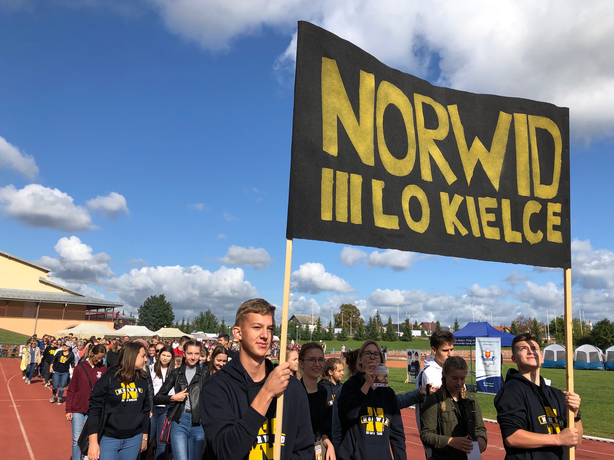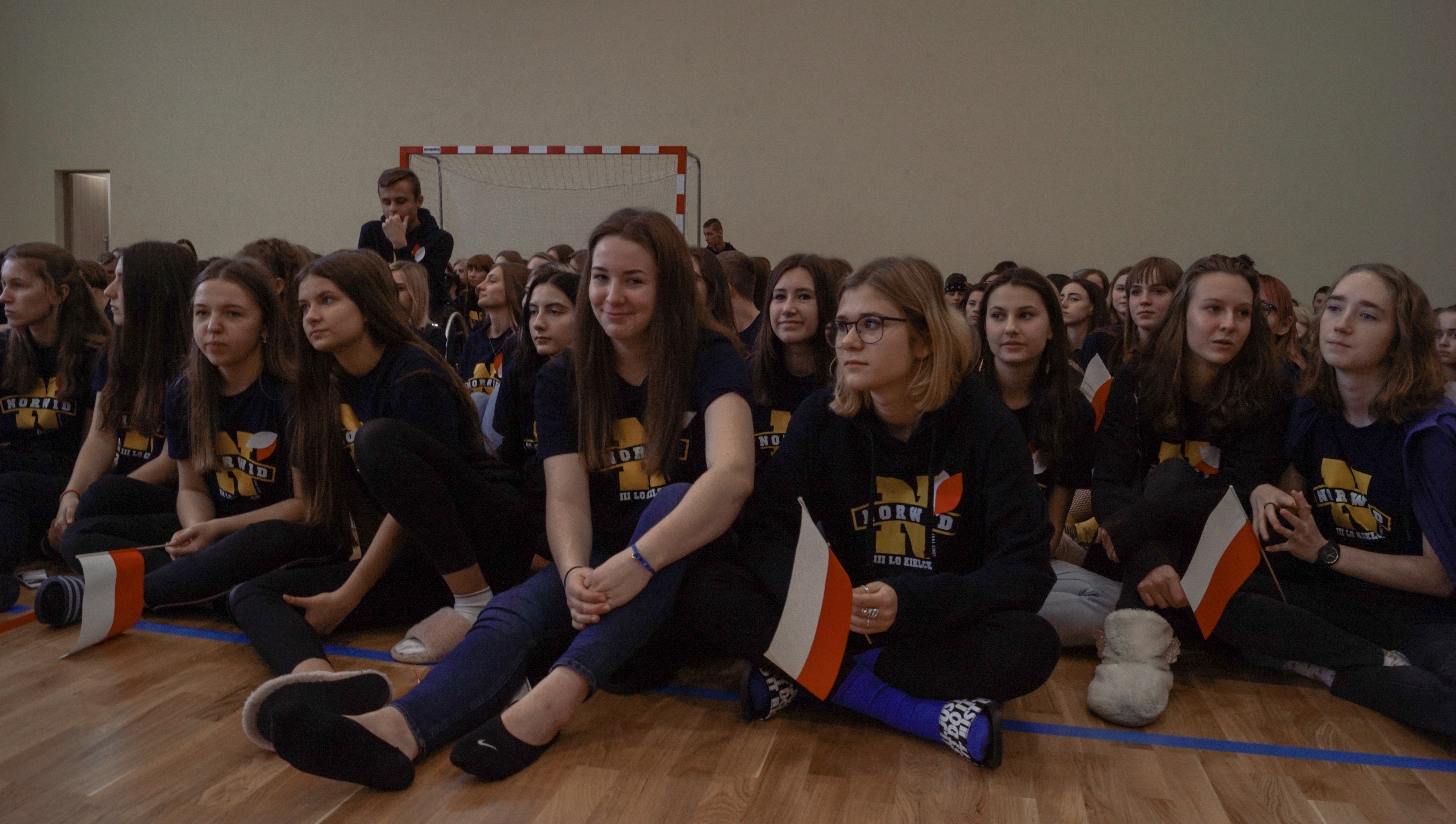 Początek uroczystości nie był standardowy. Energiczna melodia (muz. Magic System) i słowa piosenki autorstwa p. Justyny Kopycińskiej, pt. „Norwid Gra”, ułożonej specjalnie na tę okazję wprawiły zebraną publiczność w sportowy nastrój. Mobilizujące uczniów Norwida do aktywności fizycznej i dopingowania swych zawodników tekst i muzyka, zwiastowały typowo sportowy charakter imprezy.