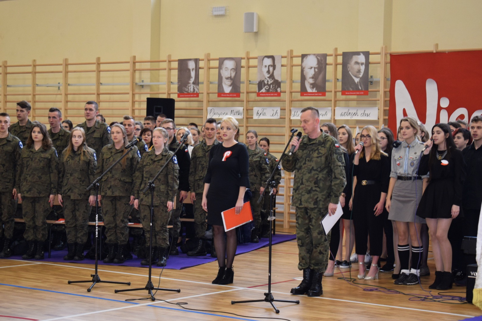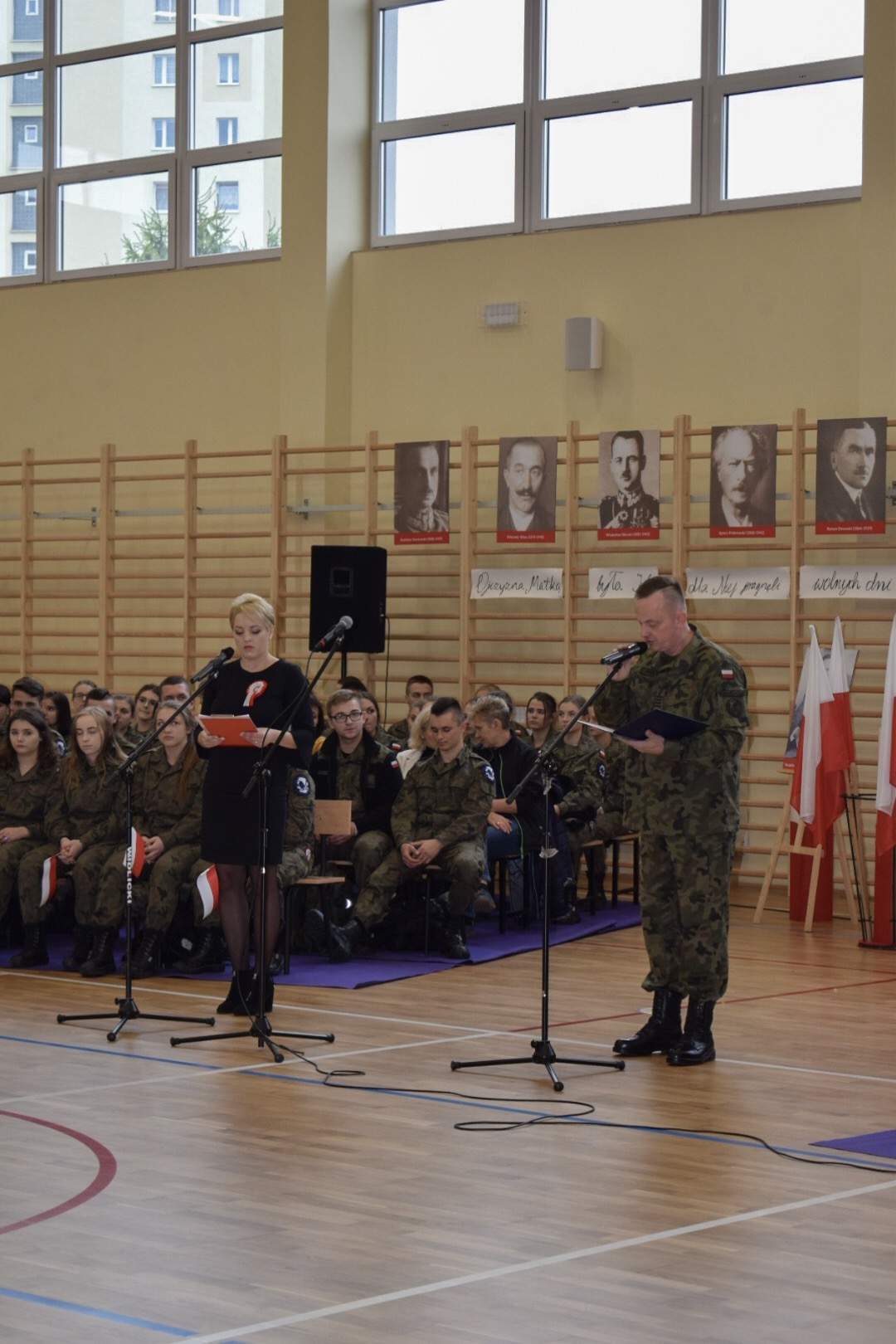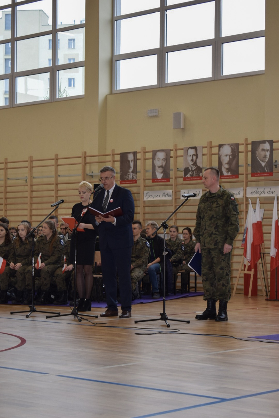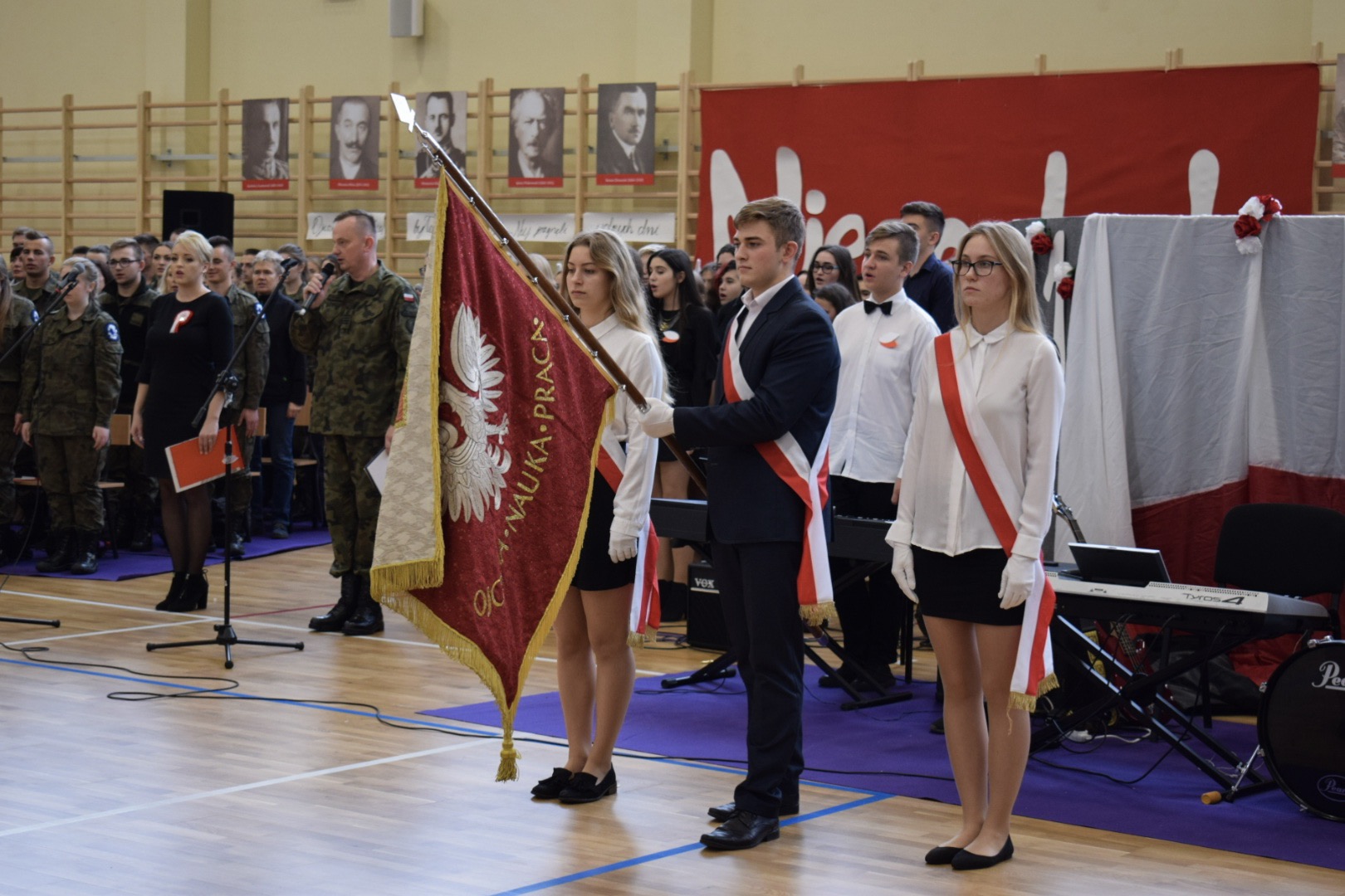 Uroczystość rozpoczęła się od odśpiewania “Mazurka Dąbrowskiego”. Następnie, wpominając tragiczne wydarzenia września 1939, uczczono minutą ciszy 80 rocznicę wybuchu II wojny światowej.