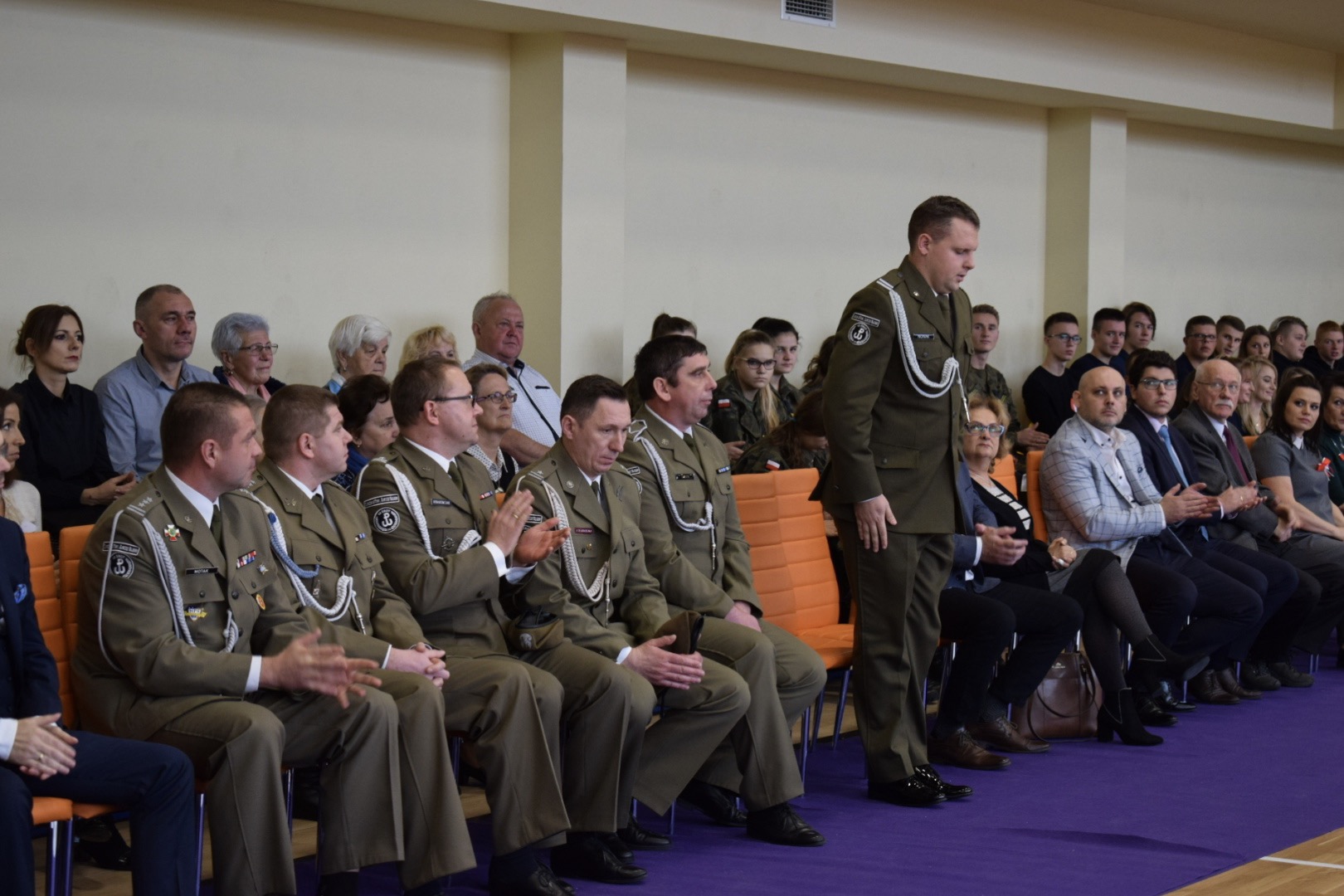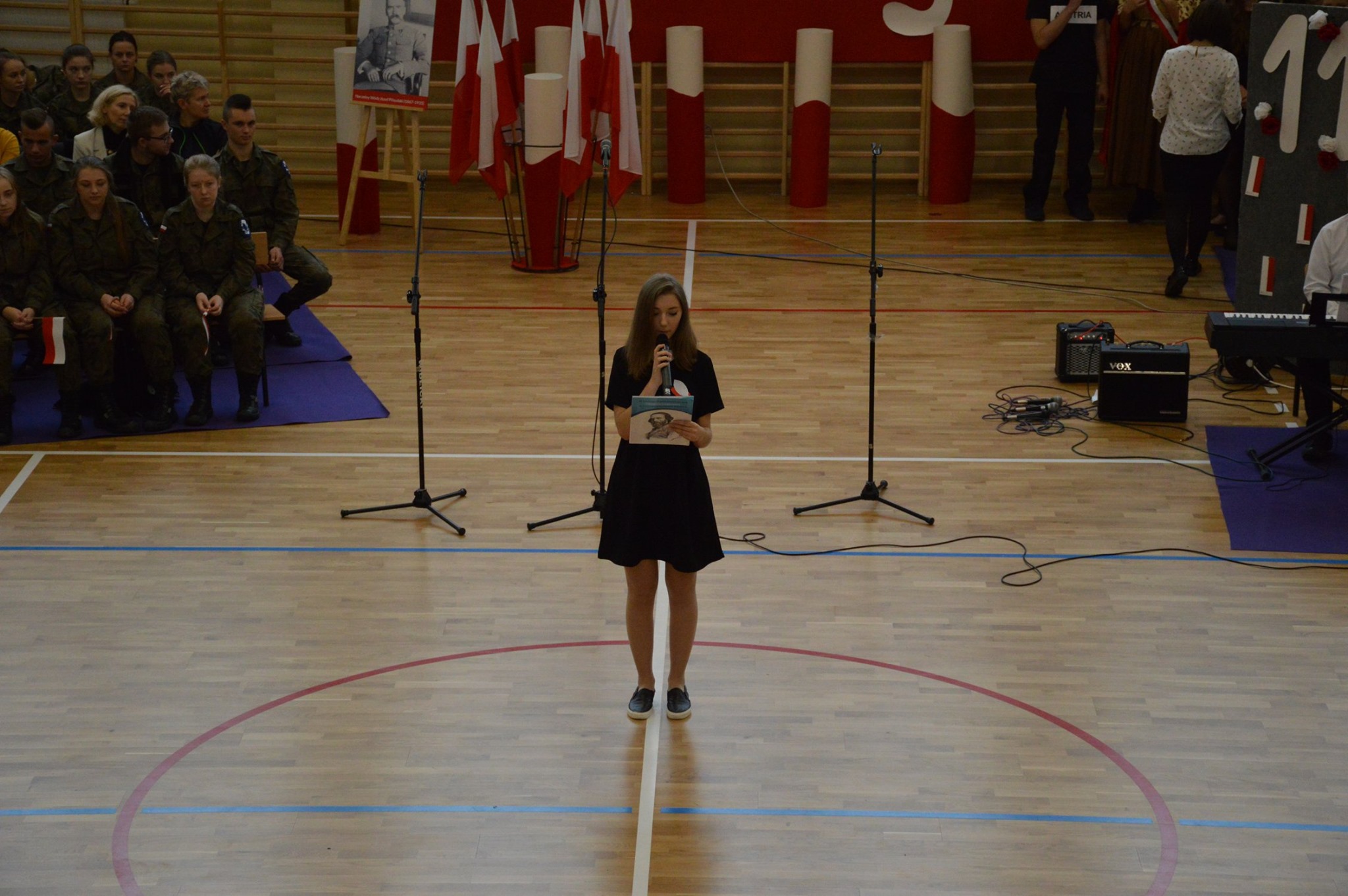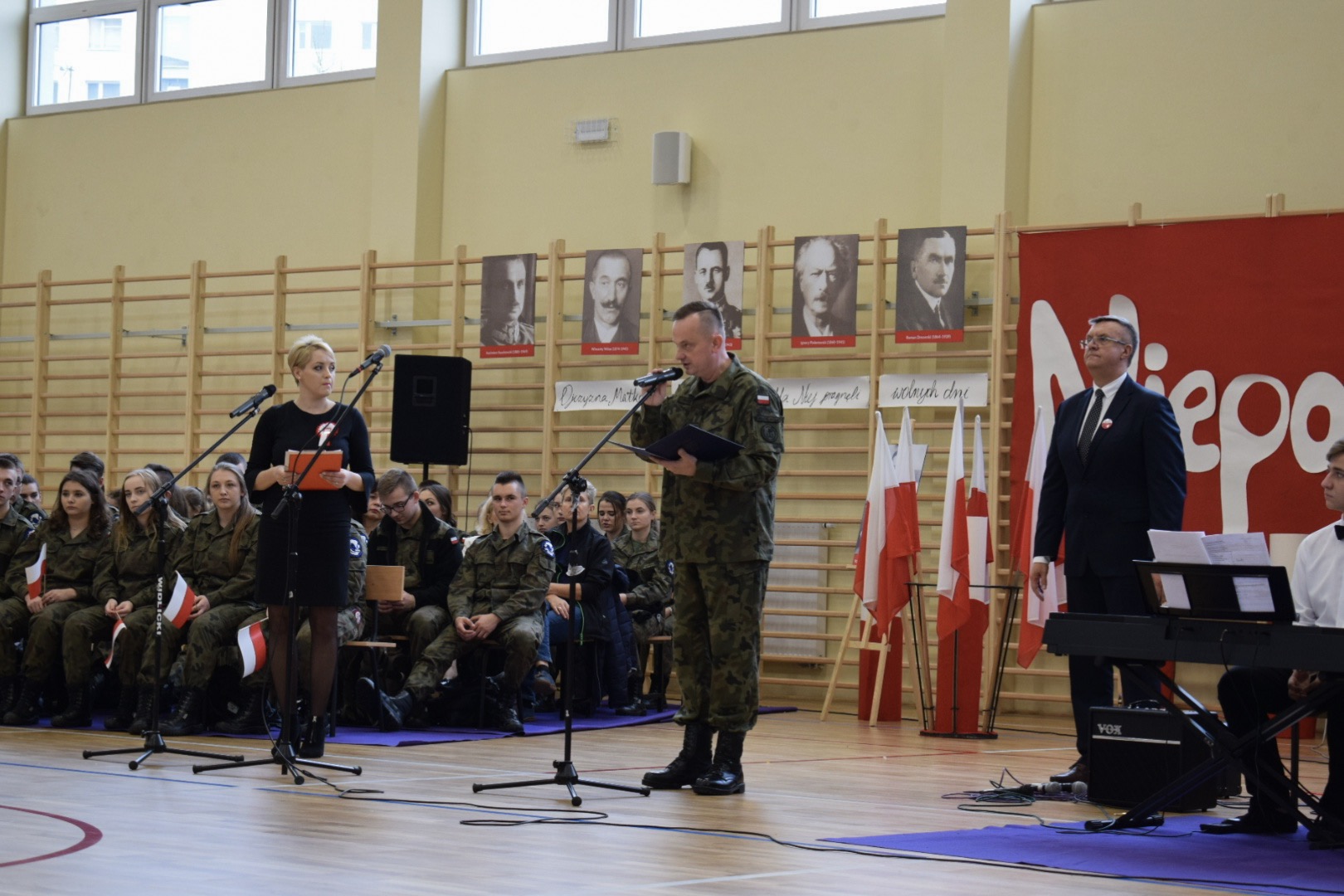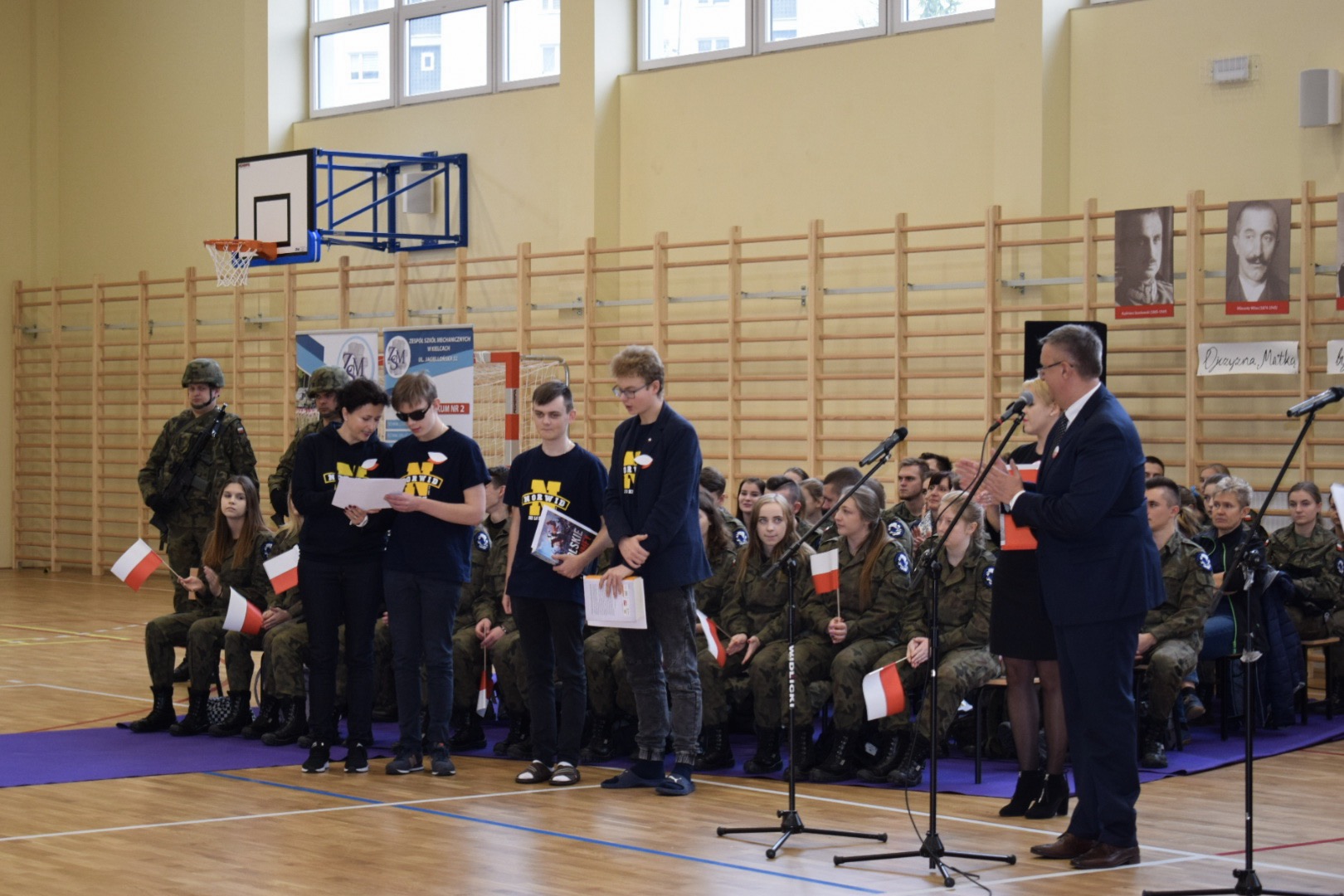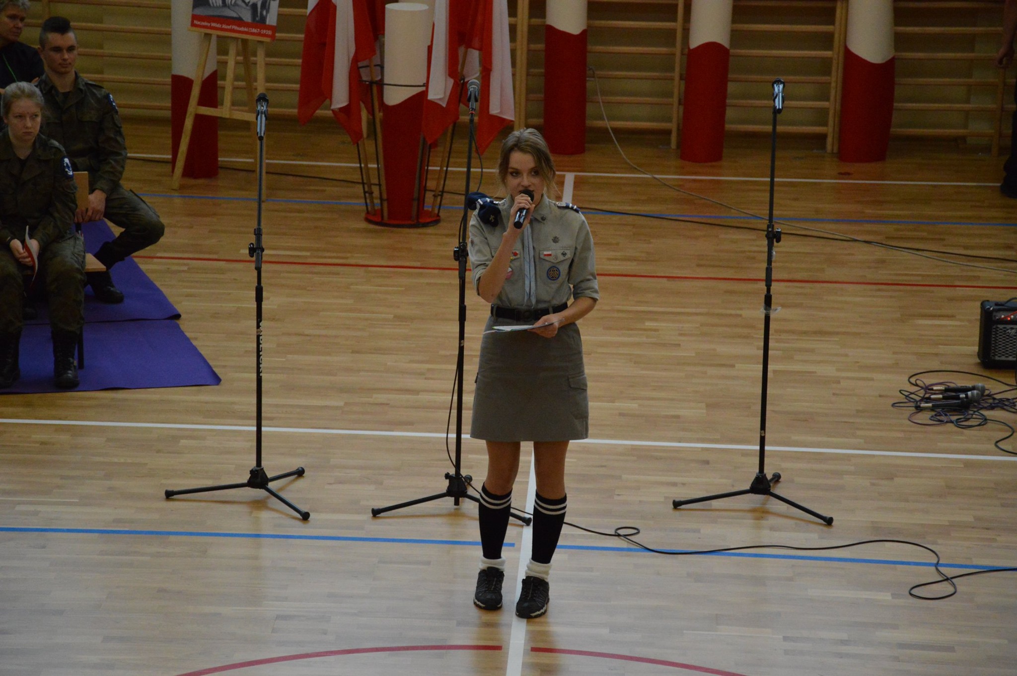 Uroczystość rozpoczęła się od odśpiewania “Mazurka Dąbrowskiego”. Następnie, wpominając tragiczne wydarzenia września 1939, uczczono minutą ciszy 80 rocznicę wybuchu II wojny światowej.