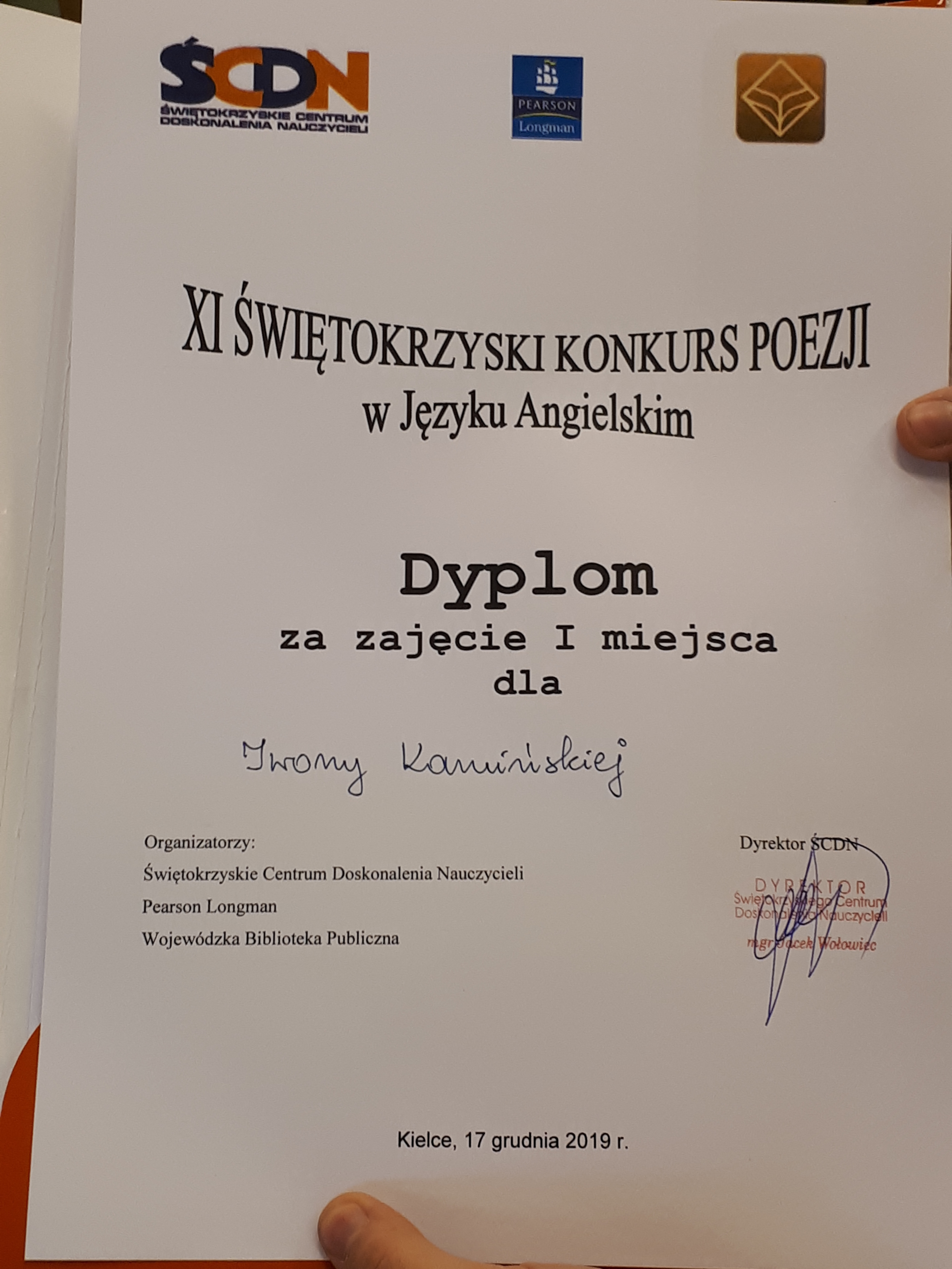 Wymienieni uczniowie wezmą udział w międzyszkolnym konkursie języka angielskiego, na którym wymagana będzie znajomość lektury "Portret Doriana Graya" oraz zagadnień realioznawczych (w tym roku Szkocja). Jeszcze raz gratulujemy i życzymy powodzenia w dalszych zmaganiach