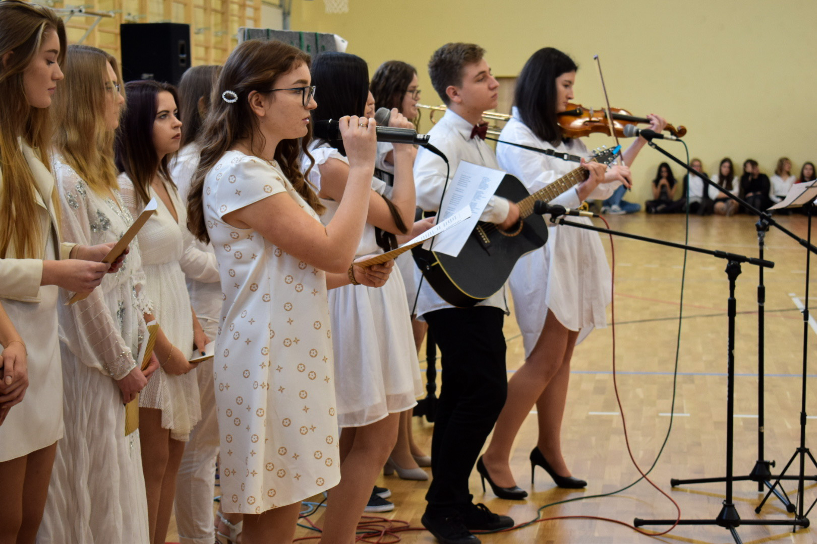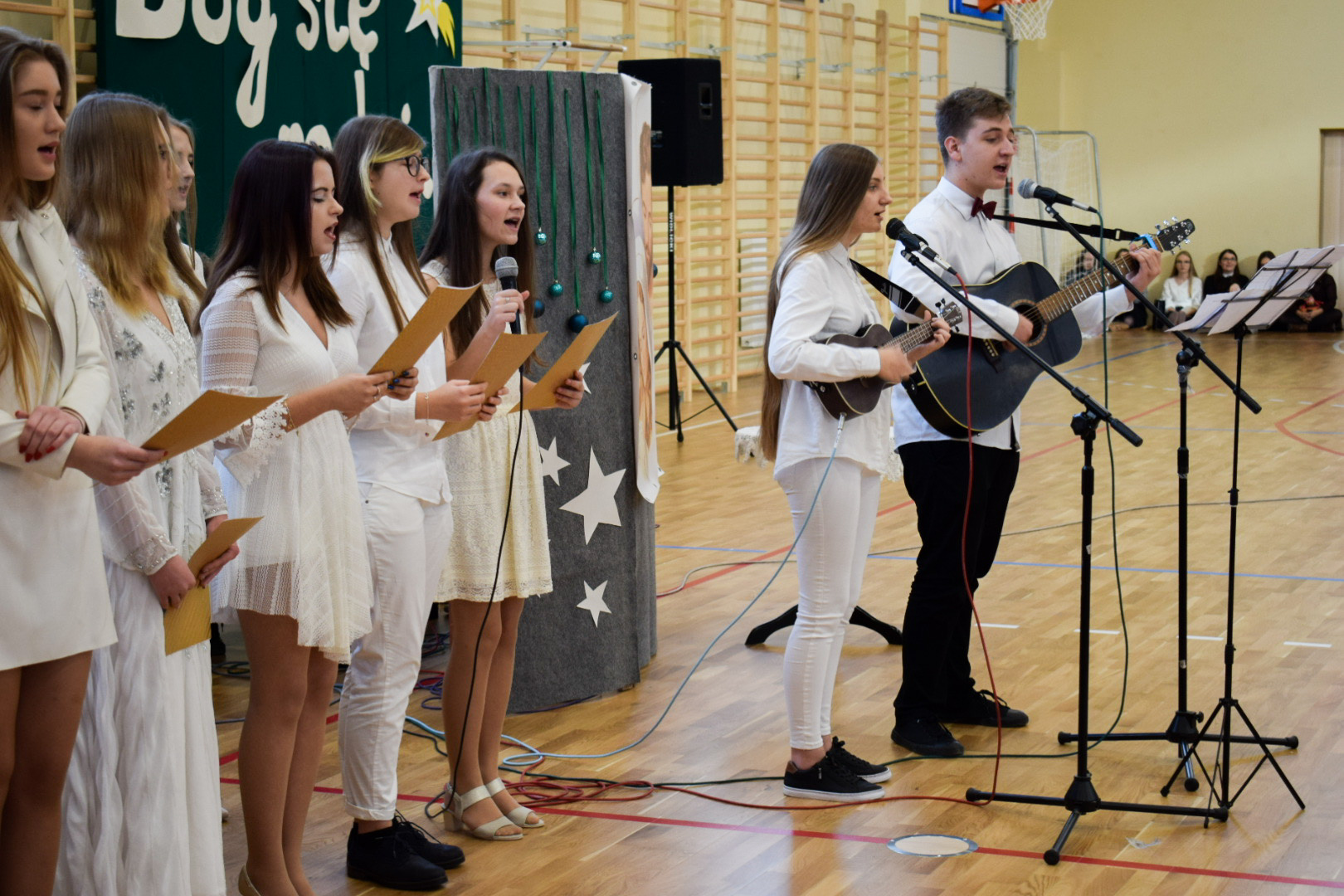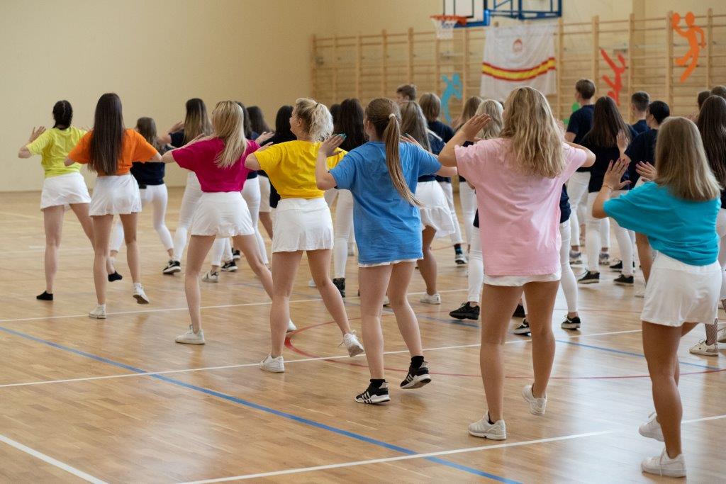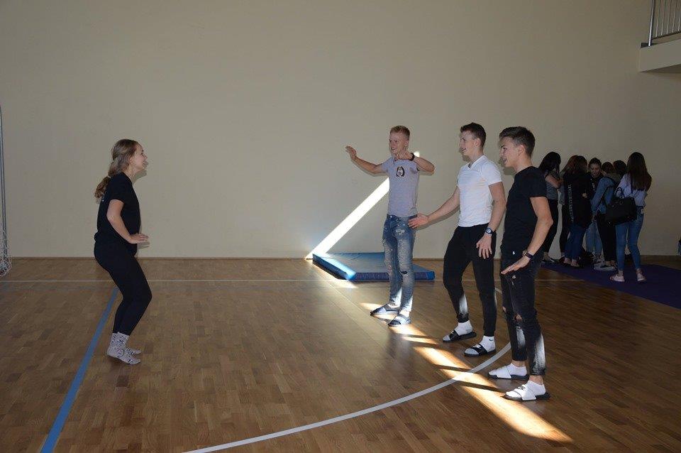 Próby w grupach tematycznych odbywały się codziennie, angażując w sumie prawie 200 uczniów. Grupa taneczna (Aleksandra Chwastek, Aleksandra Jarząbek, Daria Brela, Gabrysia Opalska, Kasia Pedrycz, Natalia Jas, Ola Krzyżyk, Ola Moszczyńska, Olga Karyś, Wiktoria Arczewska, Wiktoria Badzioch, Wiktoria Świetlik) pracująca nad 2 tańcami, grupa wokalna (Dominika Szybalska, Karolina Czaja, Karolina Latos, Magdalena Kaleta, Marlena Stępnik, Natalia Kopycińska, Natalia Salwa, Ola Bentkowska, Olga Grecak, Wiktoria Topór, Szymon Ciosek, Jakub Gołuch, Gabrysia Paszkowska, Igor Szymański) oraz uczennice deklamujące „Odę do sportu” (Luiza Arendarska, Julia Gocał, Ola Galara)ćwiczyły swoje części uroczystości pod kierunkiem opiekunek osobno, starając się dopracować detale swych prezentacji.